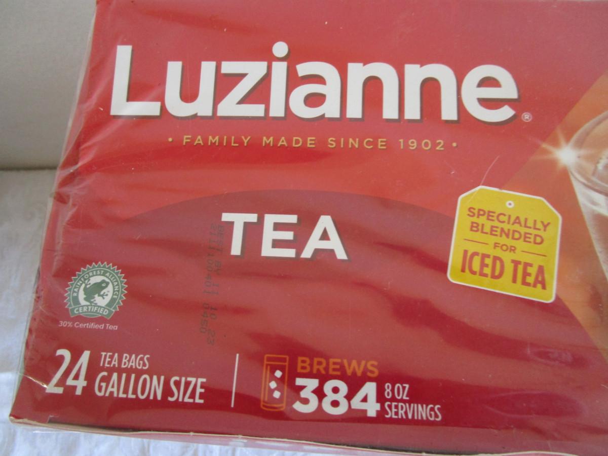 3 boxes of Luzianne ice tea bags and 1 box of Extra Caff