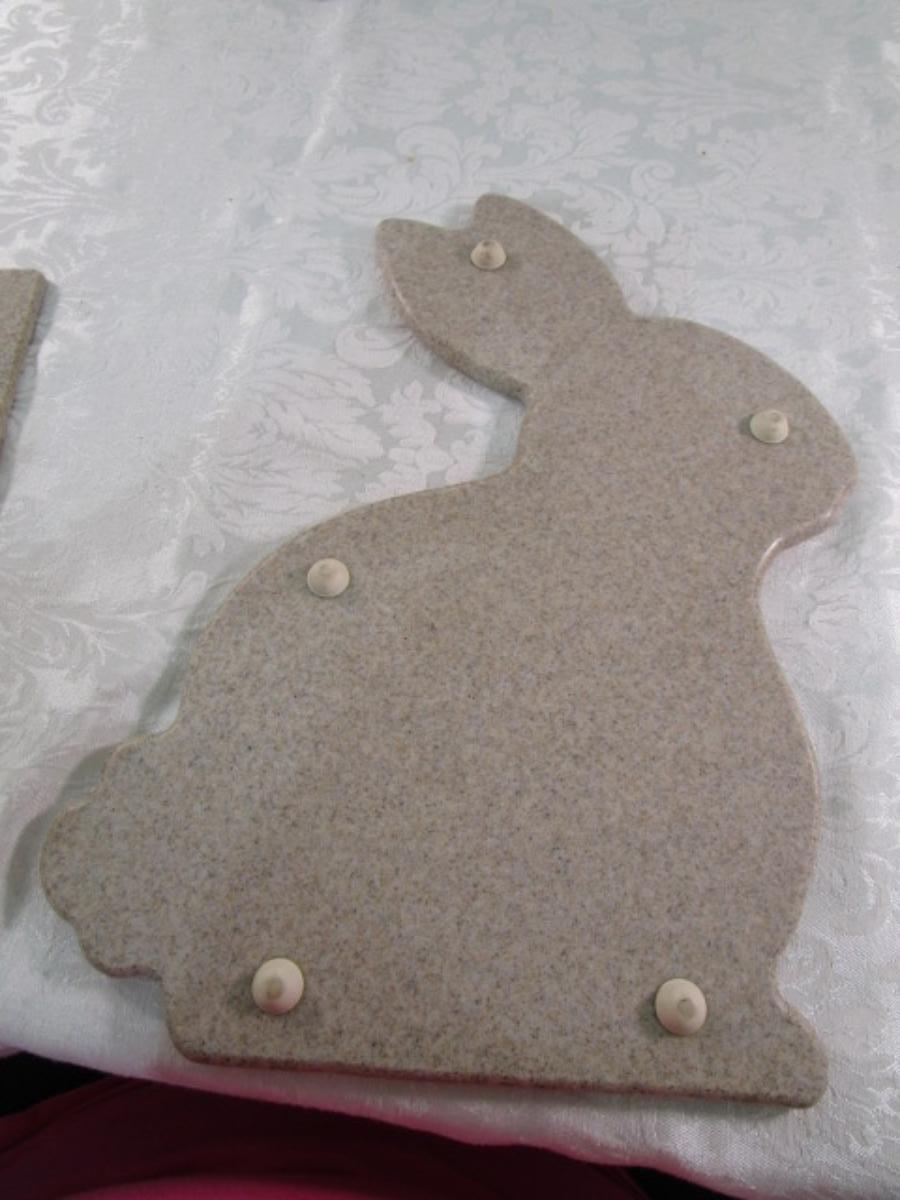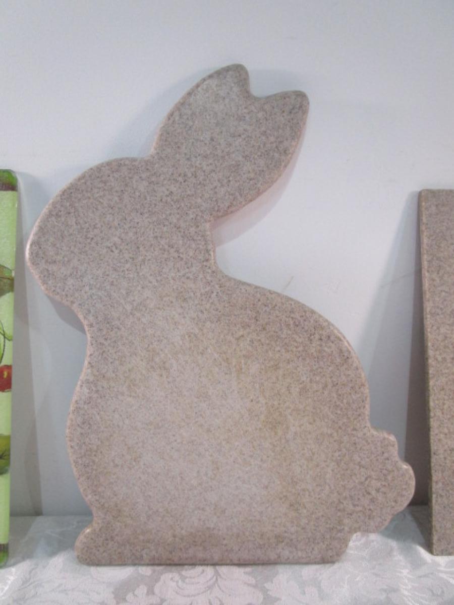 Stone rectangle is 11-1/4" x 5", Stone bunny is 14-1/4" x 10", Glass board is Anchor Hocking 15-5/8" x 11-3/4", See pictures