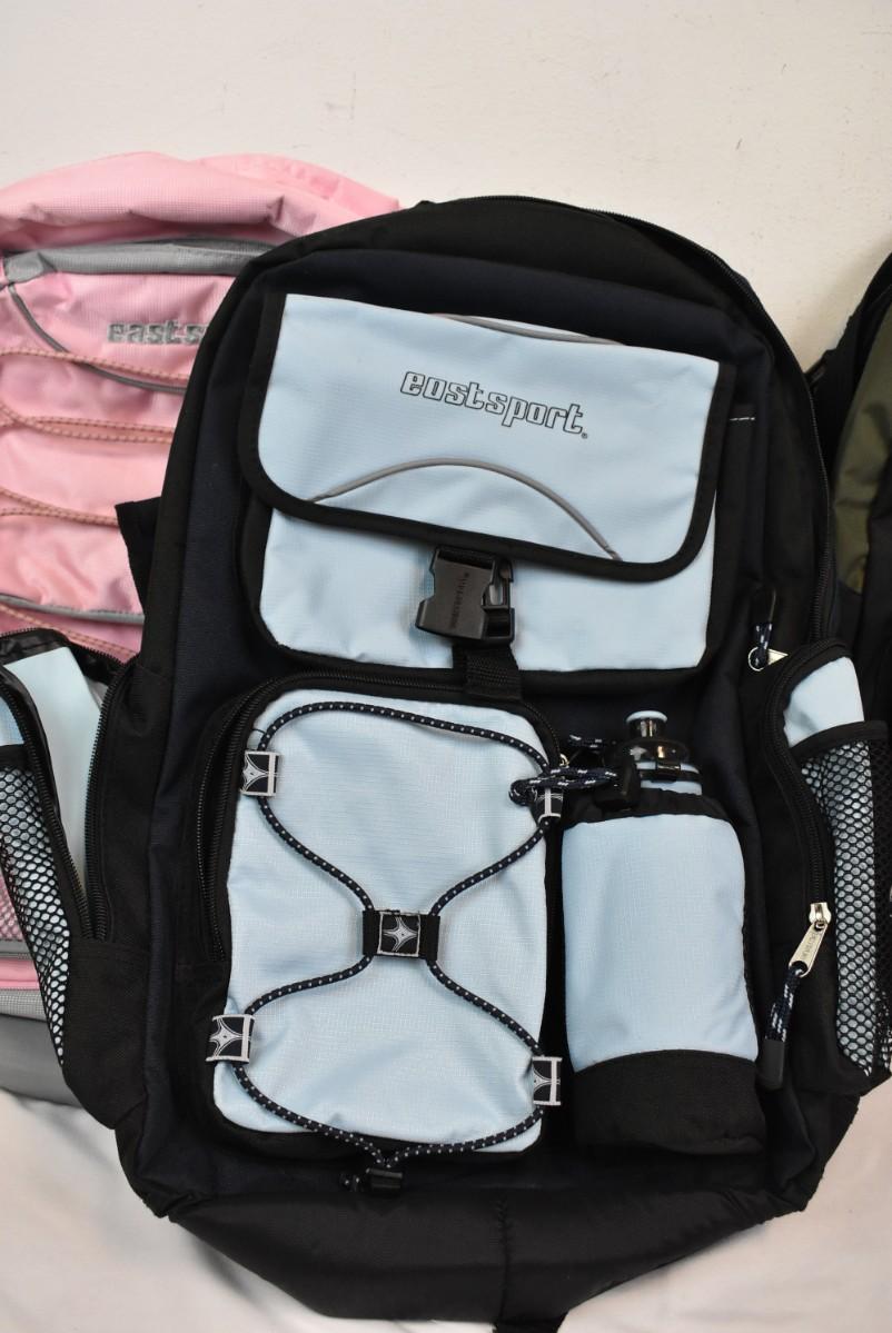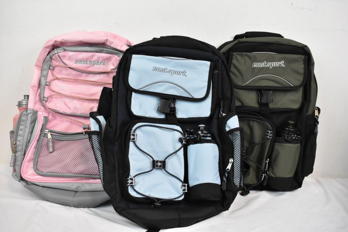 3 Eastsport Multipurpose Sport Backpacks with Coordinating Water Bottles, New