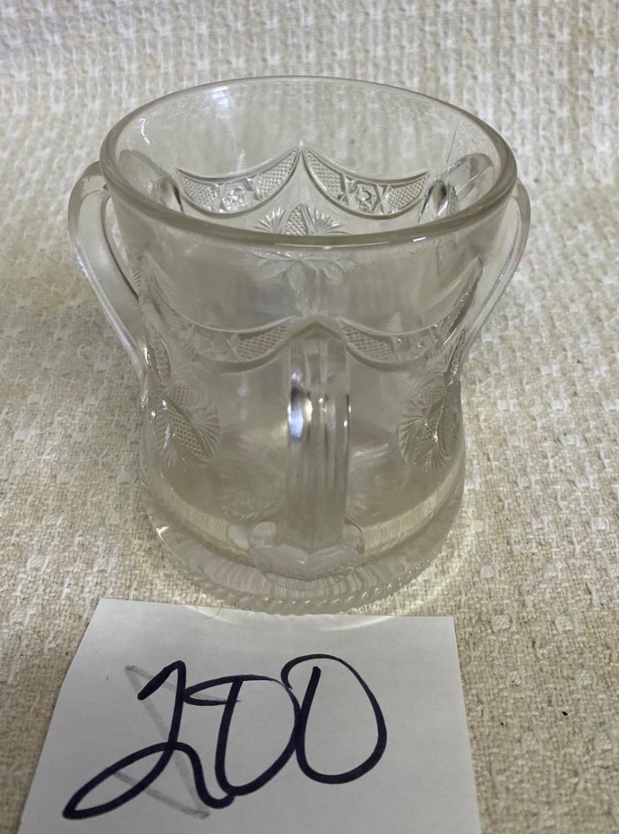 Vintage Eapg Rosettes And Prapery Pattern 3 Handled Glass Loving Cup.