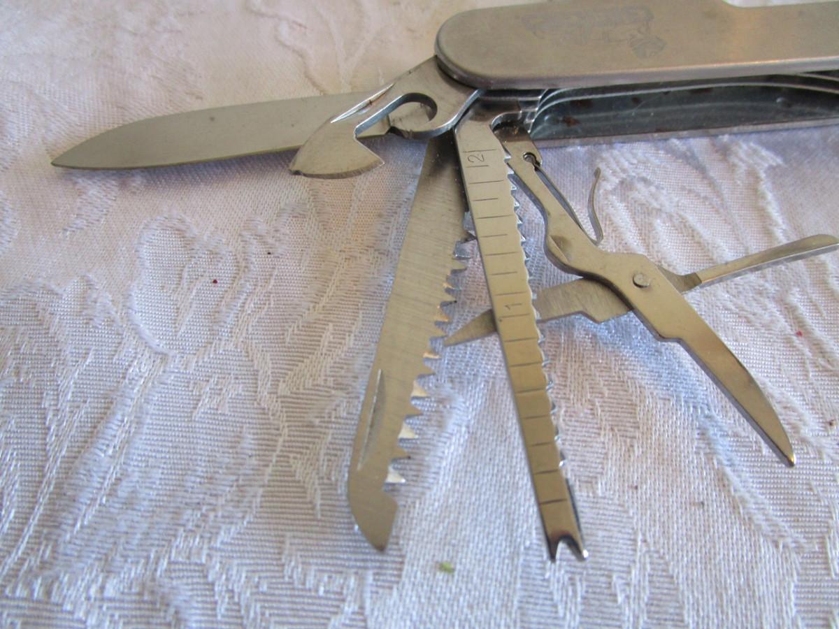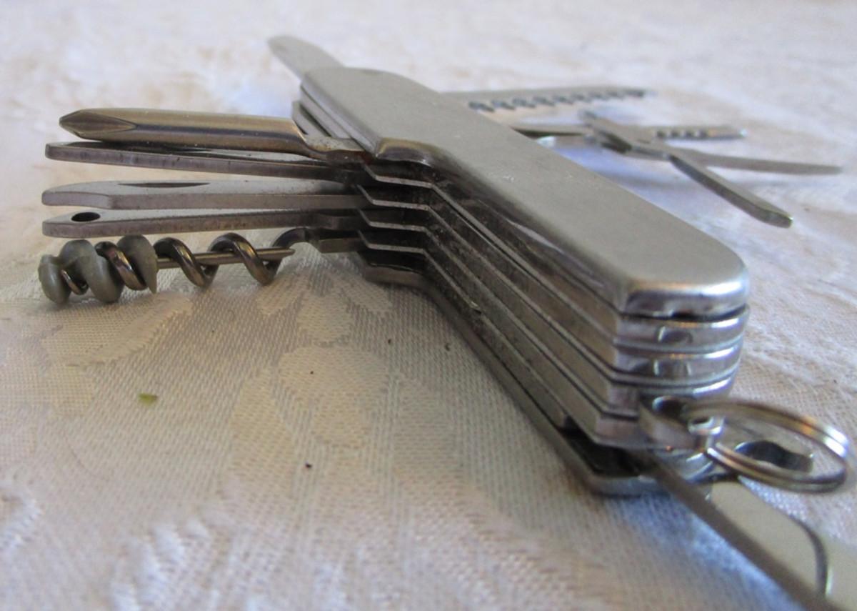 See pictures 2 multi-purpose knived, 1-single-blade knife