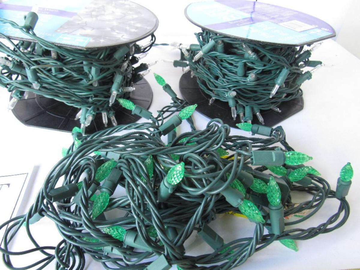 3 Strings of Christmas Lights, 2 Clear, 1 Green