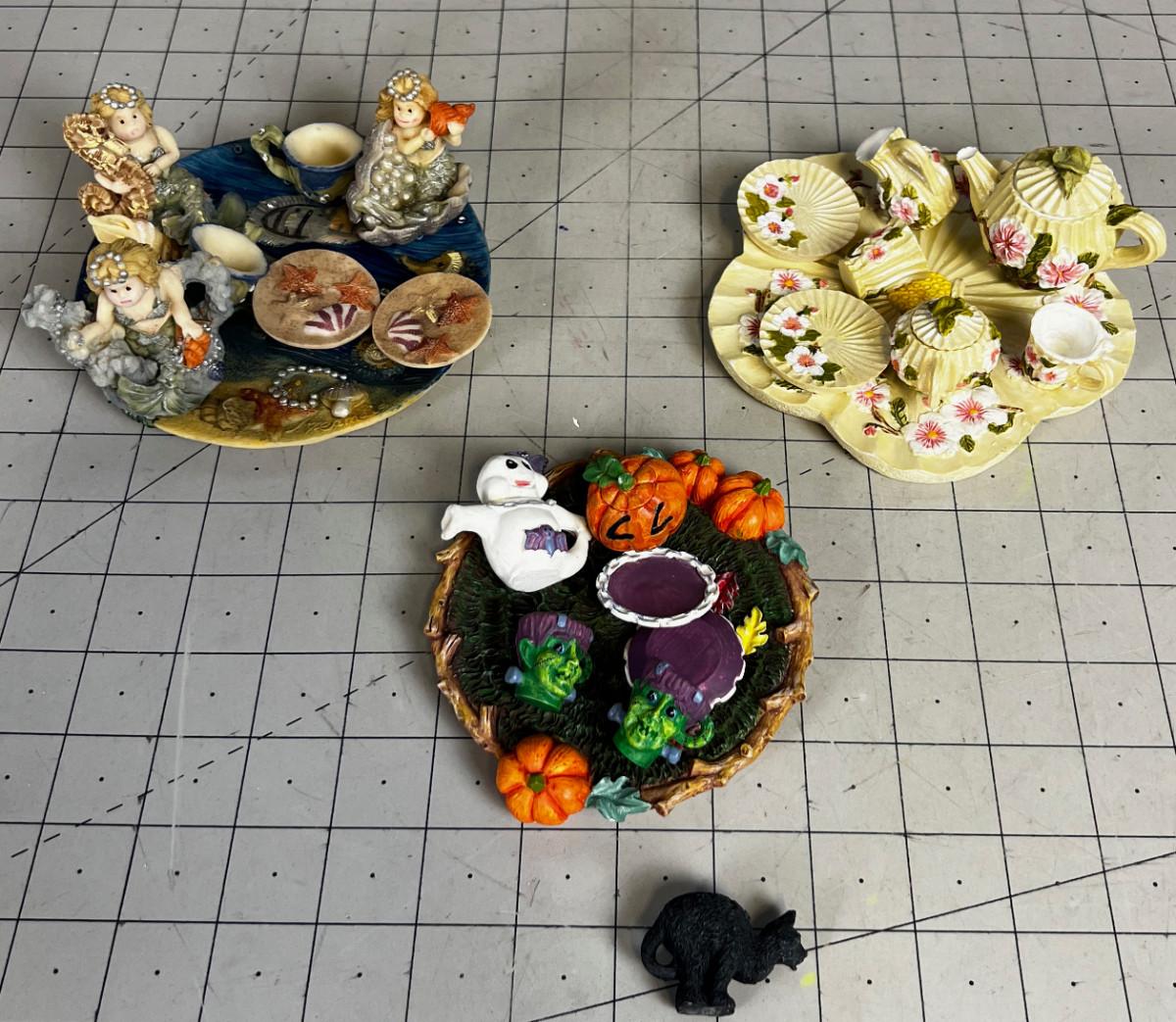 (3) Tiny Tea Party Plates: Halloween, Flowers and Mermaids