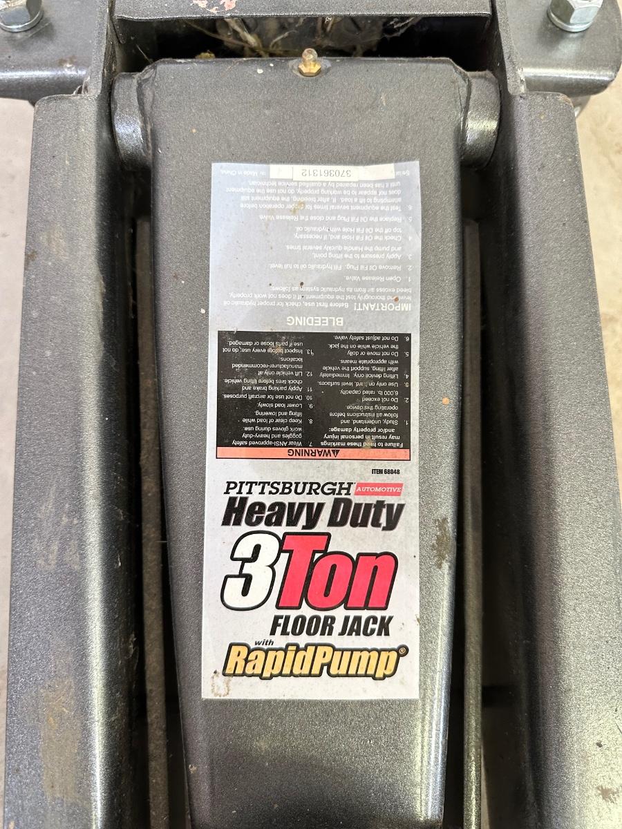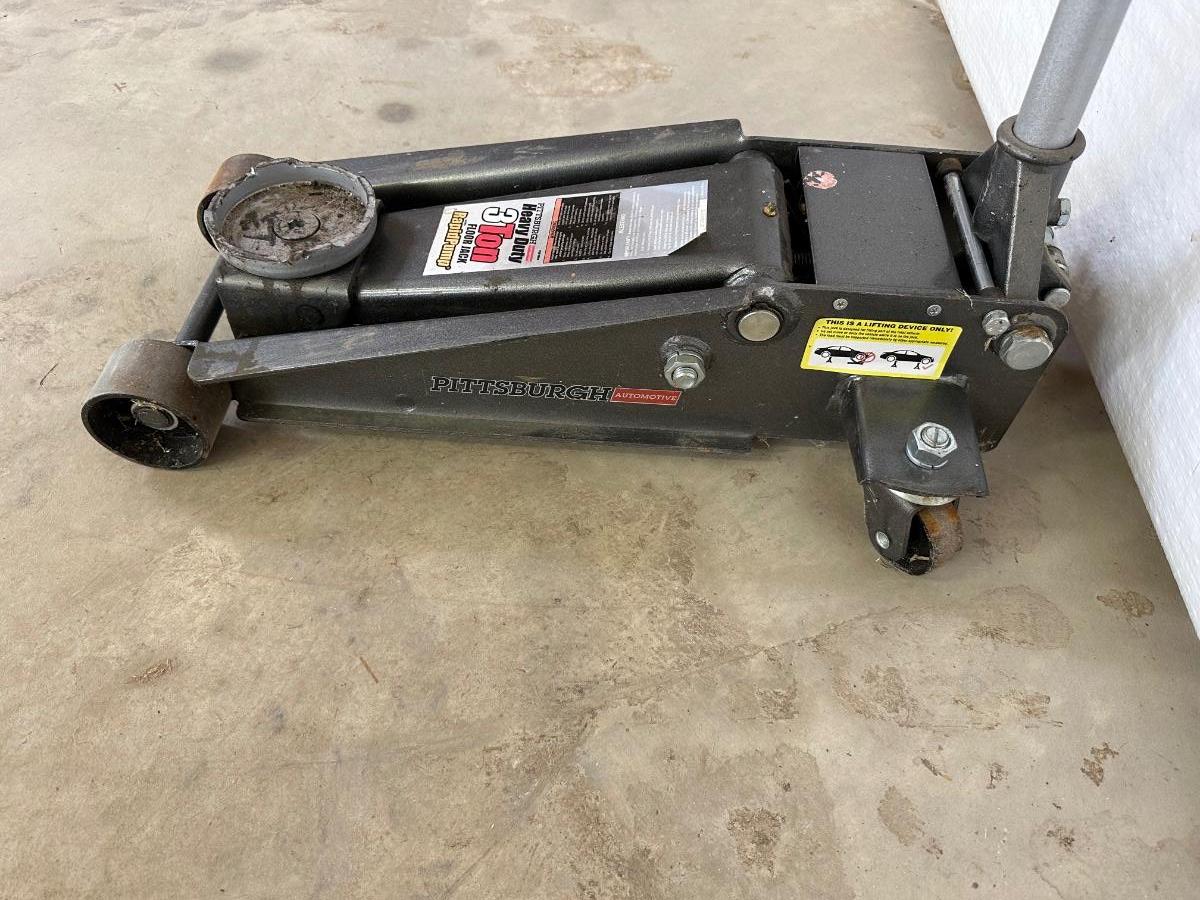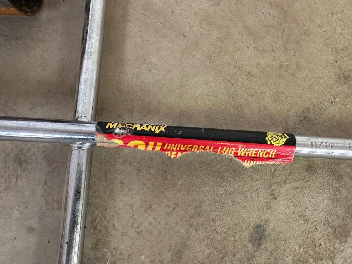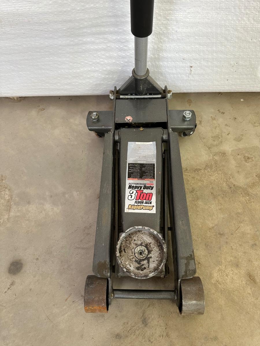 3 TON FLOOR JACK AND A 4 WAY LUG WRENCH