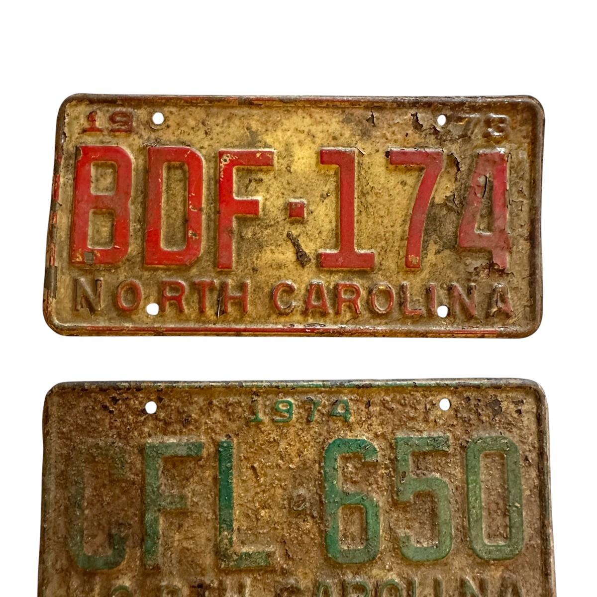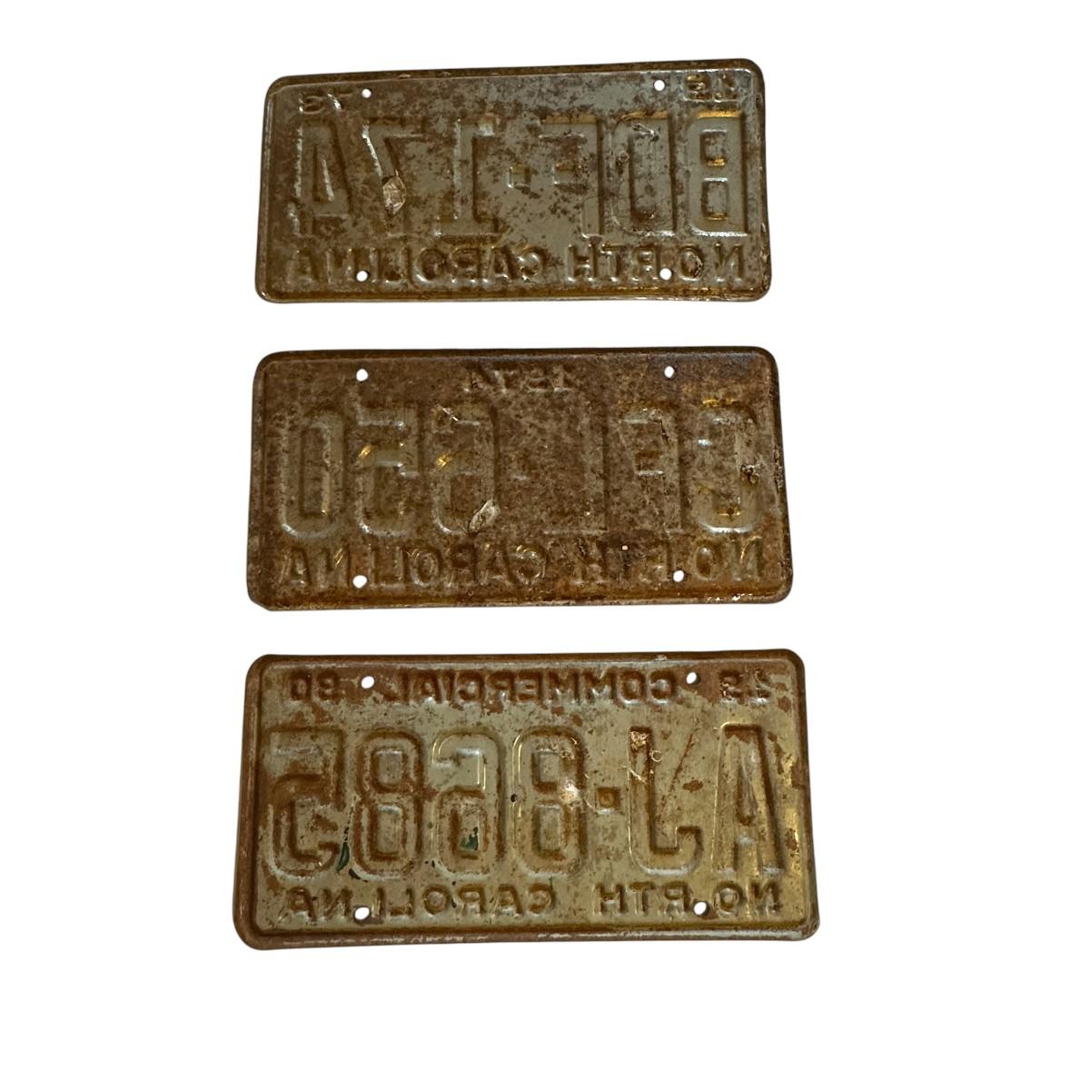 3 Vintage NC LIcense Plates from the 70s & 90 - dirty, rusty