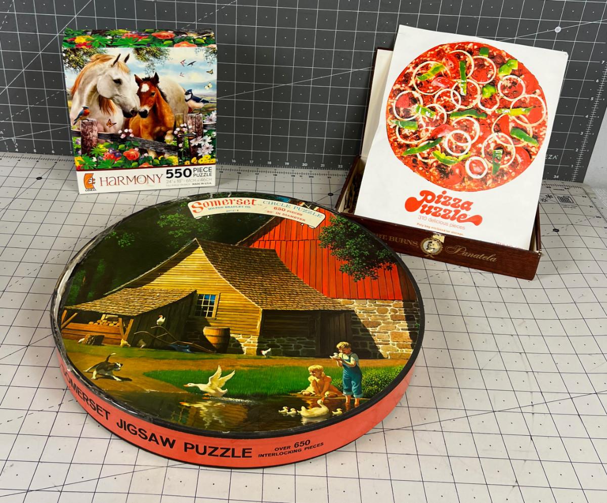 3 Vintage Puzzles: Horse, Pizza and Round Farm