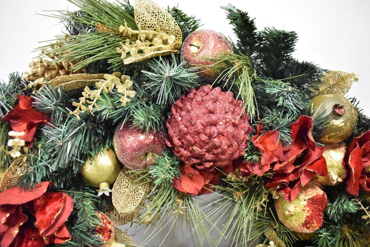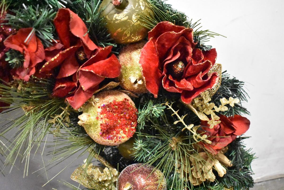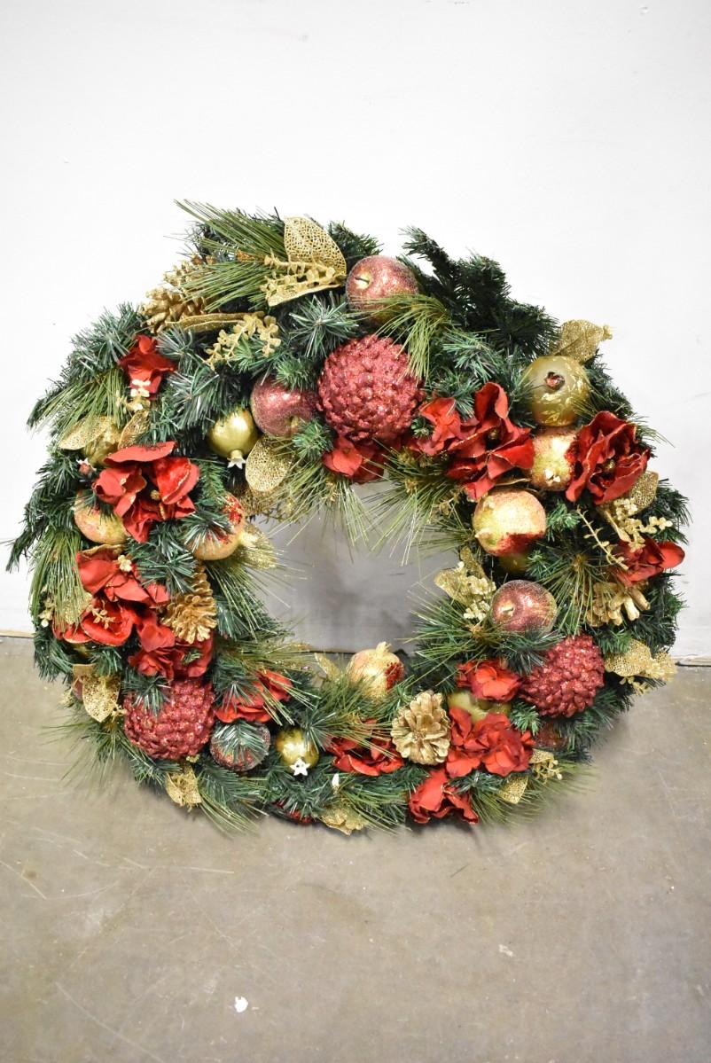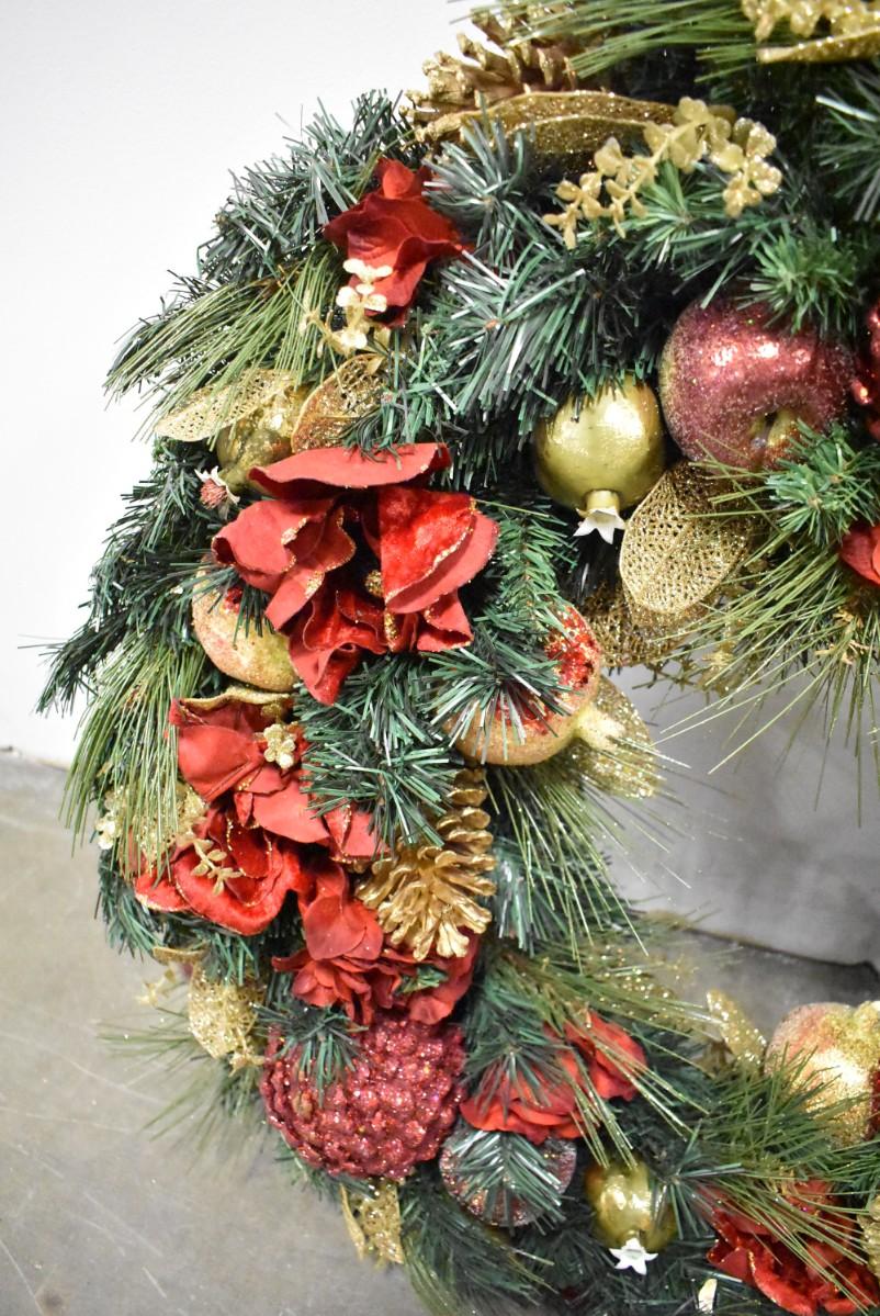 30" Holiday Wreath, Winter Fruits, Gold and Red Accented Artificial Pine Wreath