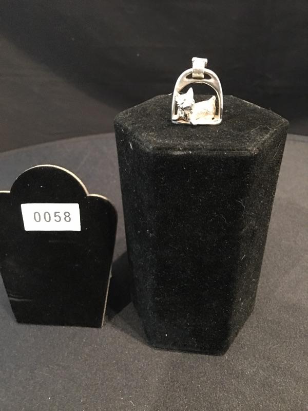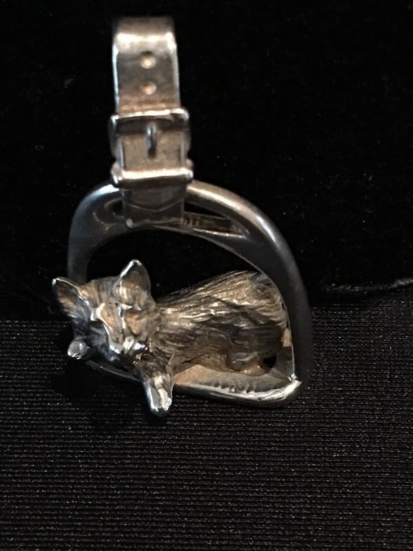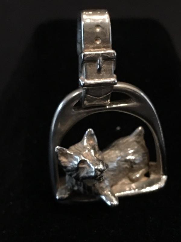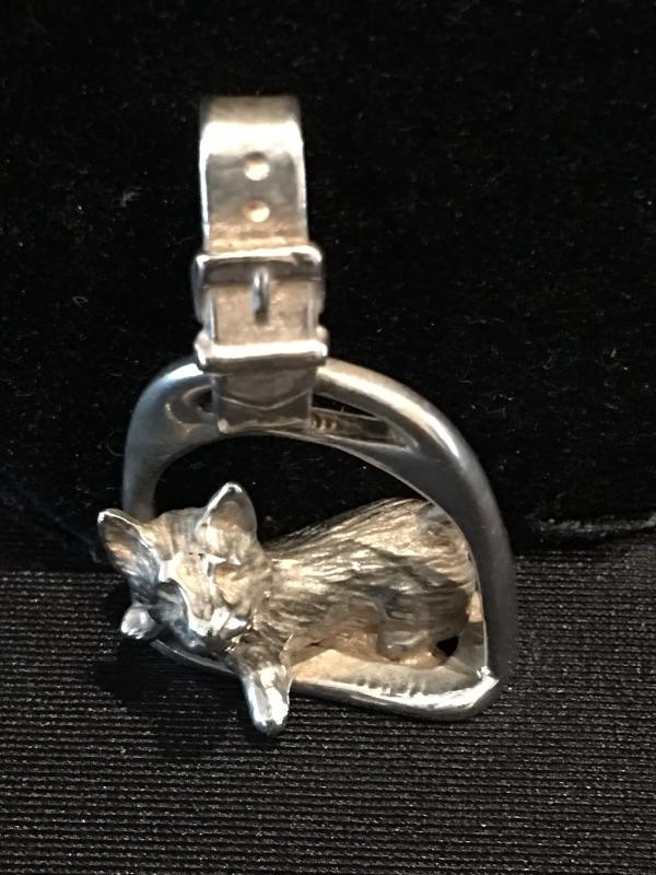 339g Sterling Silver Terrier Dog Belt Pendant on Buckled Stirrups Item #58