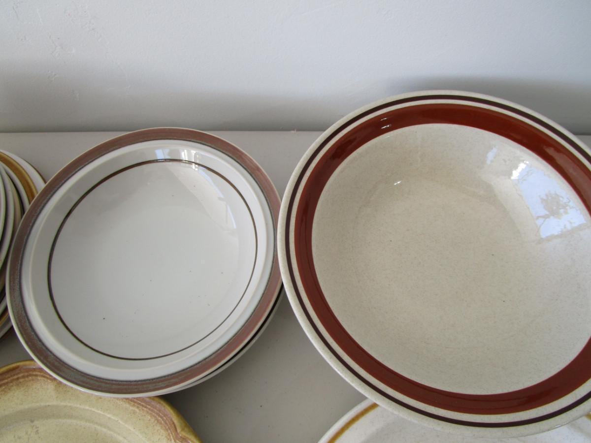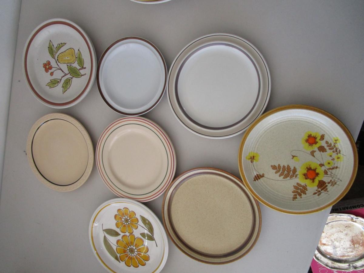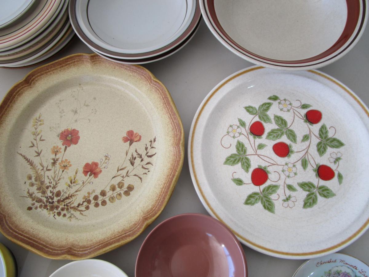 2 dinner plates, 8 salad plates, 6 saucers, 1 lg bowl, 2 cereal bowls, Corelle bowl, 5 dessert dishes