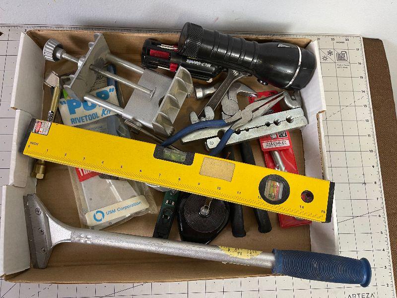 #379 Tray of Tools : Scrapper, Plyers and Level