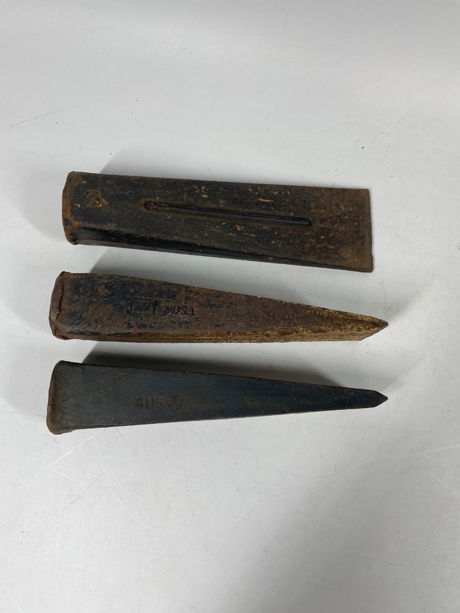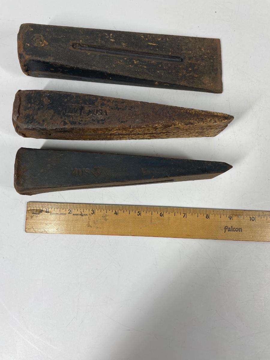 3 Steel Firewood Wedges Wood Splitters. See photos for details and sizes.