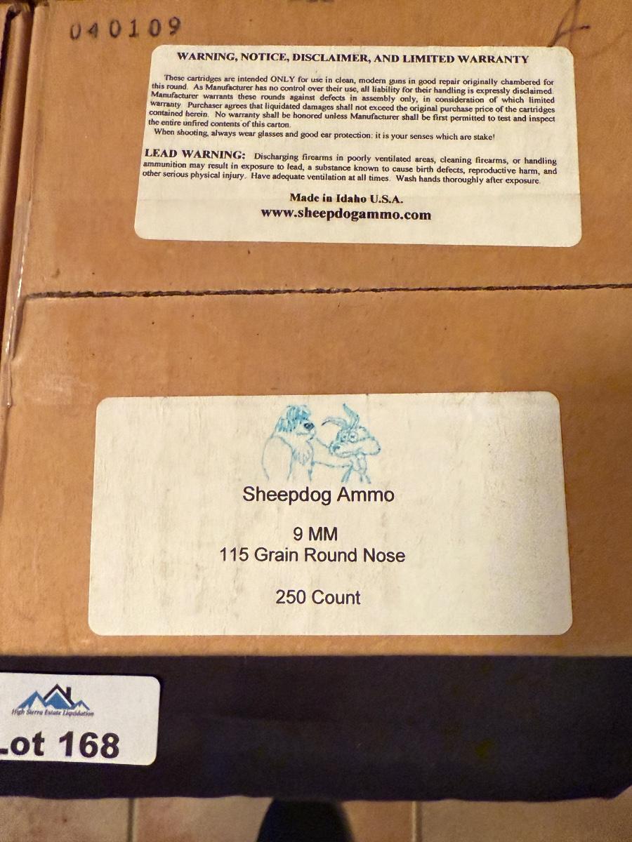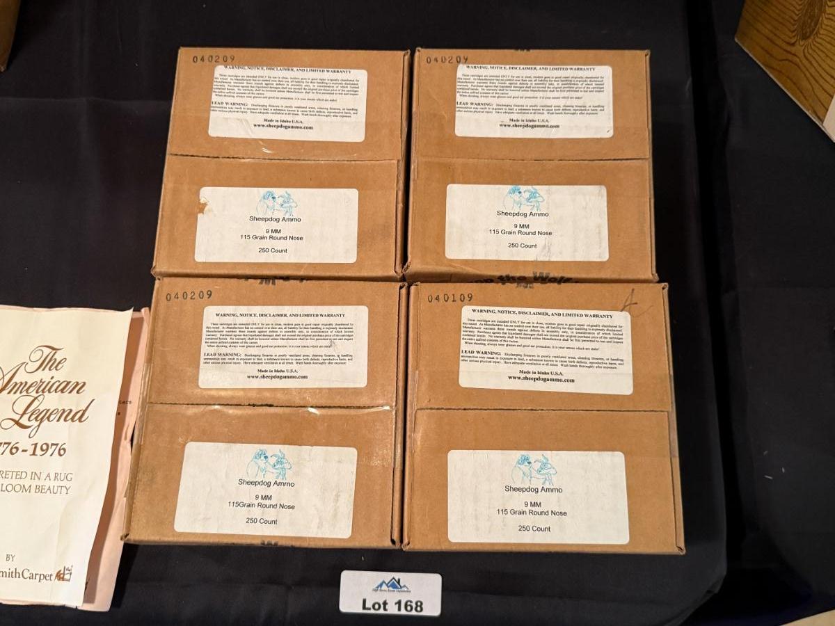 4 Boxes/1000 total rounds of 9mm Sheep Dog Ammo 115 grain round nose