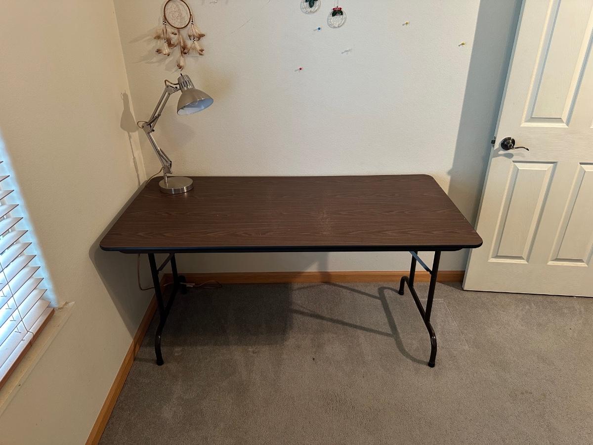 5 FOOT FOLDING TABLE AND A DESK LAMP