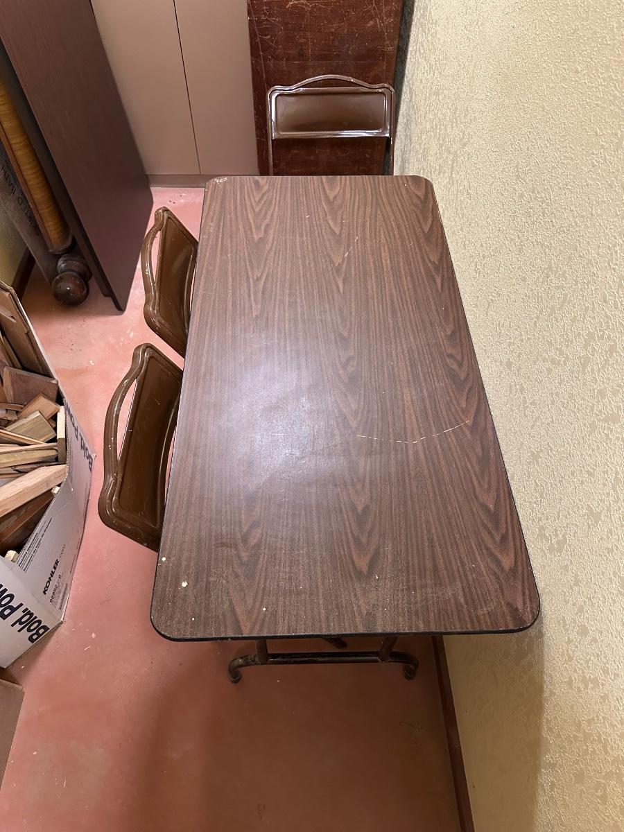 4 FOOT FOLDING TABLE AND 3 FOLDING CHAIRS
