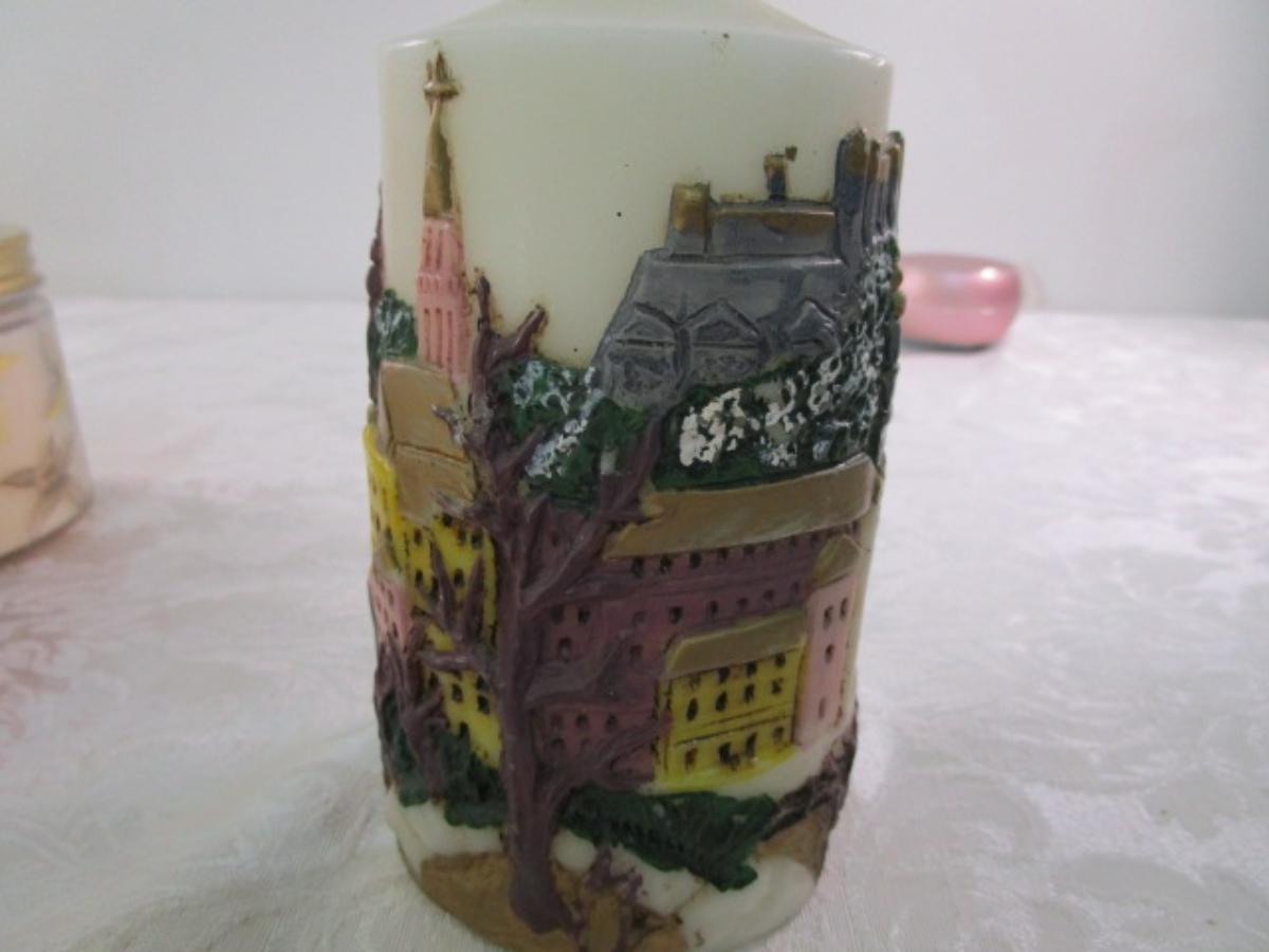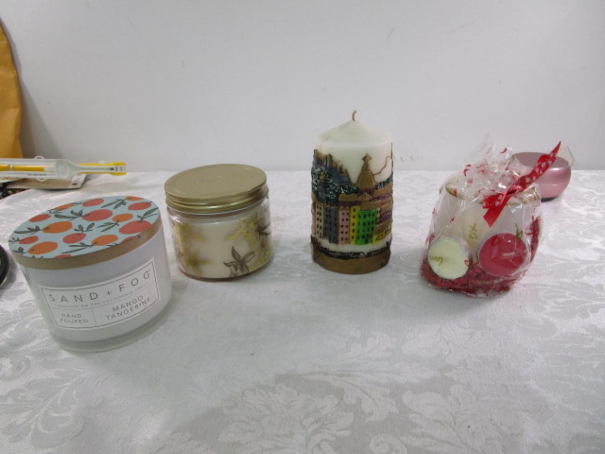 4 new ~10-12 oz. large candles, one is vintage from Europe