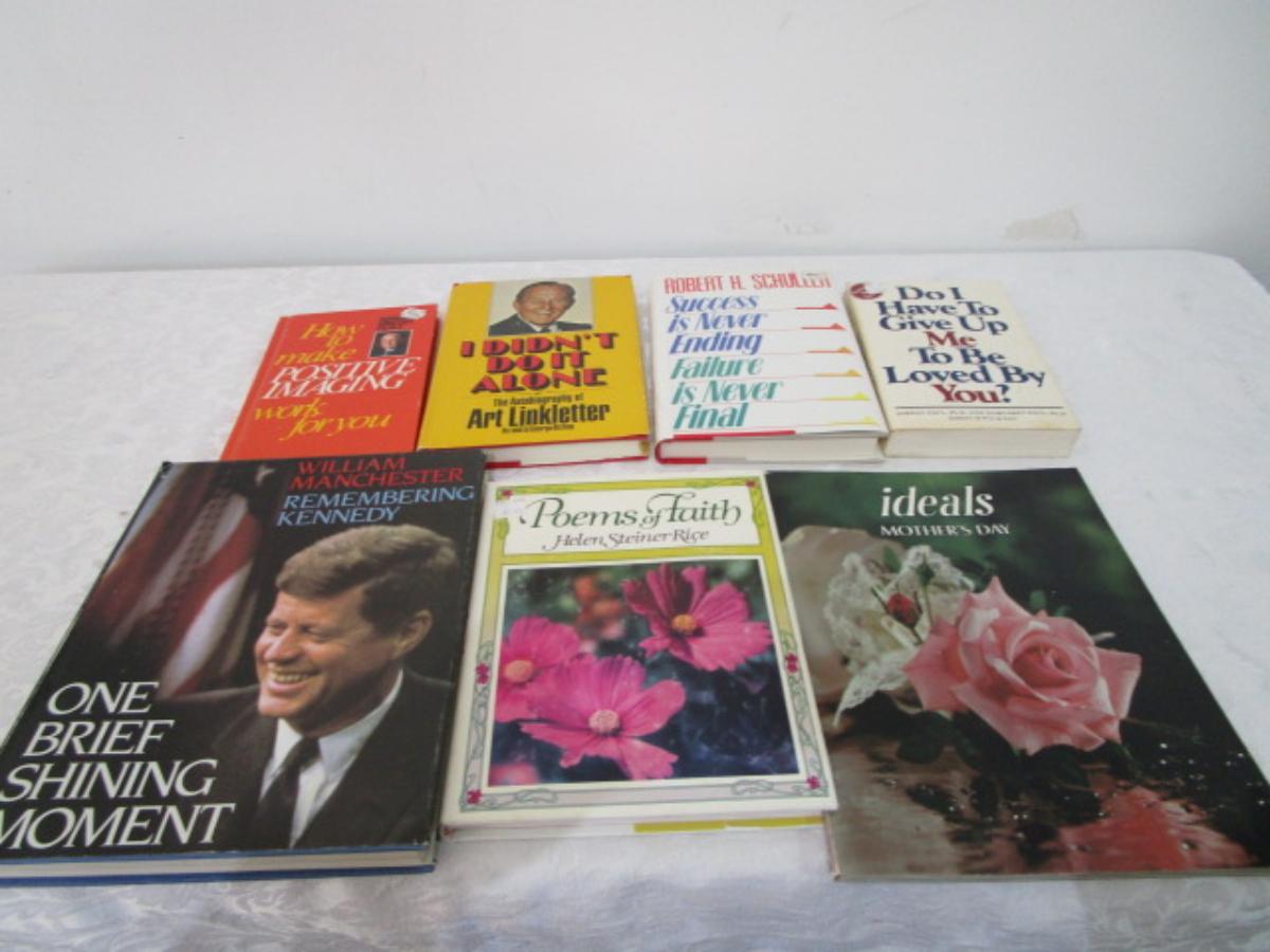 4 positivity books, 1 poetry book, 1 Ideals book, 1 book on John F. Kennedy
