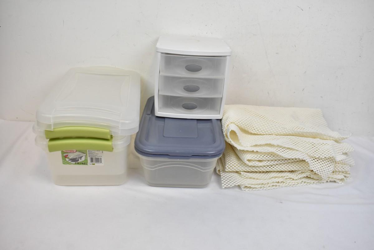 4 Storage Bins with Lids, Small Storage Drawers, and Shelf Liner
