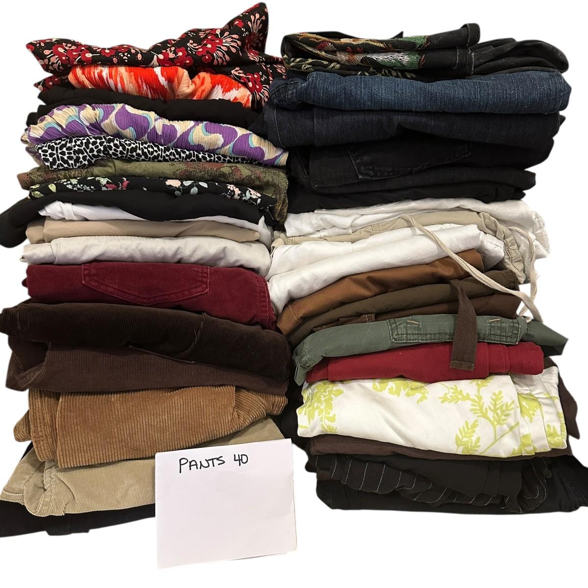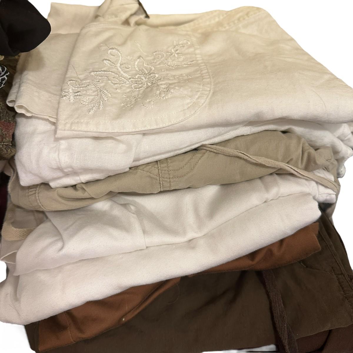 *The clothes in this estate were all owned and worn by the same lady. Almost every item is either size Medium, Large, 12 or 14. They have all been worn from little to a good bit. We have culled out the pieces that are stained, torn, or unwearable to the best of our ability. All clothes listed are wearable.