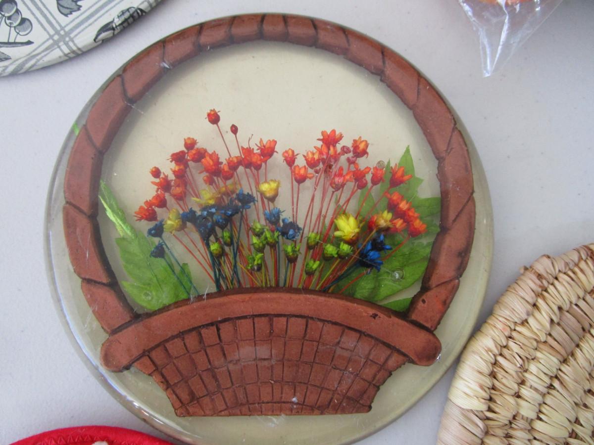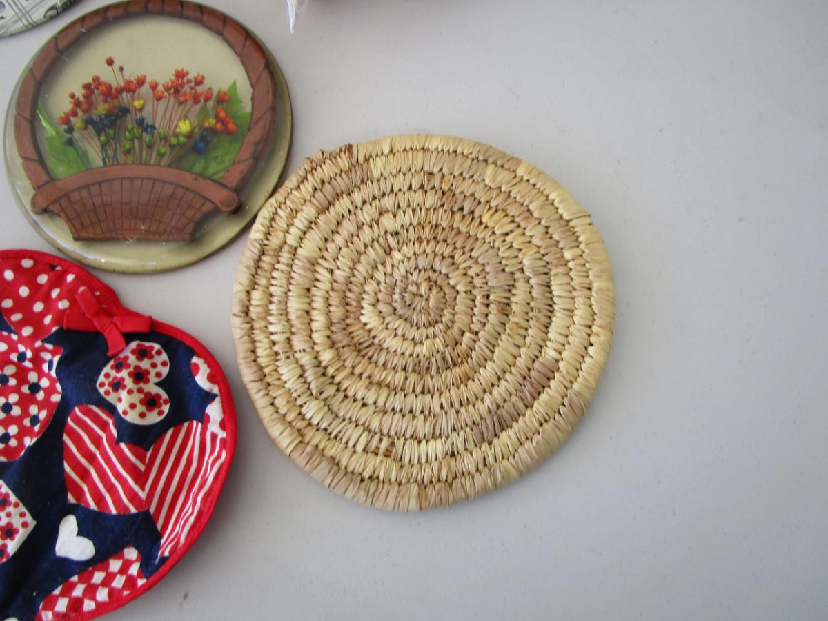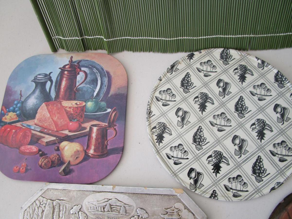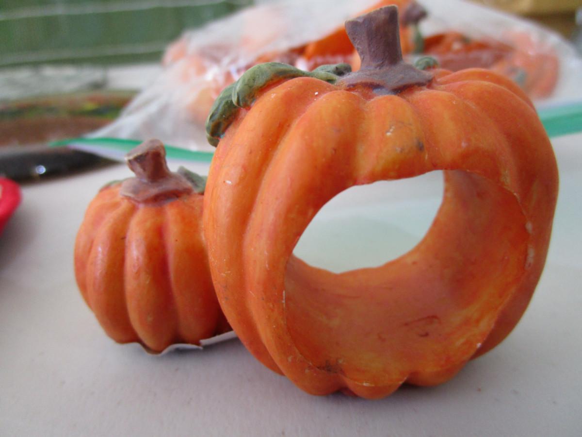 six pumpkin napkin rings, 7 trivits, and 5 new placemats, and 1 plastic bamboo style placemat