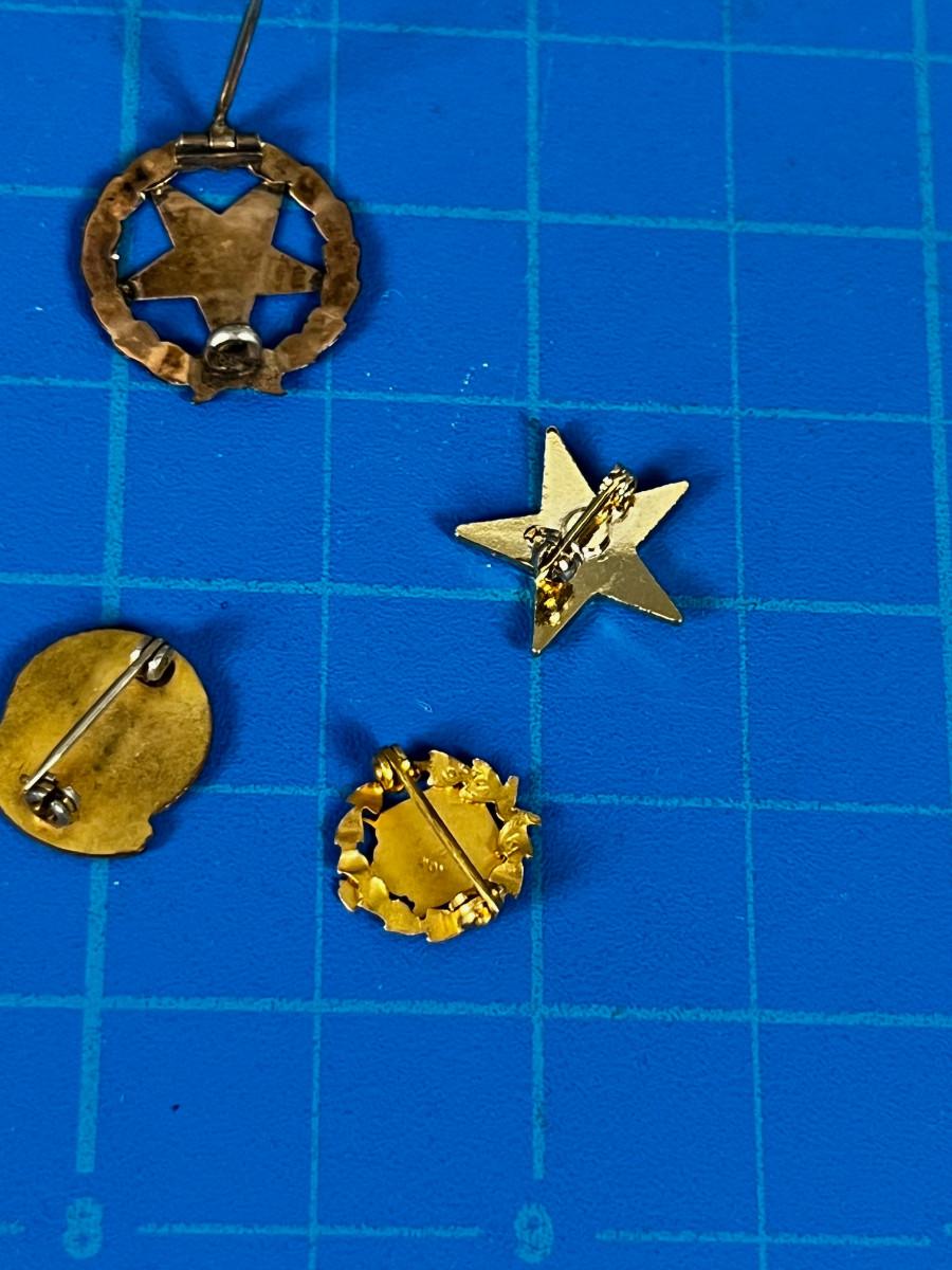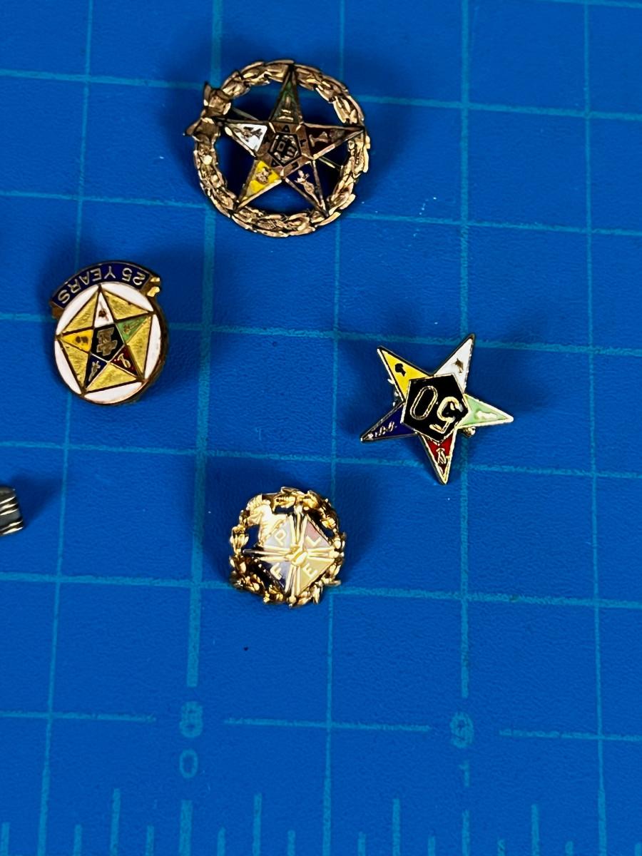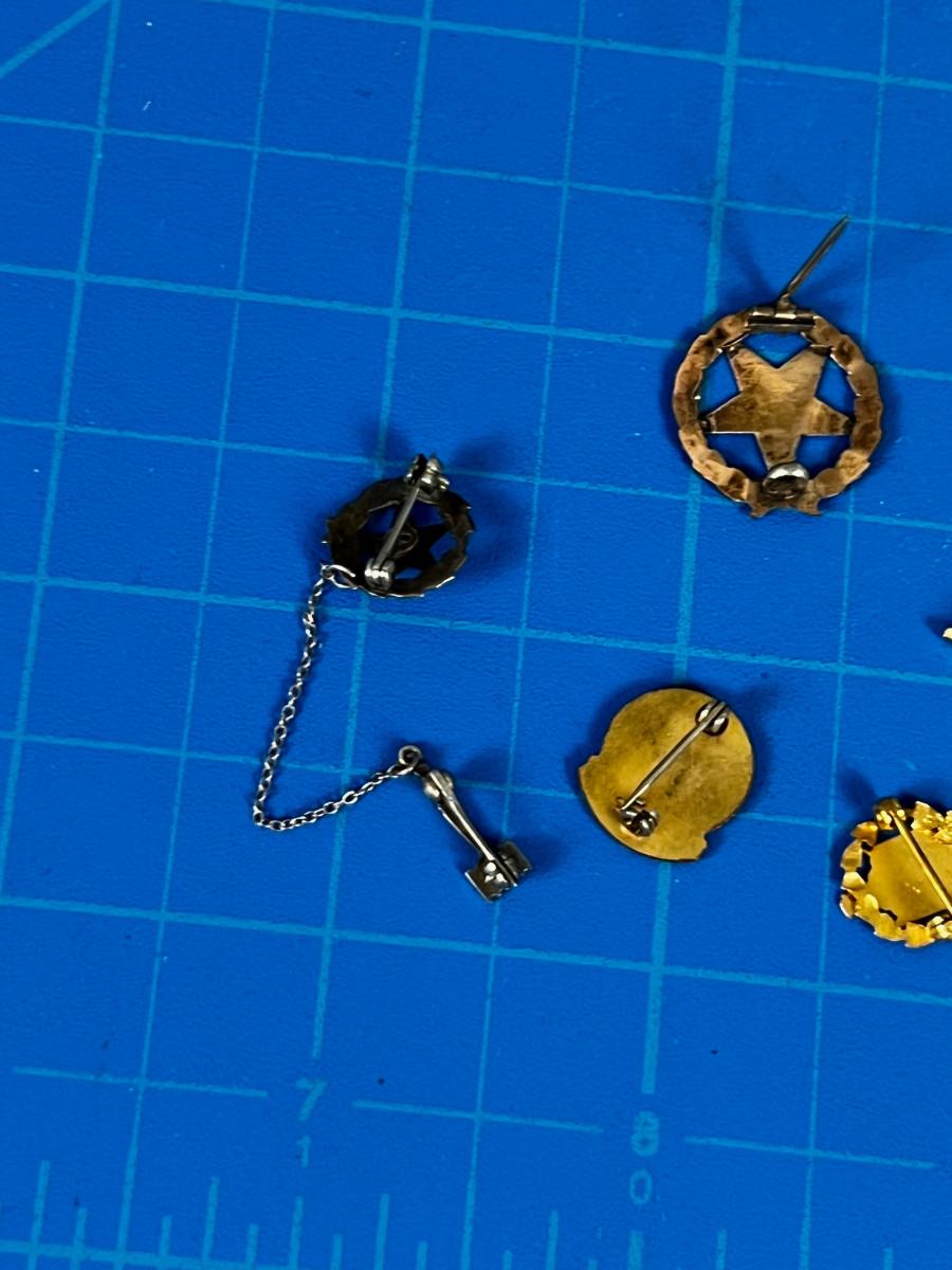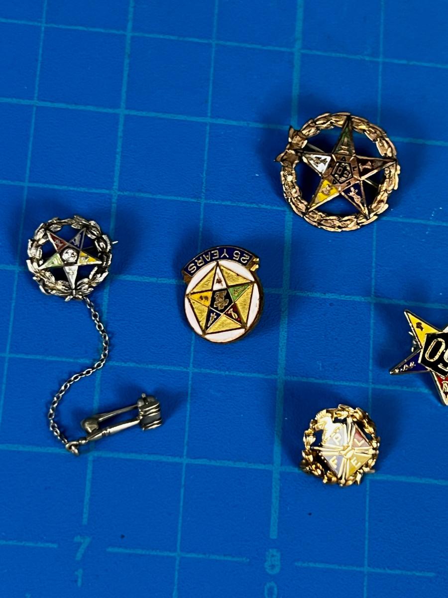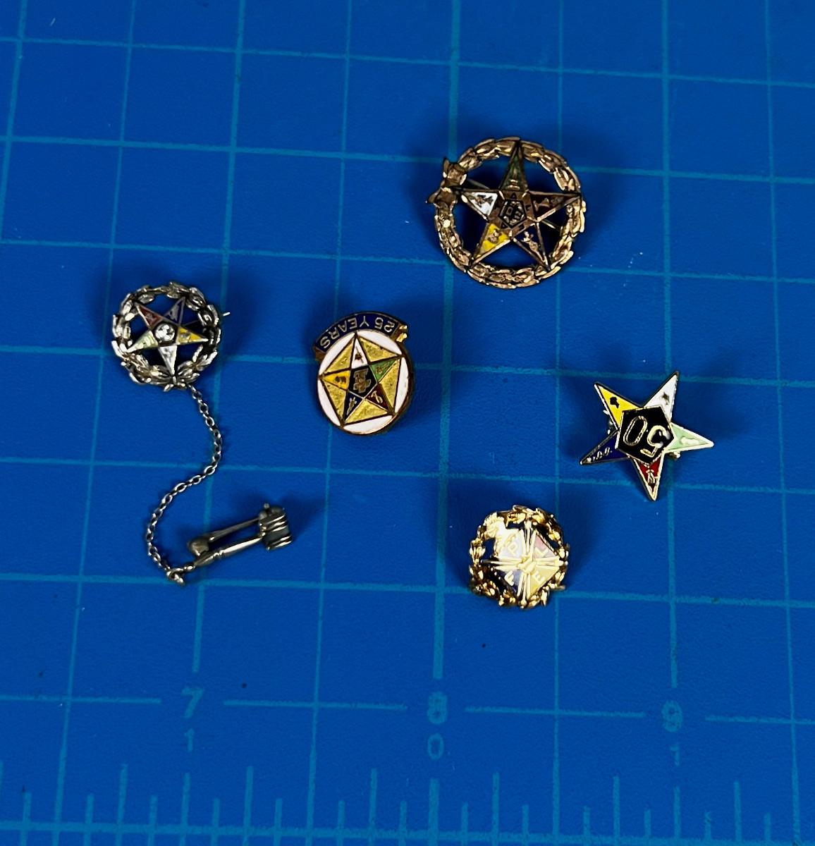5 Antique Masonic Lapel Pins, 1 is marked 10 K