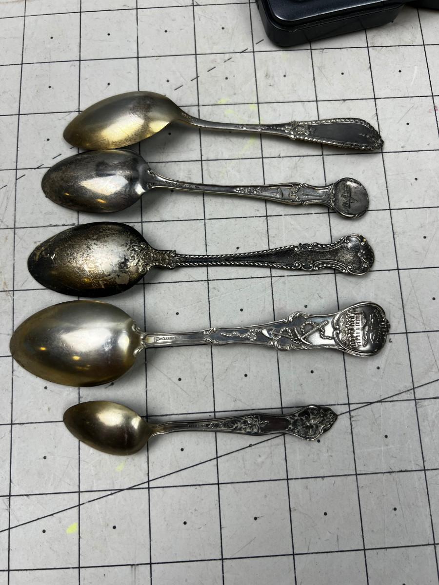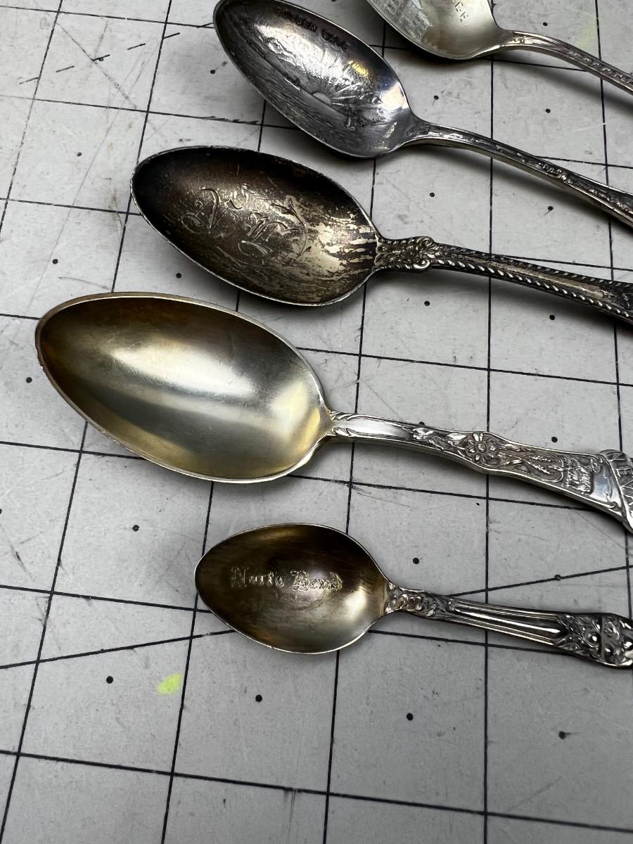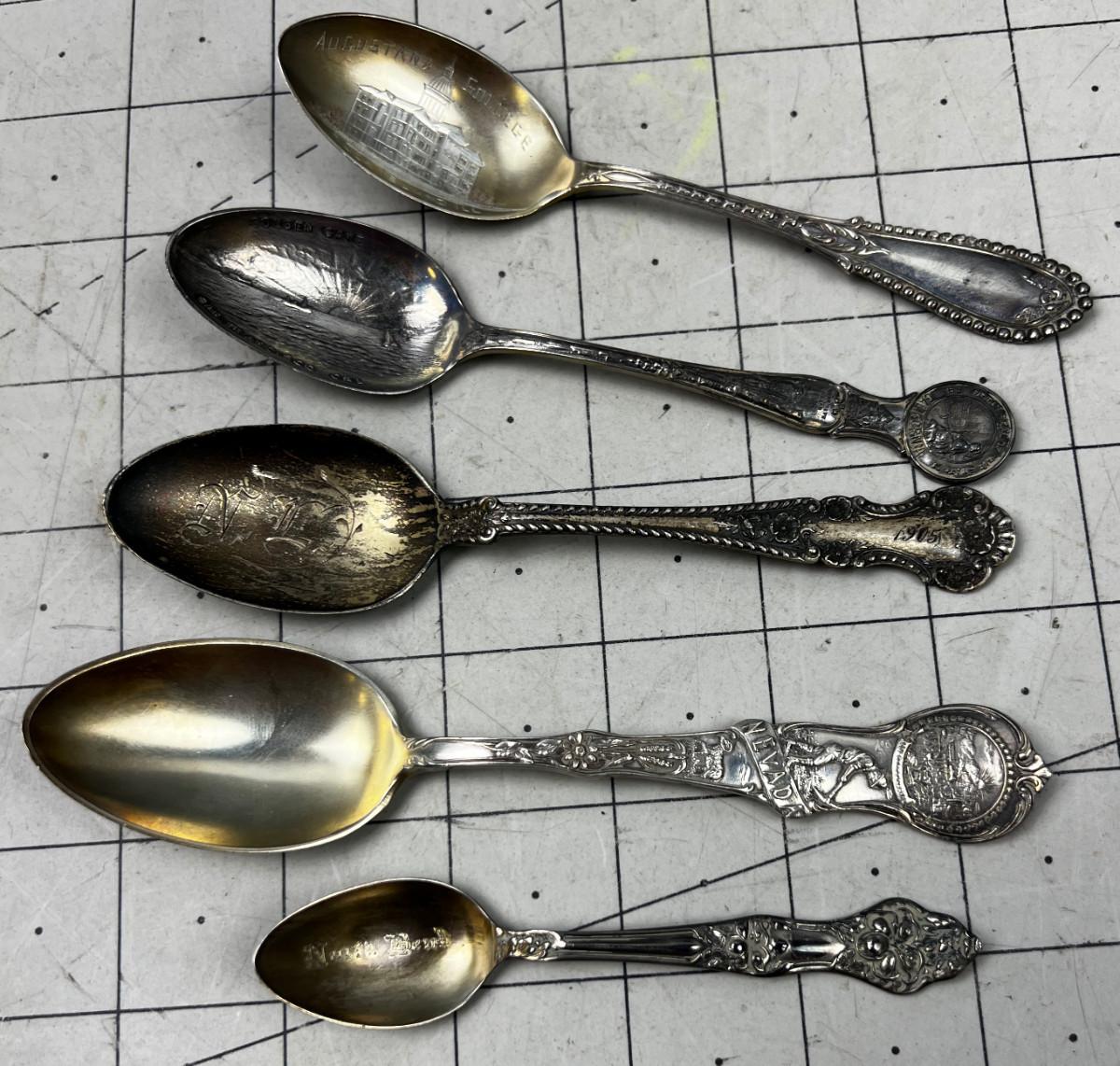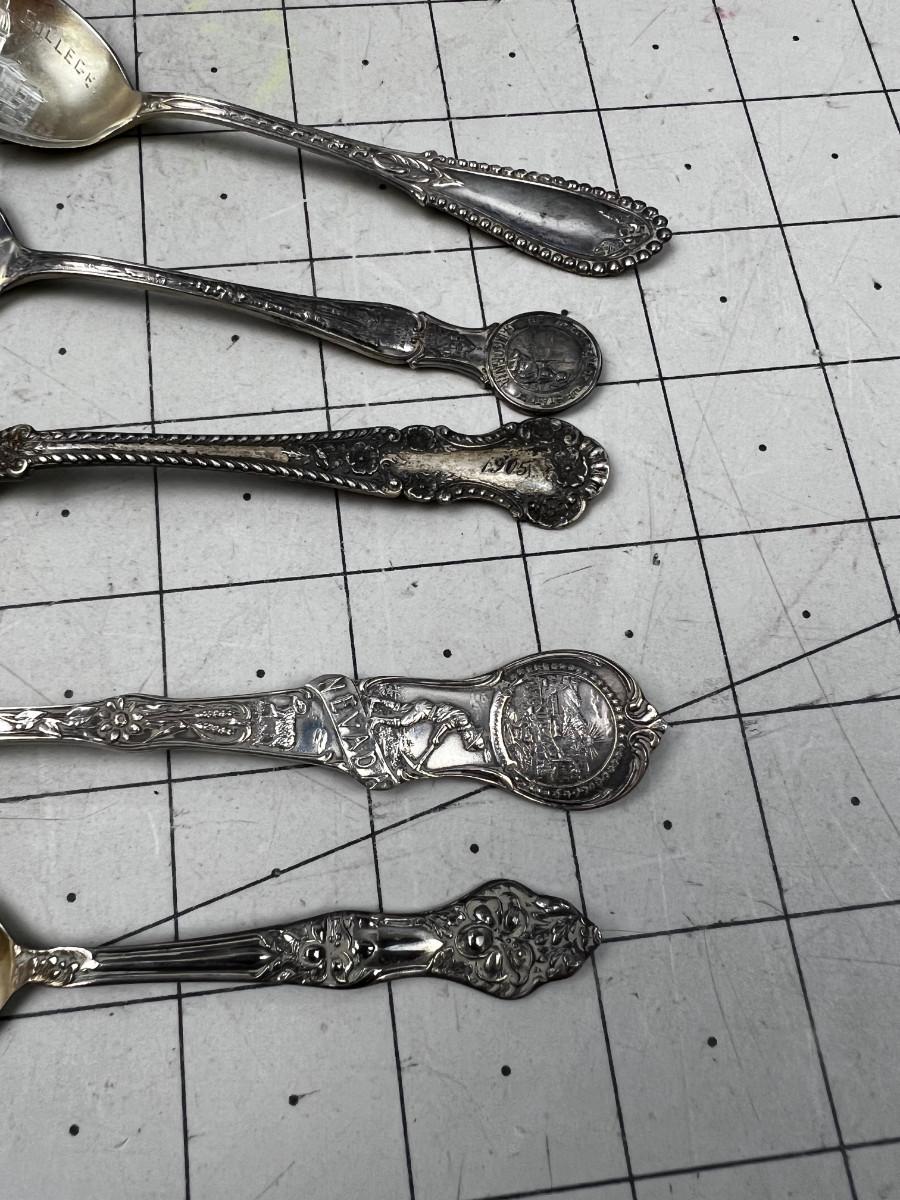 5 Antique Sterling Silver Souvenir Spoons