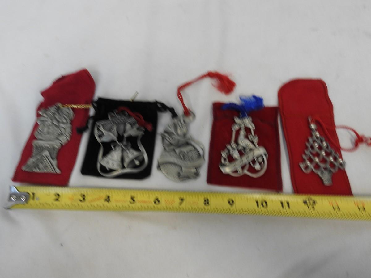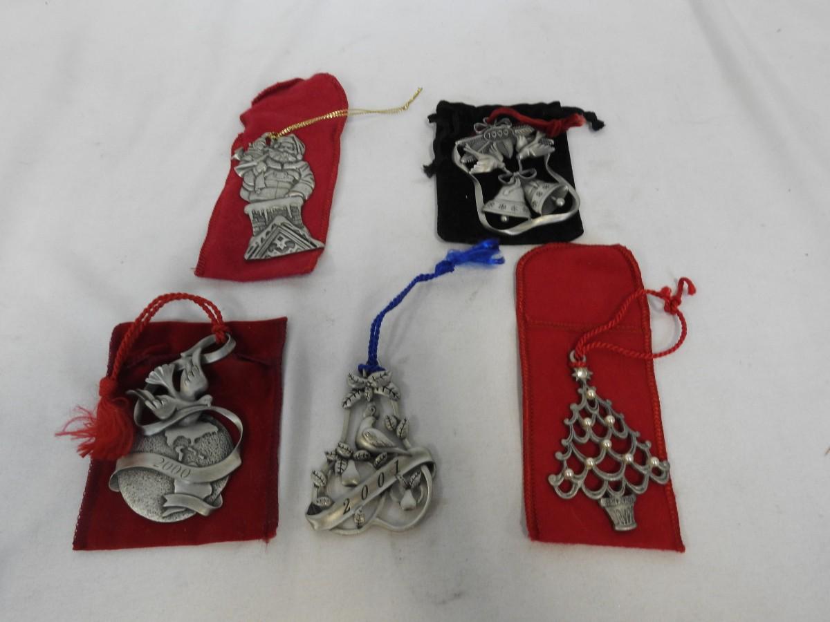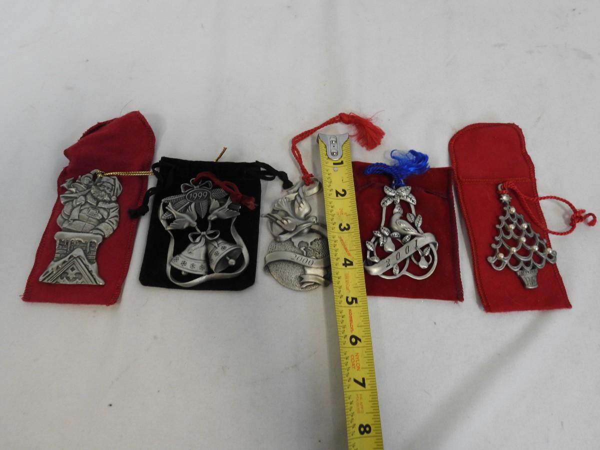 5 Pc Avon Pewter Christmas Ornaments: Dated 1994, 1999,2000,2001 & 2004