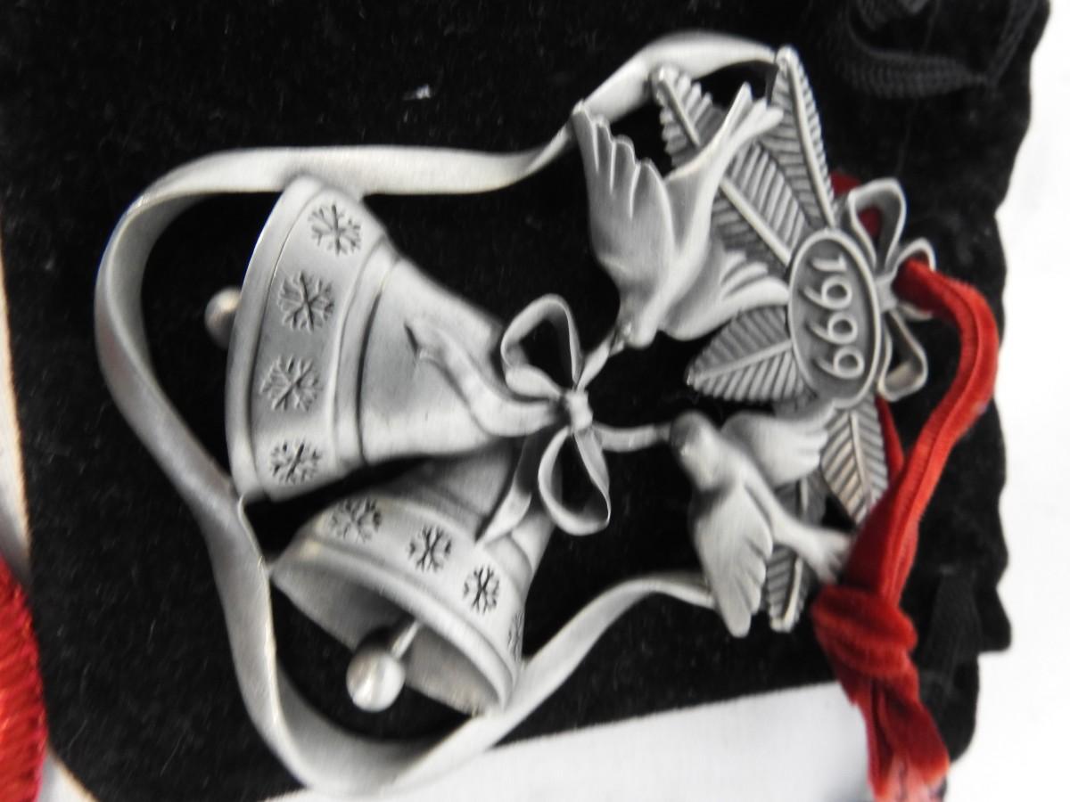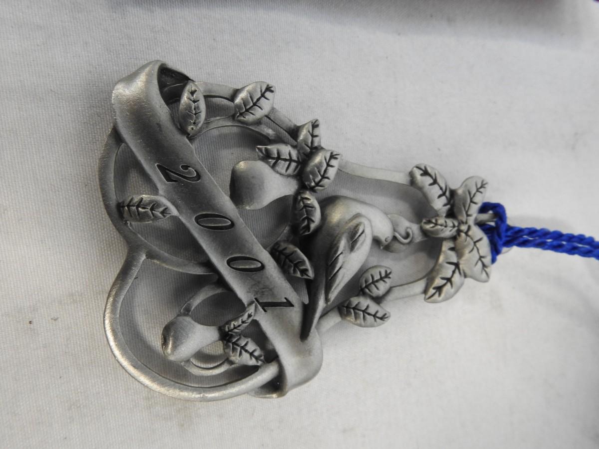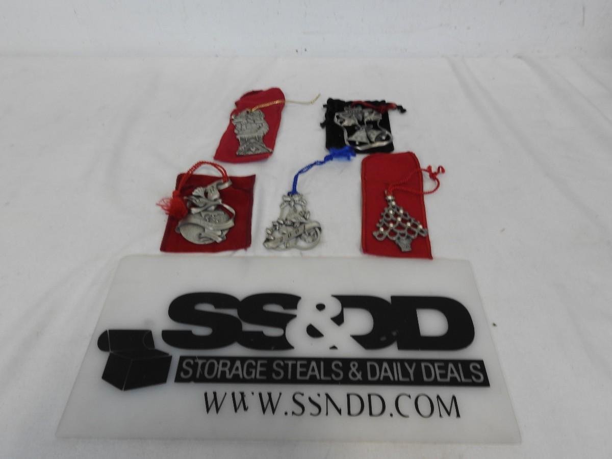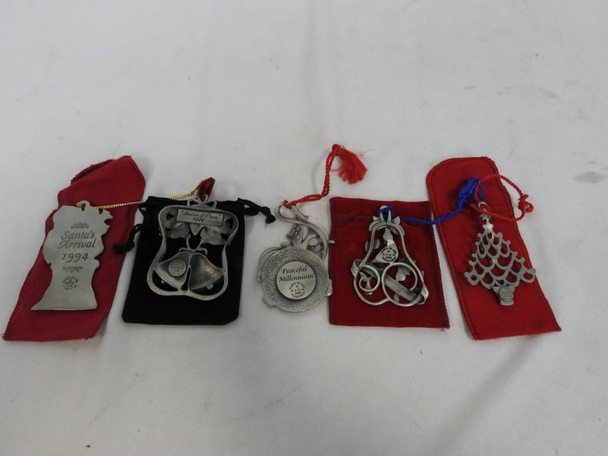5 Pc Avon Pewter Christmas Ornaments: Dated 1994, 1999,2000,2001 & 2004