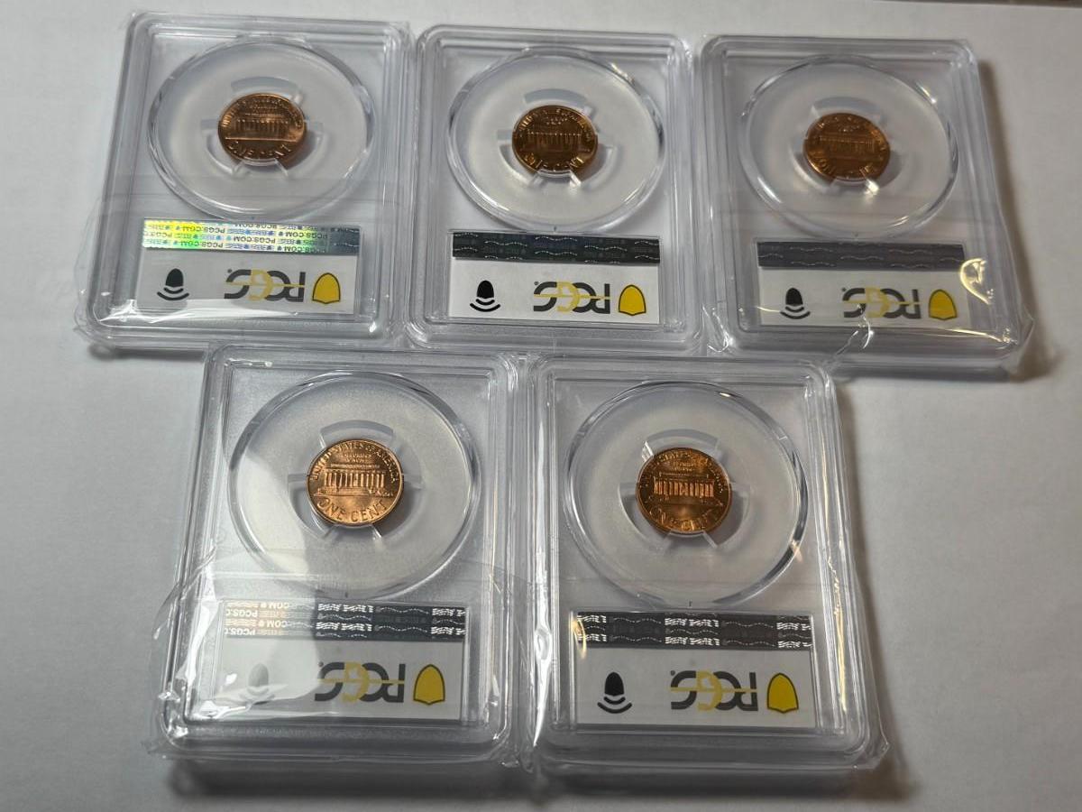 (5) PCGS CERTIFIED 1959-D MS65 RED CHOICE CONDITION LINCOLN CENT LOT AS PICTURED. $5 DOMESTIC SHIPPING.