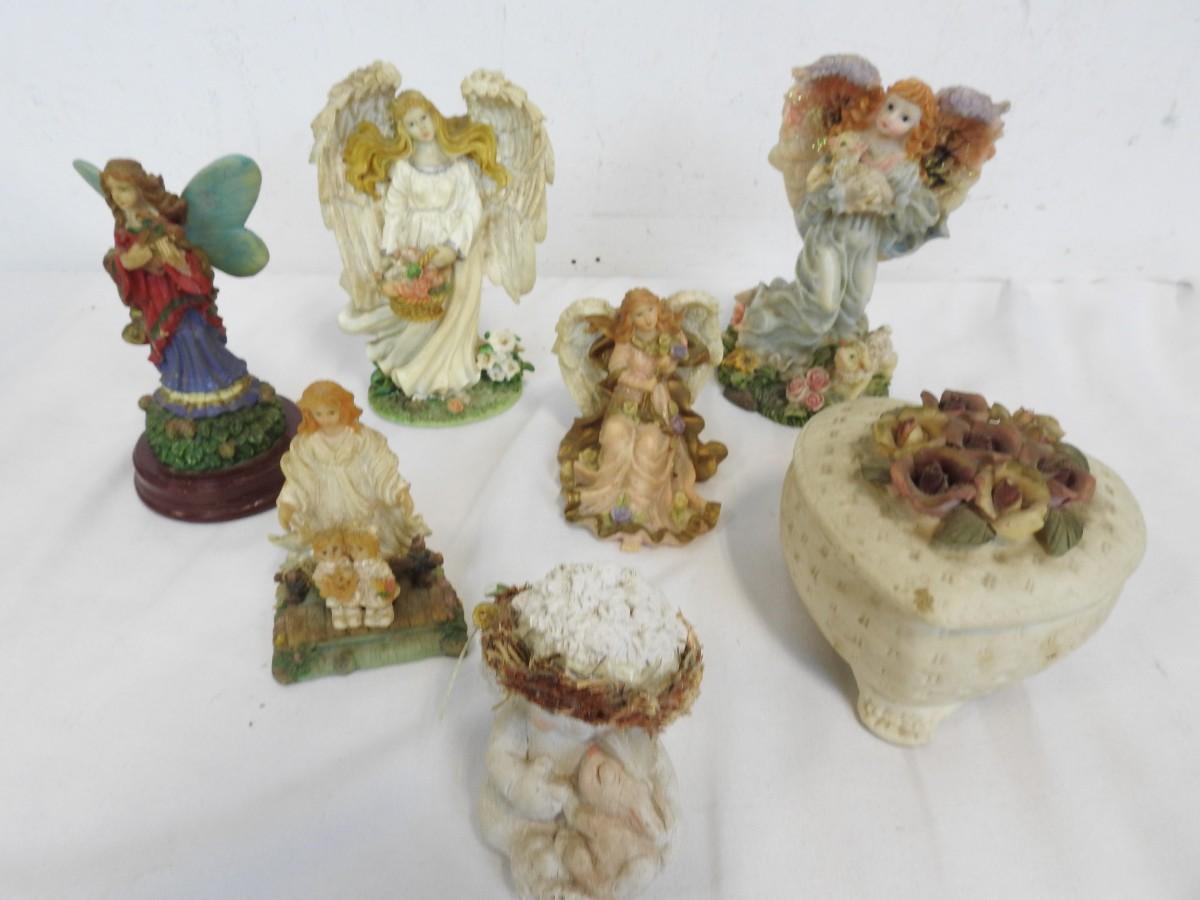 6 Figurines & Trinket Box: Angels, Cherubs, Heart Shaped Box