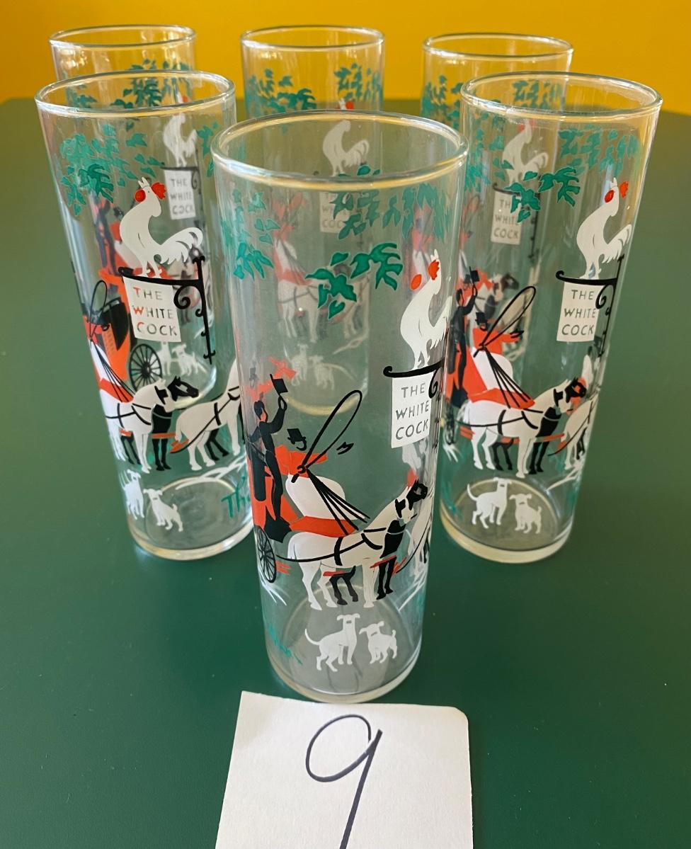 6 Vintage Libbey High Ball Stagecoach Express Tumblers