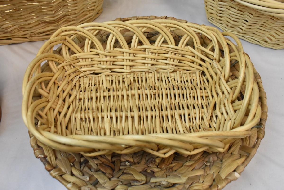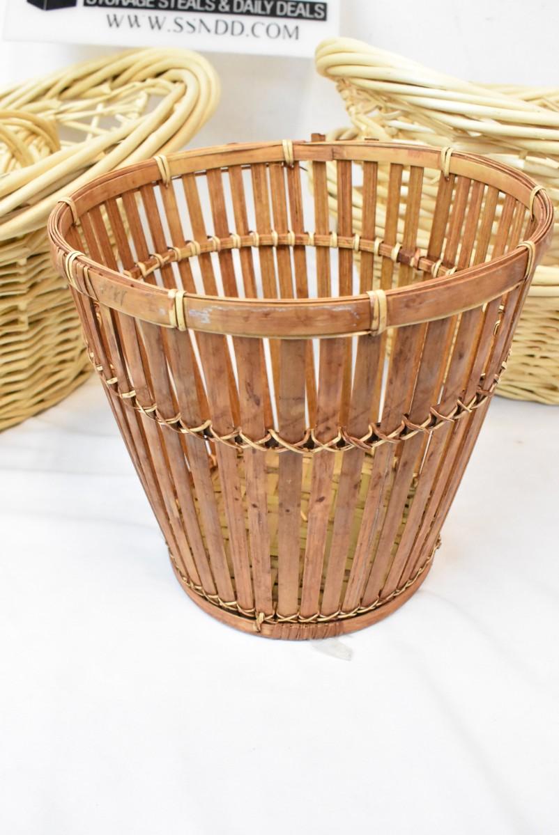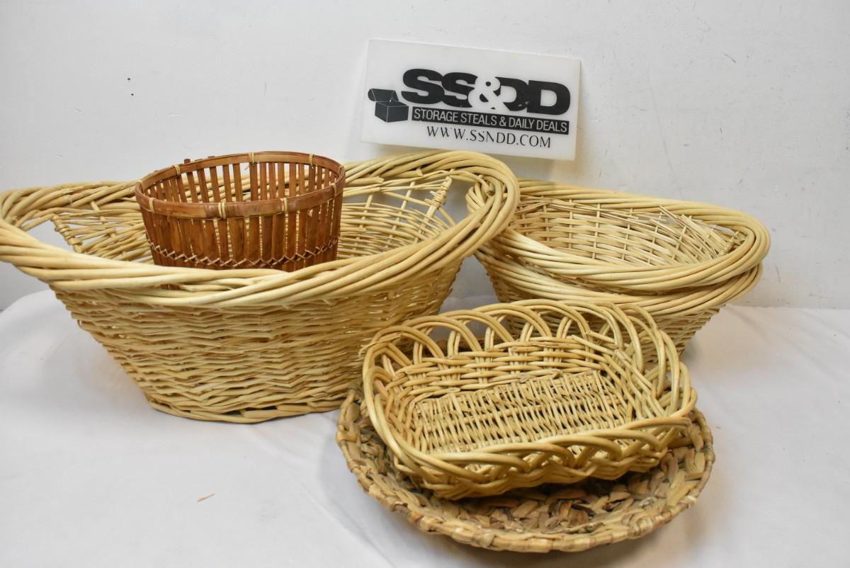 6 Wicker Baskets and Trays, Various Sizes, Some with Handles