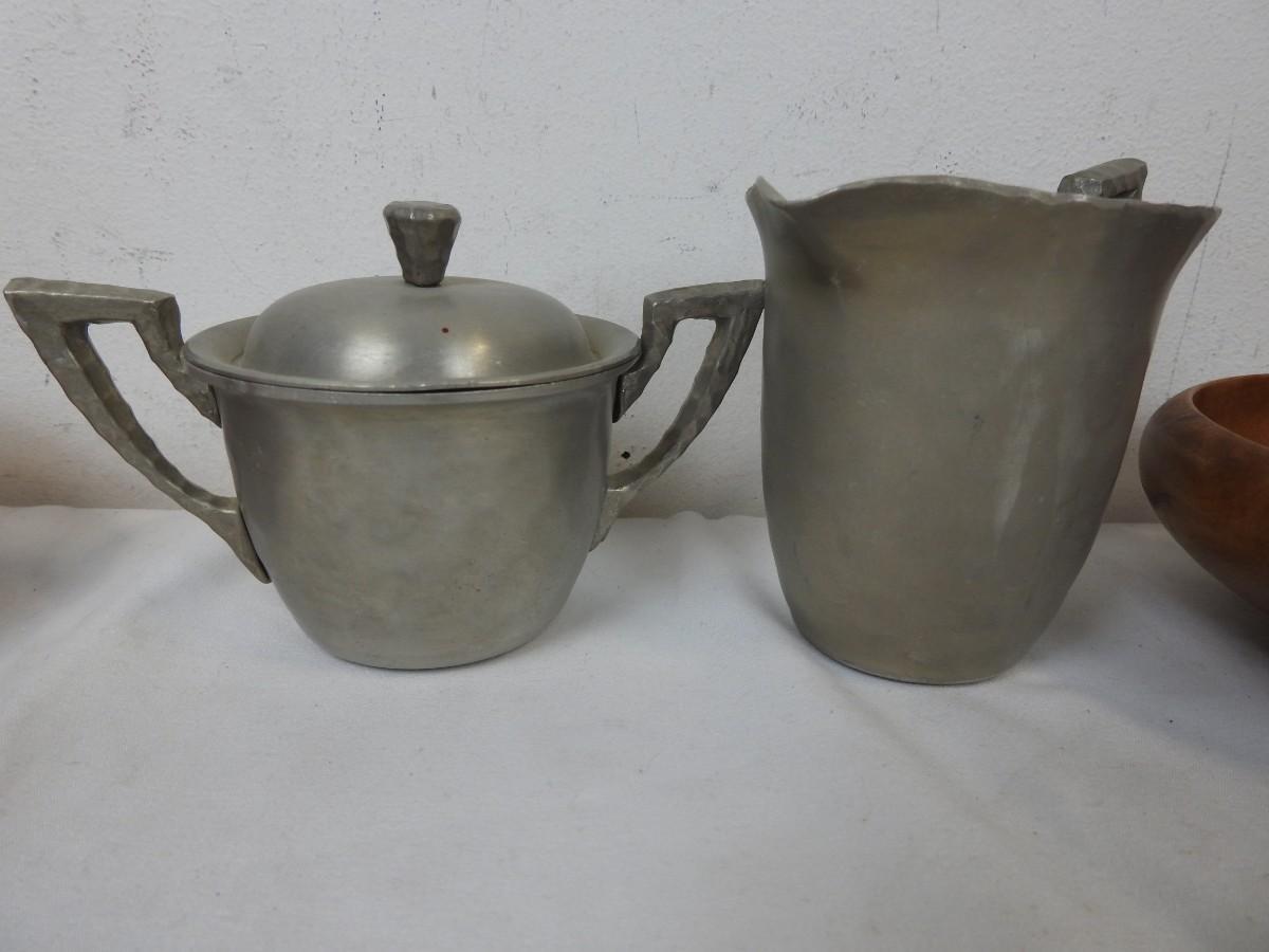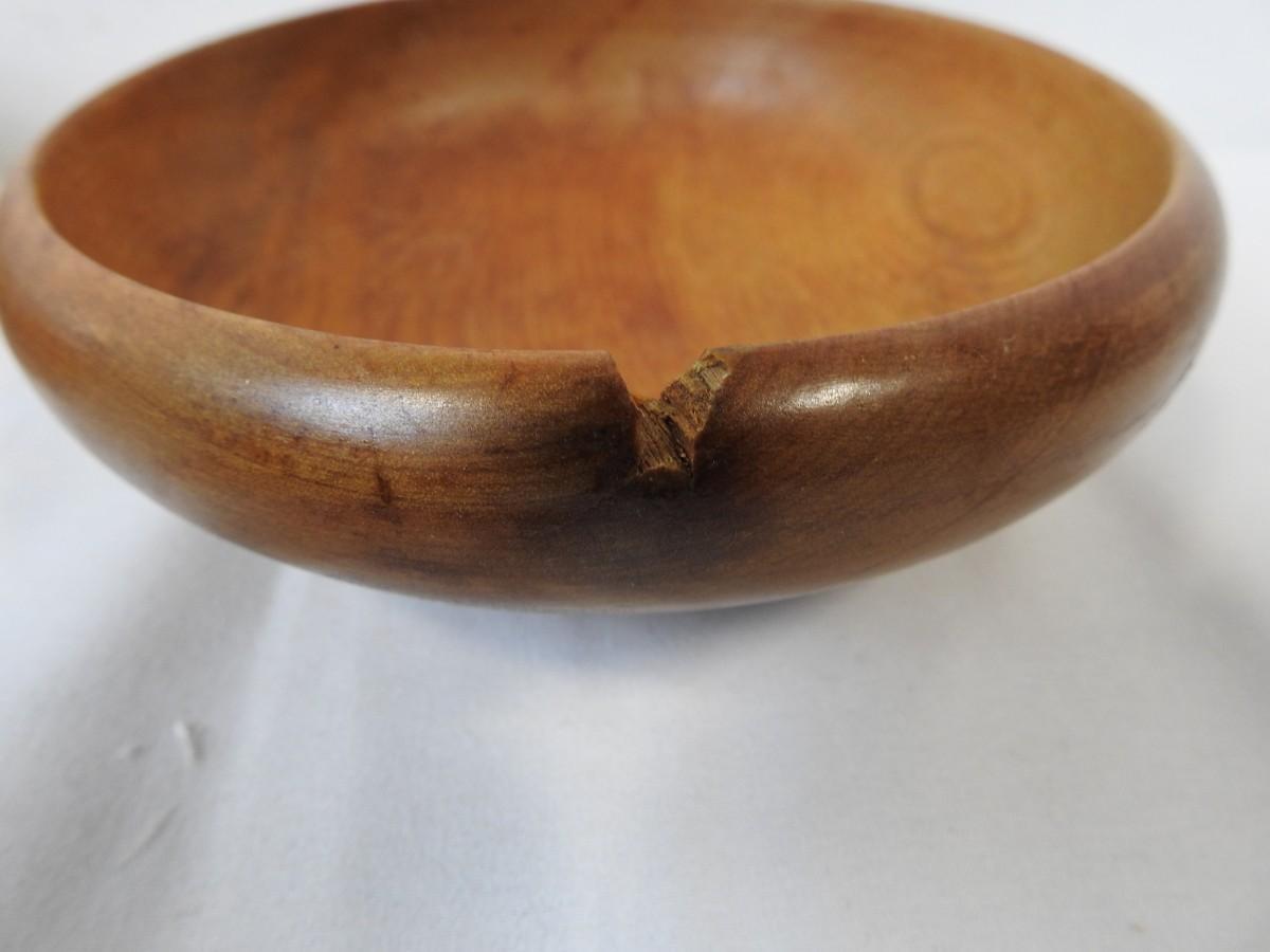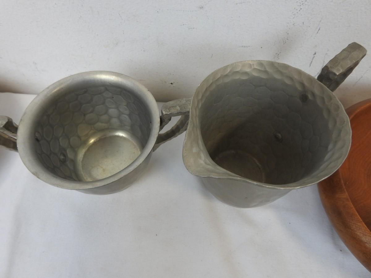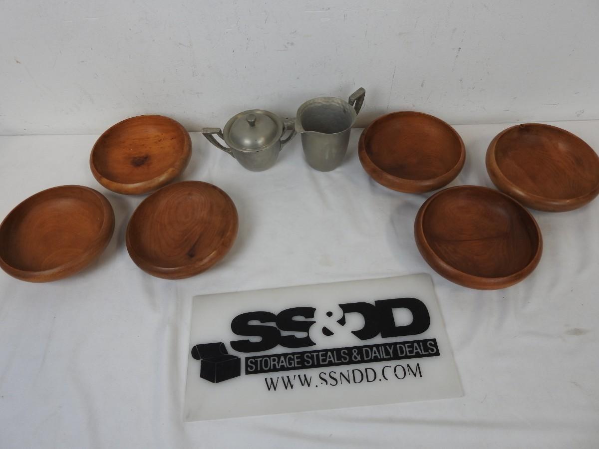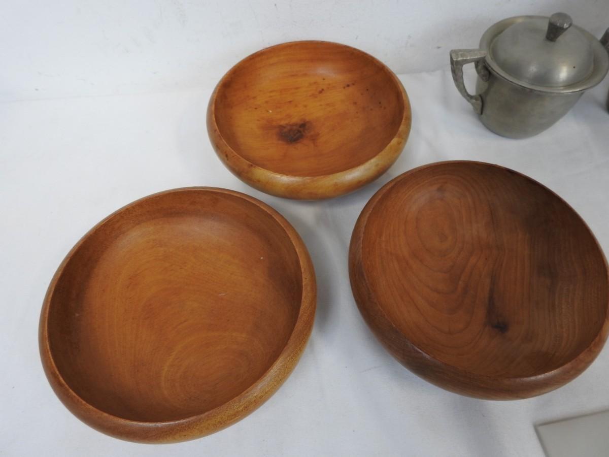 6 Wooden Bowls, 2 Pieces of Hammered Aluminum