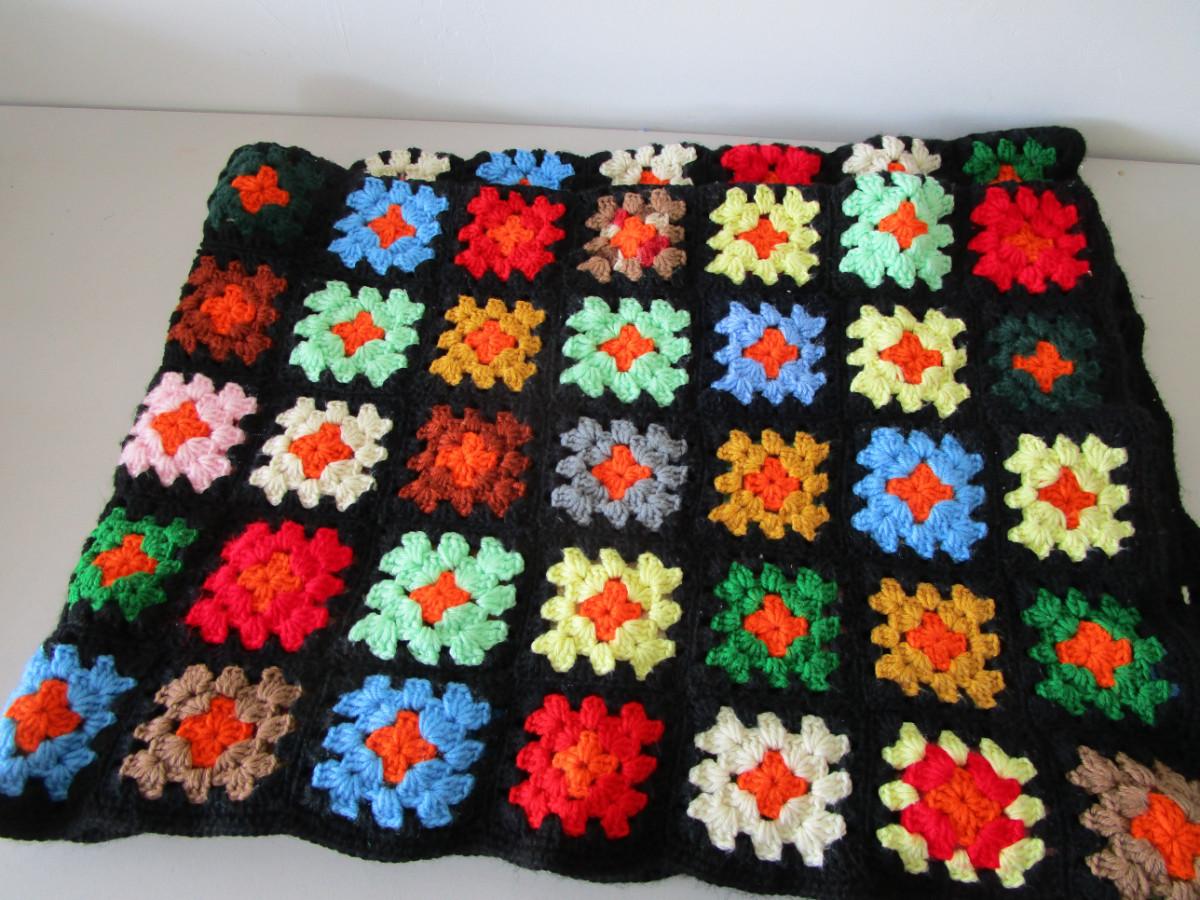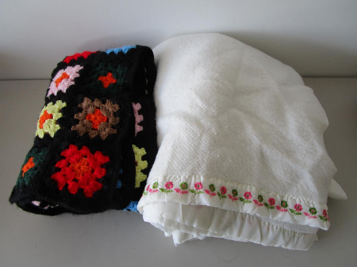 Homemade Afghan 48 " x 64" and White Blanket with embroidered flowers at the top 76" x 88"