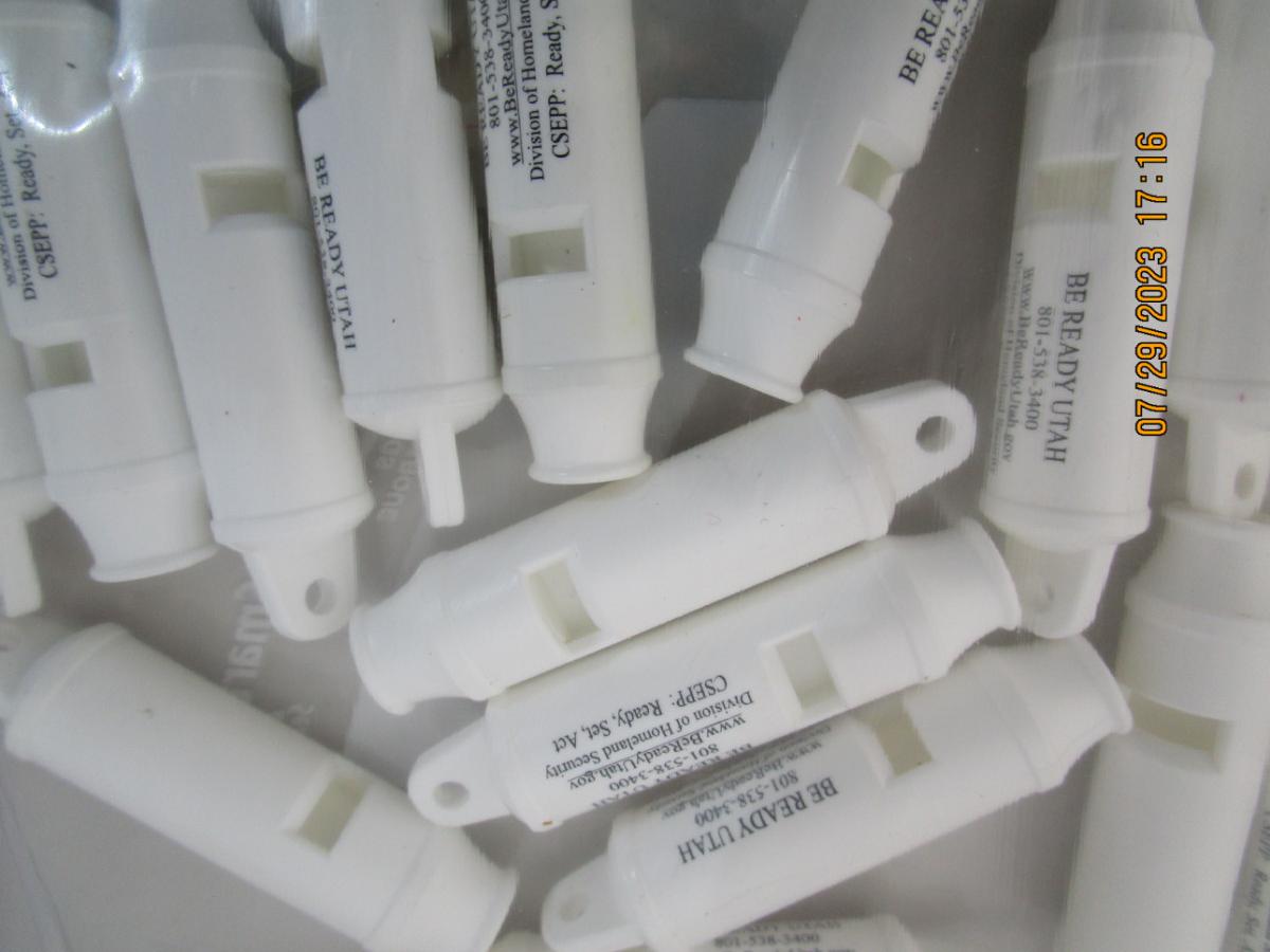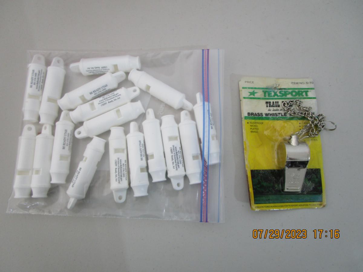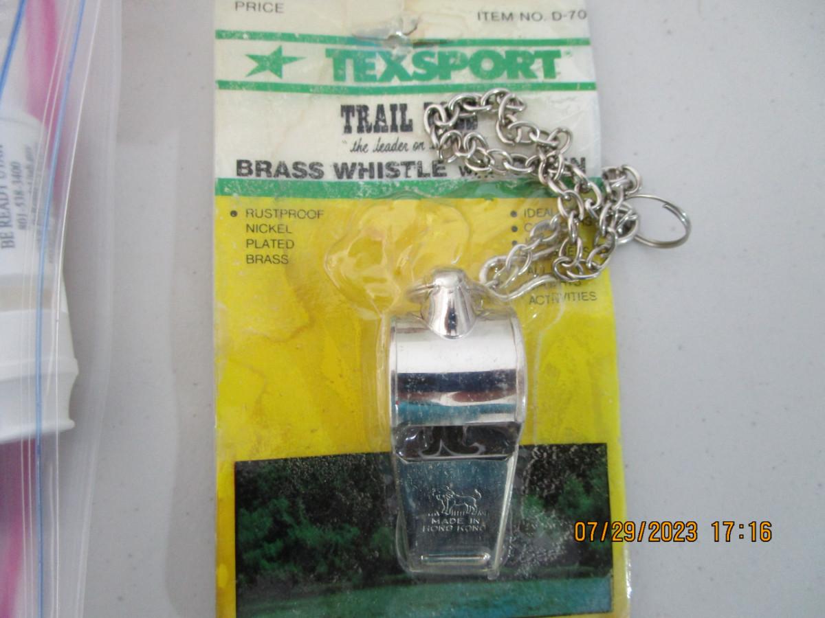 Texsport trainboss brass whistle with chain, and be prepared Utah whistles