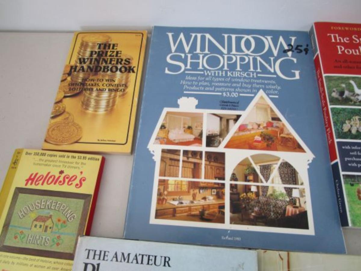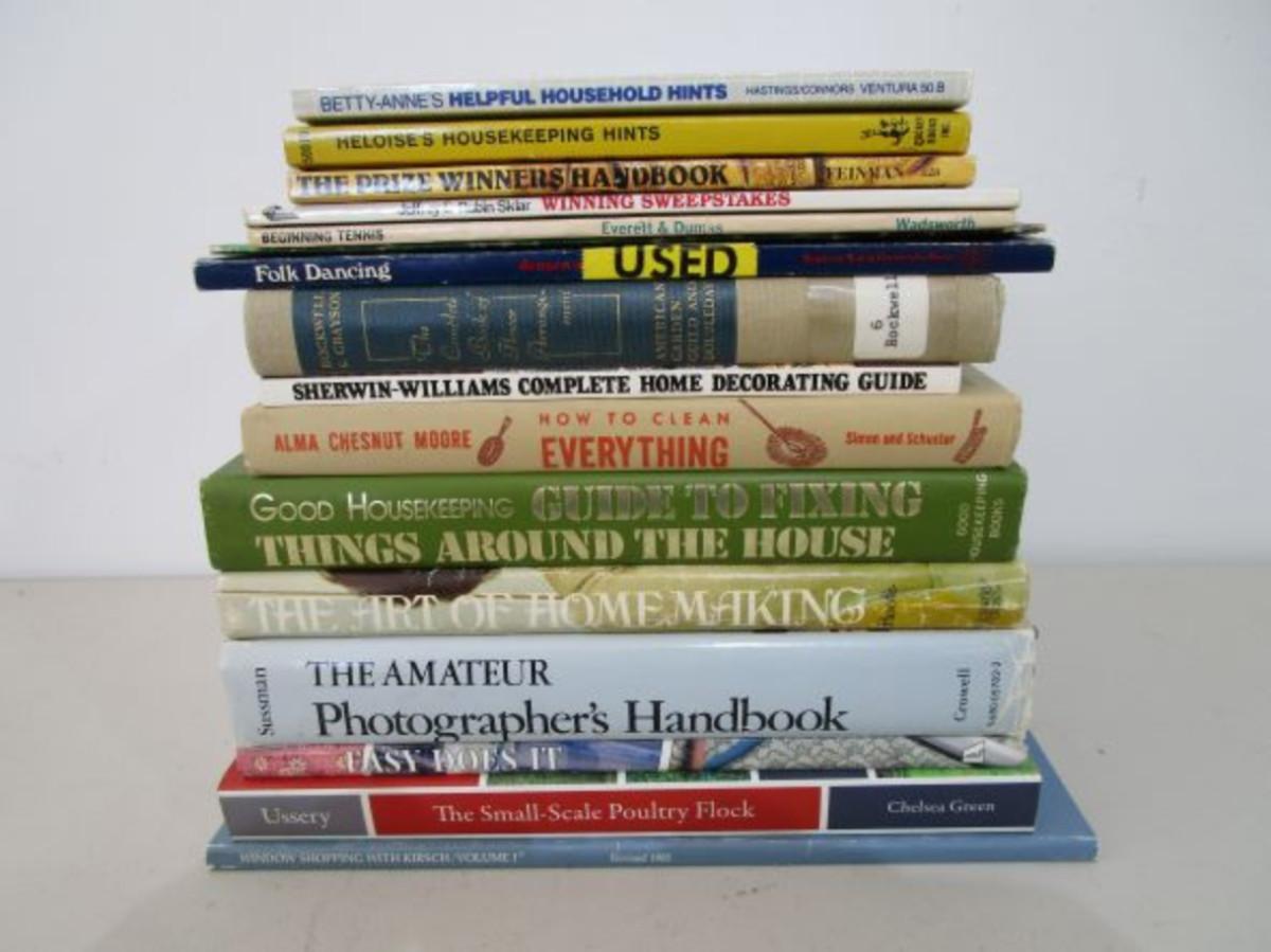 Betty-Ann's Helpful house of hints, Heloise's housekeeping hints, Prize winner's handbook, Winning sweepstakes, Beginning tennis, Folk dancing, Sherwin Williams complete decorating guide, The complete book of flower arraignment, How to clean everything, Good Housekeeping Guide to fixing things around the house, Art of homemaking, Amateur photographer's handbook, Easy does it- creative decor and so much more, The small scale poultry flock, Window shopping with Kirsch