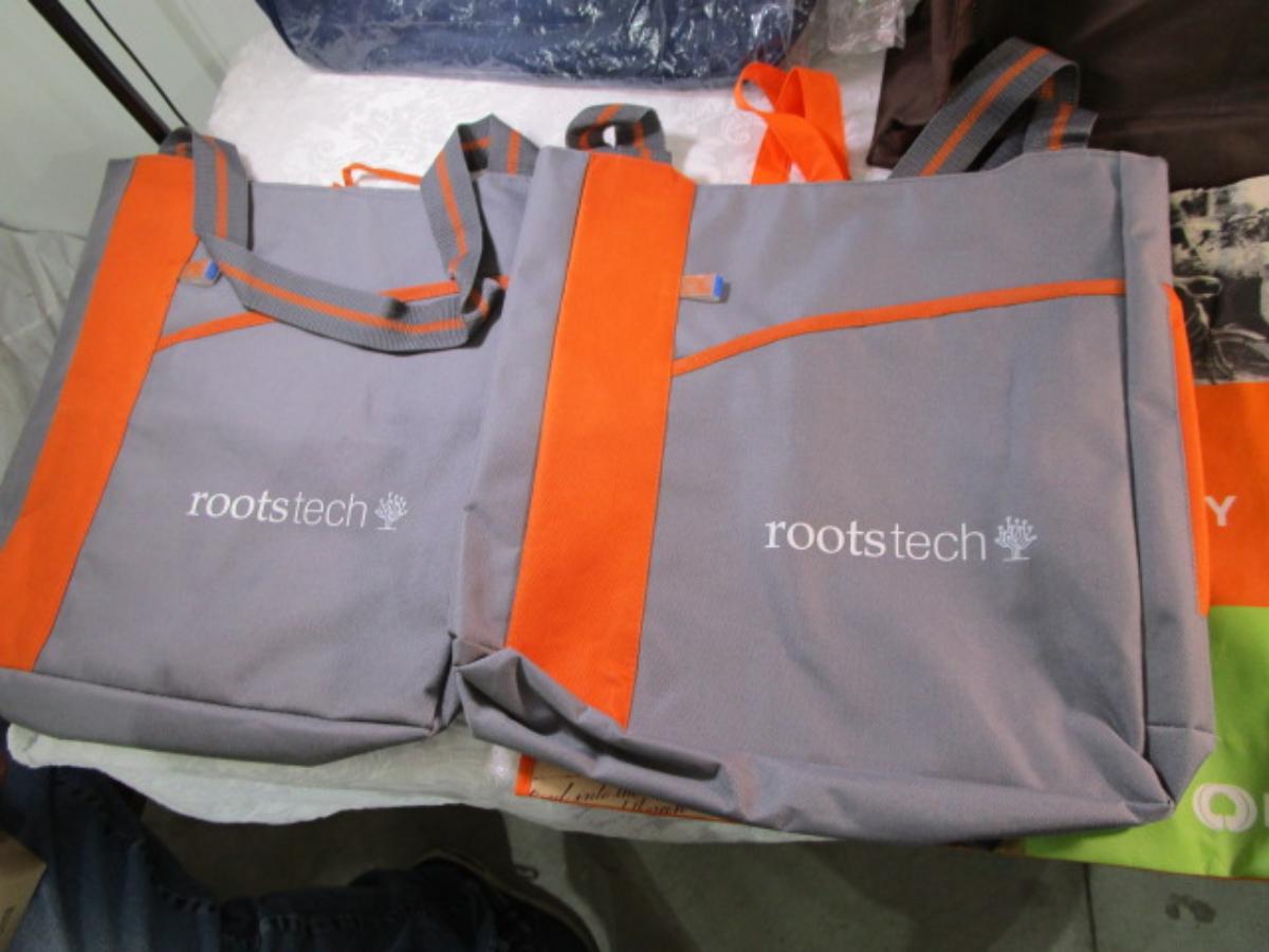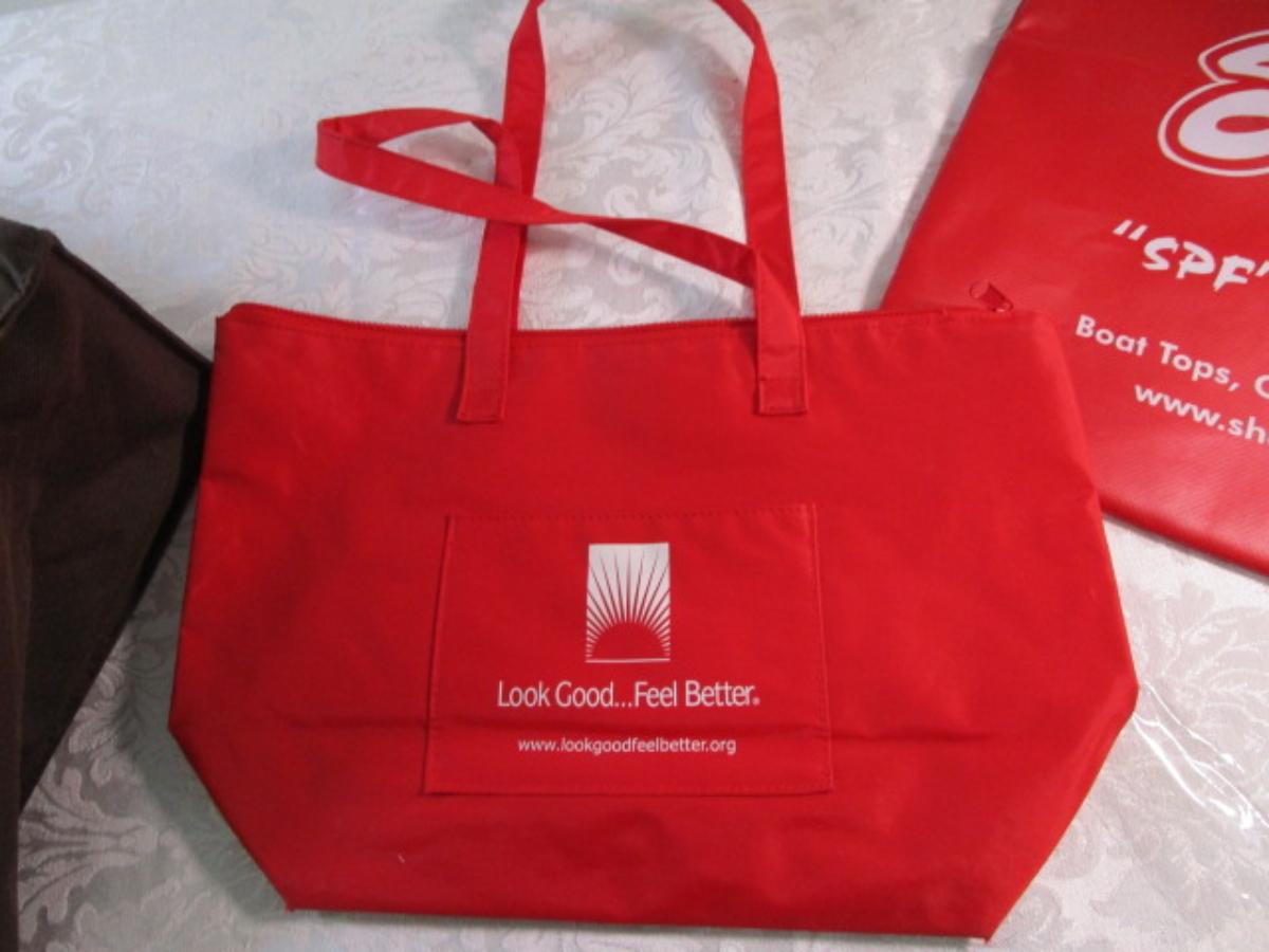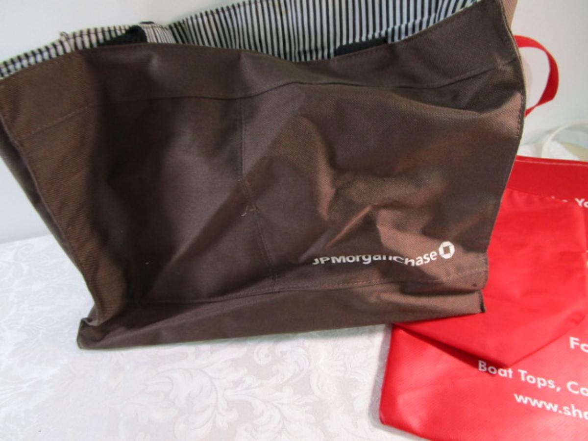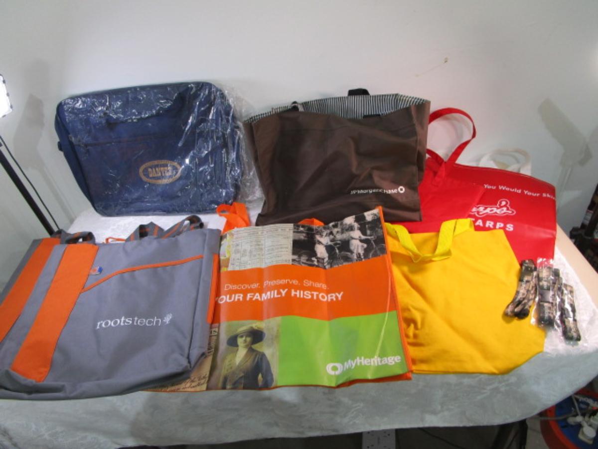 7 tote bags 1 briefcase type bag & 3 lanyards