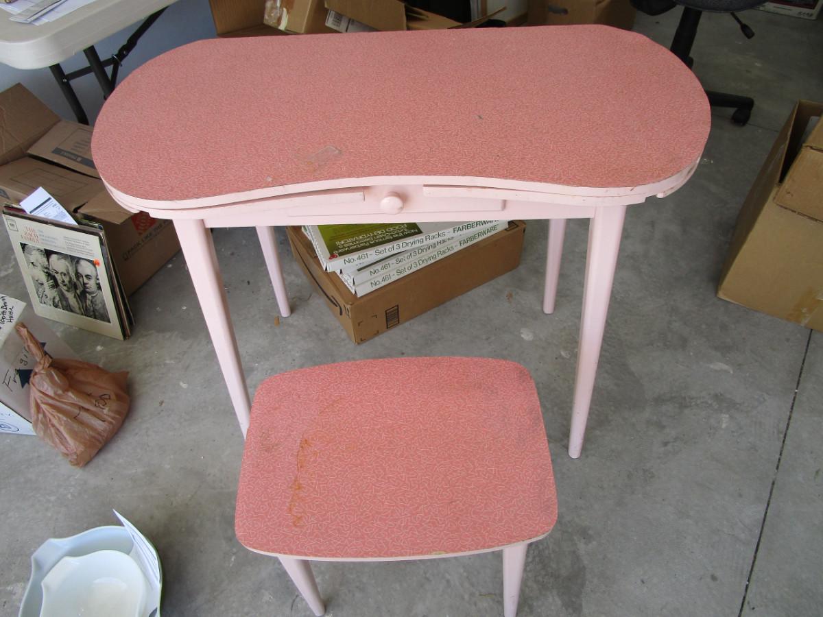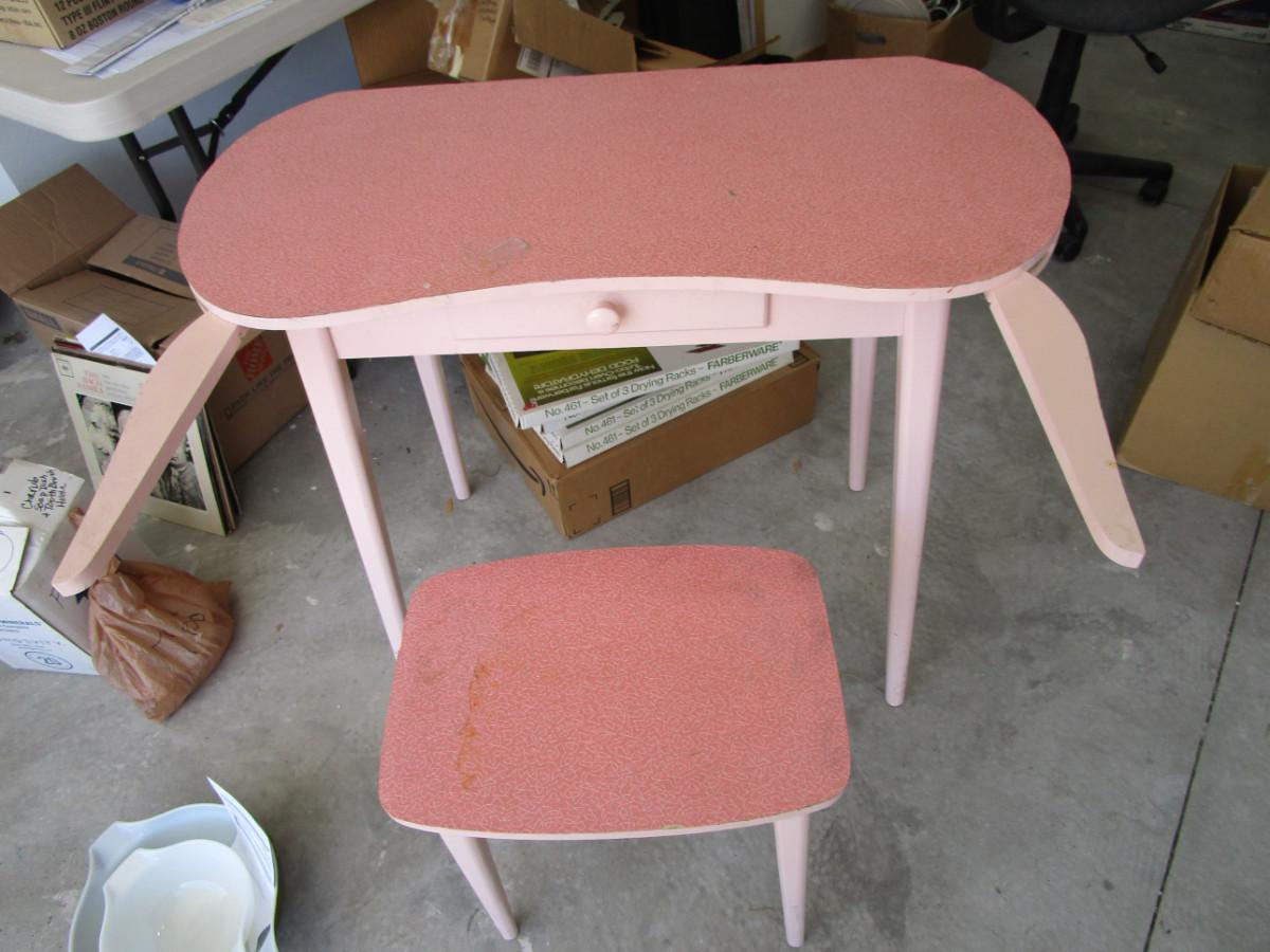 Dressing table 35.5" x 17" x 30", stool 17"x12"x18"