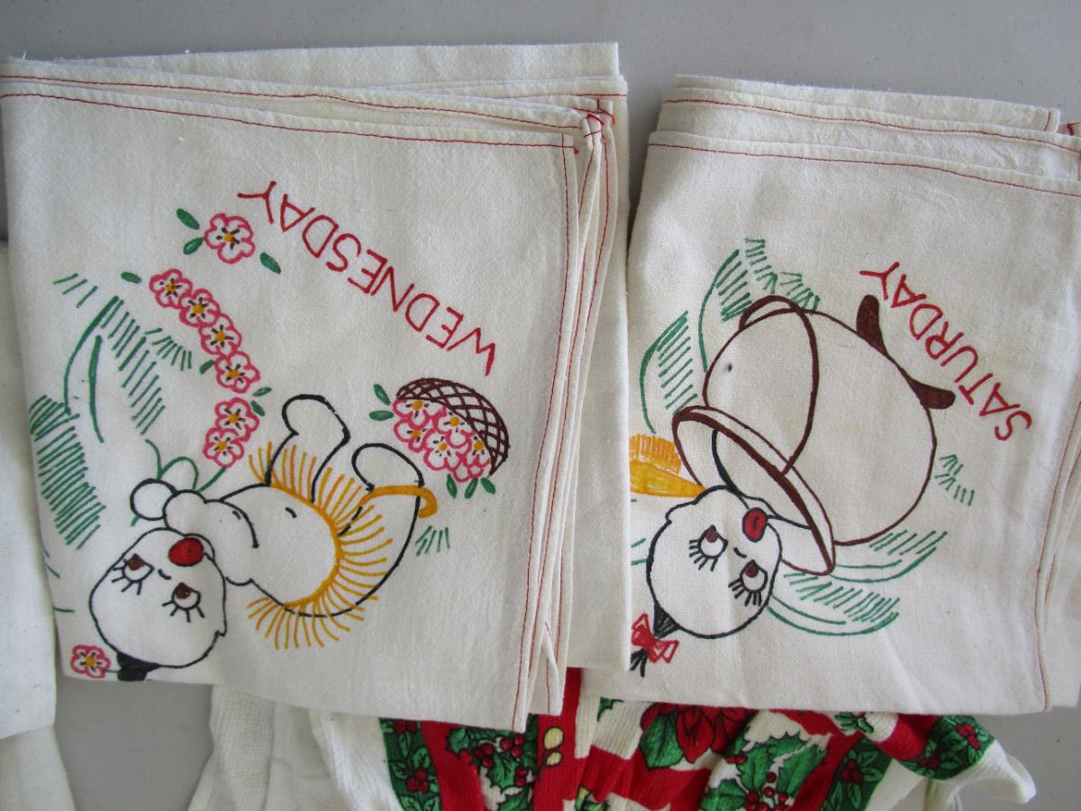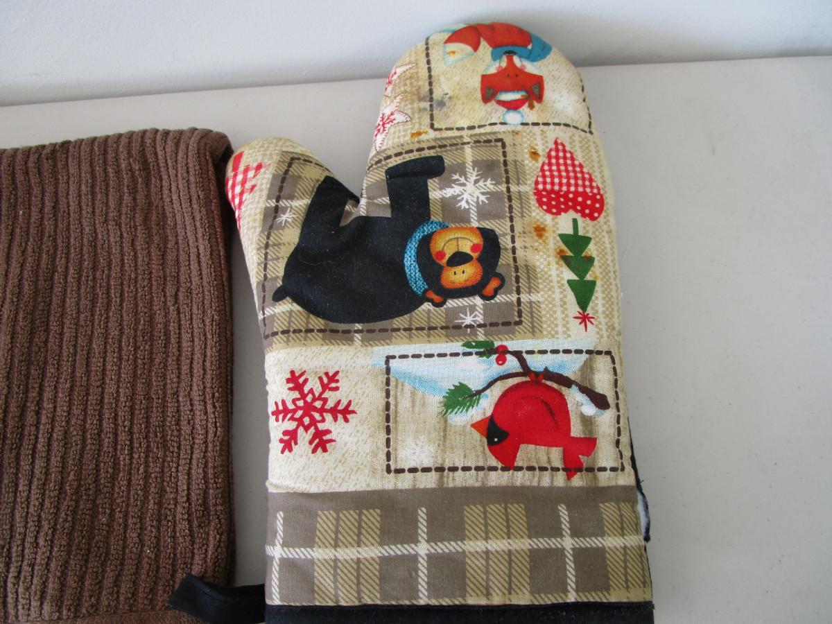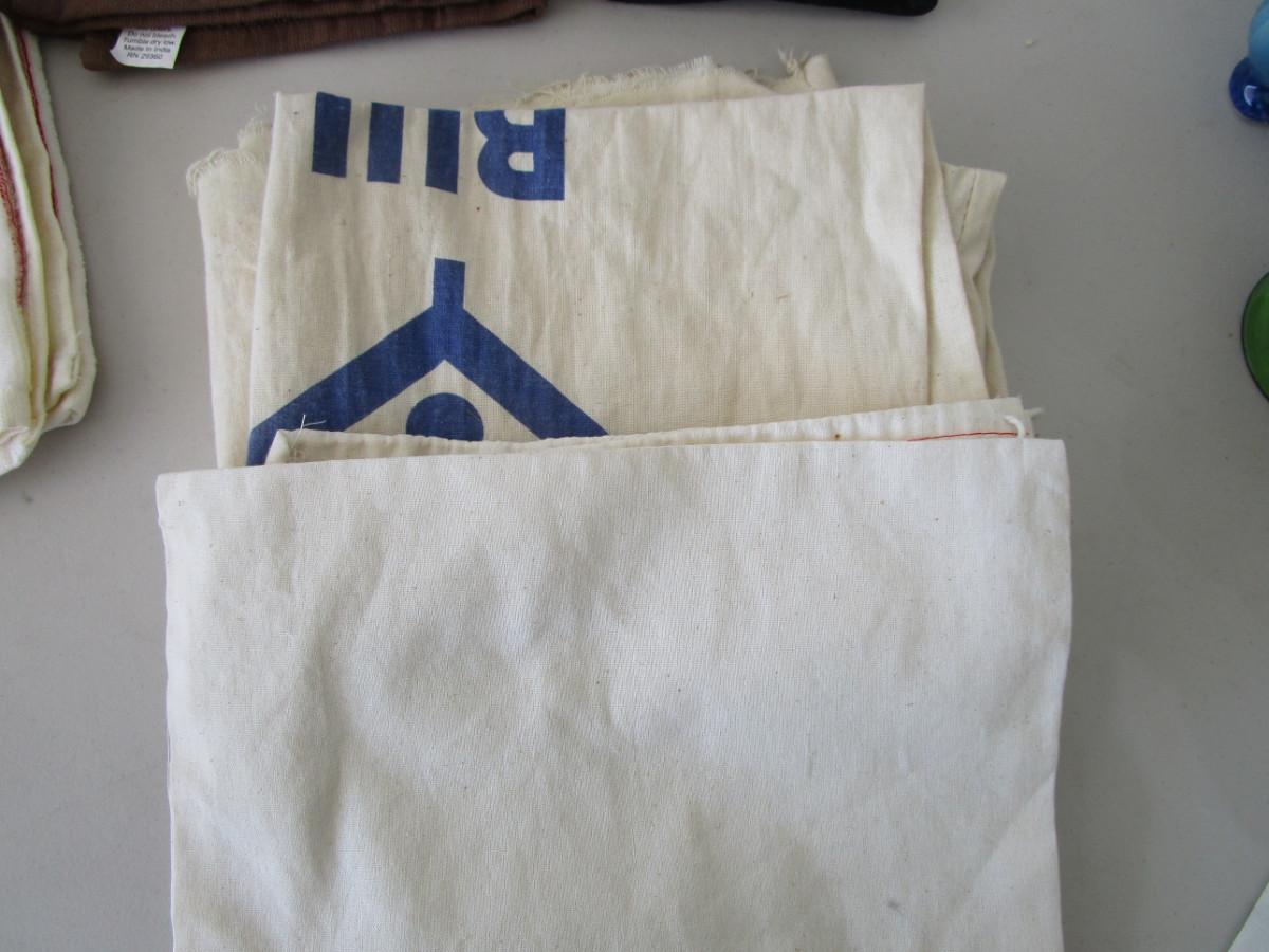 new and vintage dish towels, oven mitt, bag 12" x 15.5", bag 19" x 31"