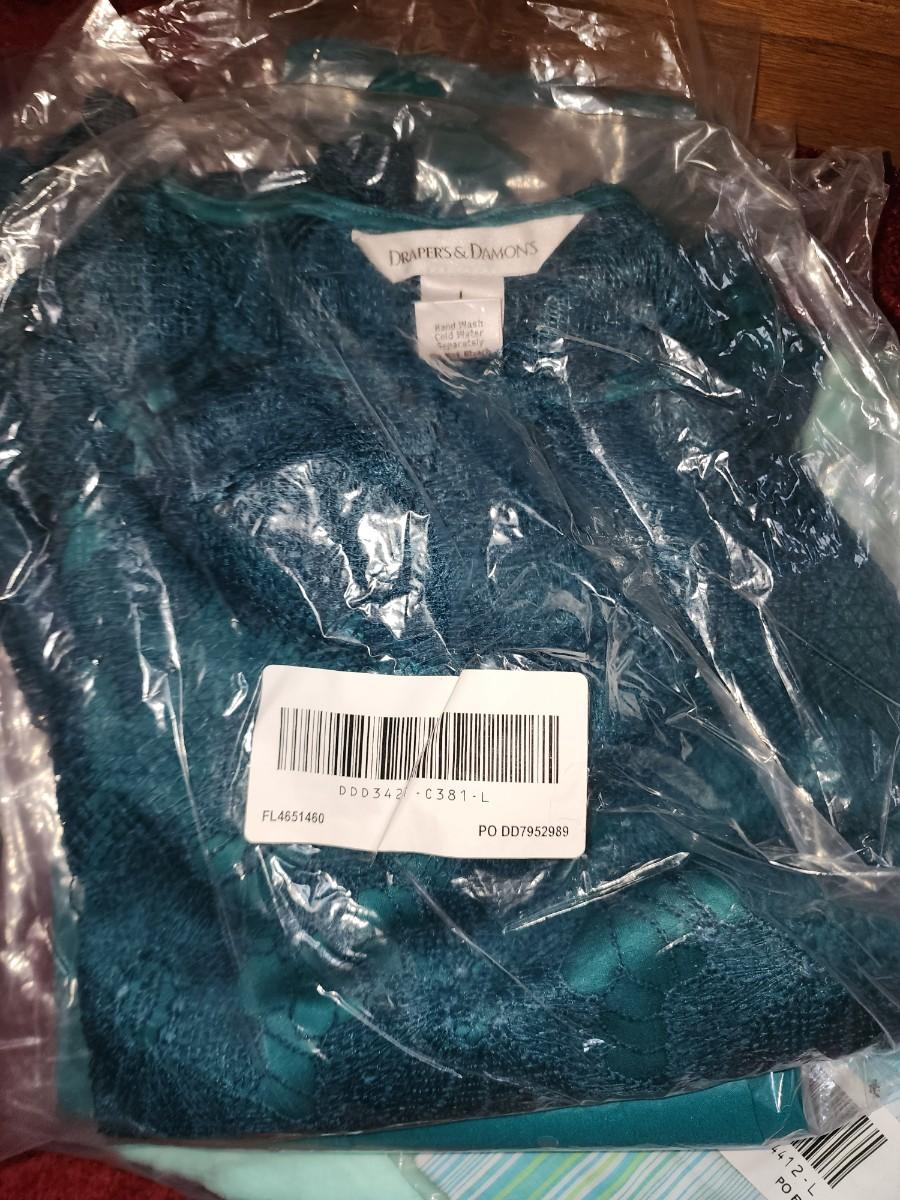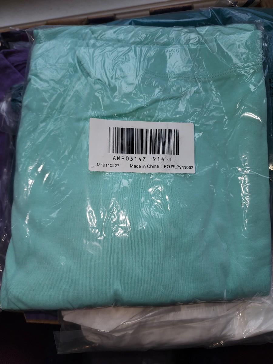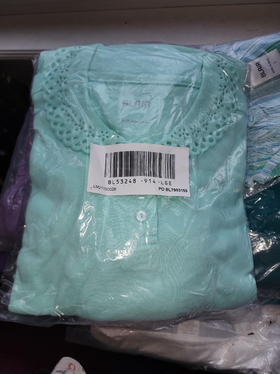 All size large. Purple and teal colors. Several tops. Some slacks and one skirt. Couple sweaters. All would be great mix and match