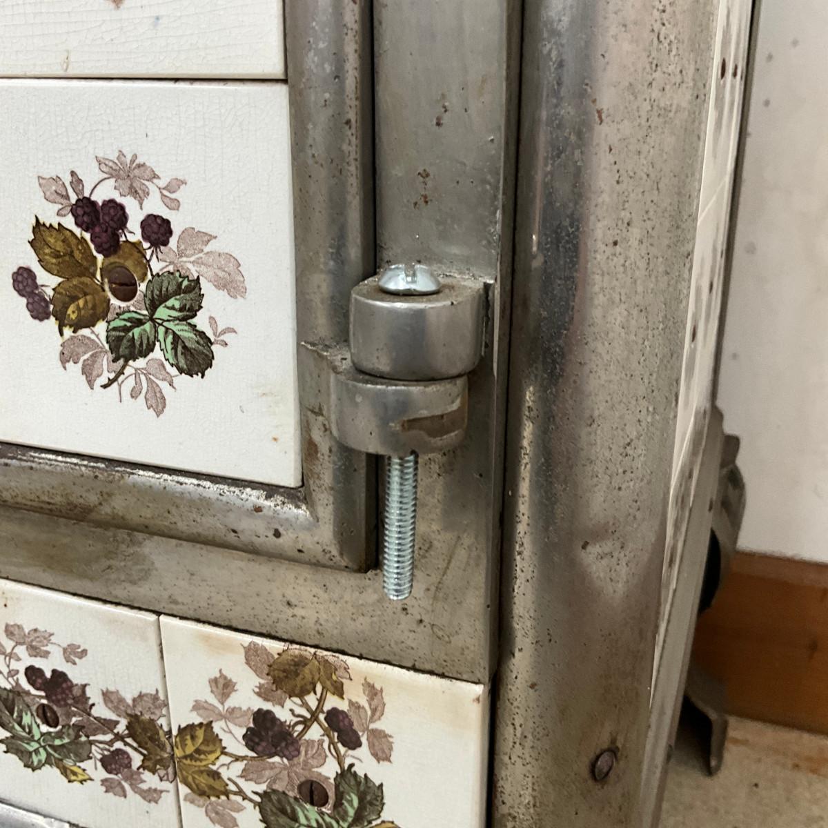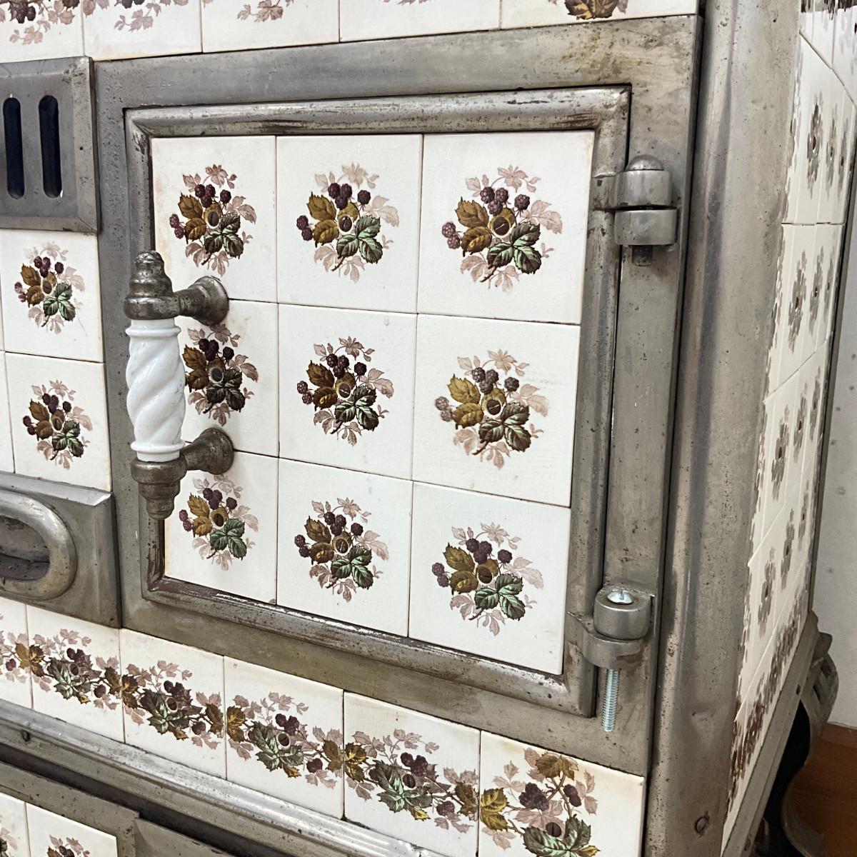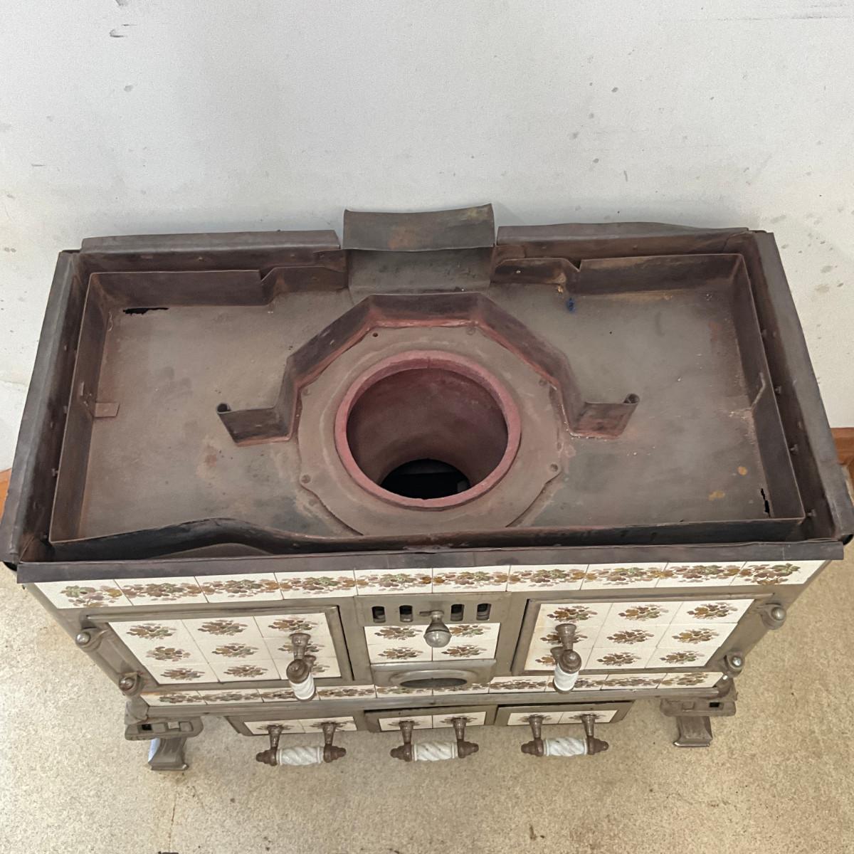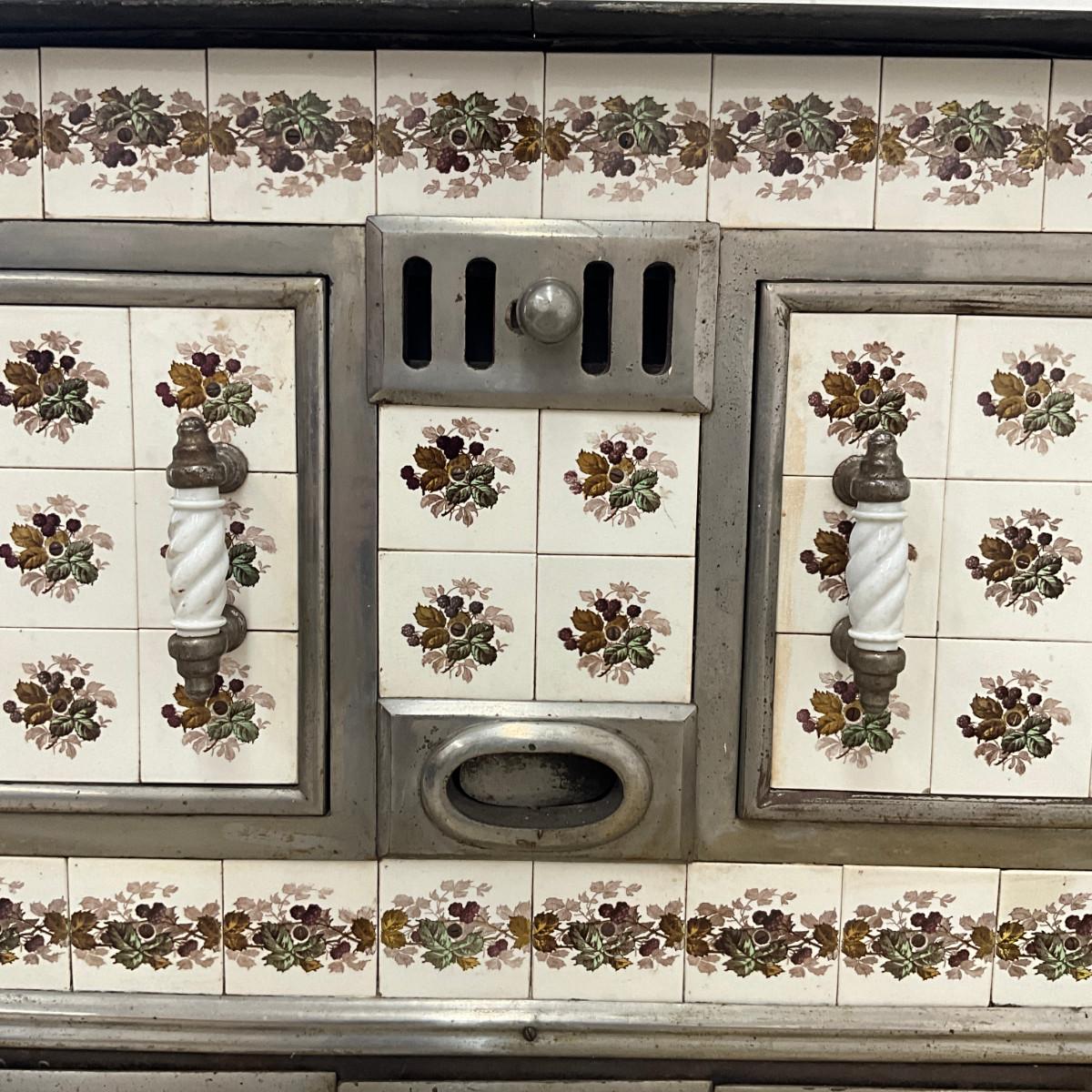 803 Vintage Chrome & French Porcelain Inset Tile Wood Stove