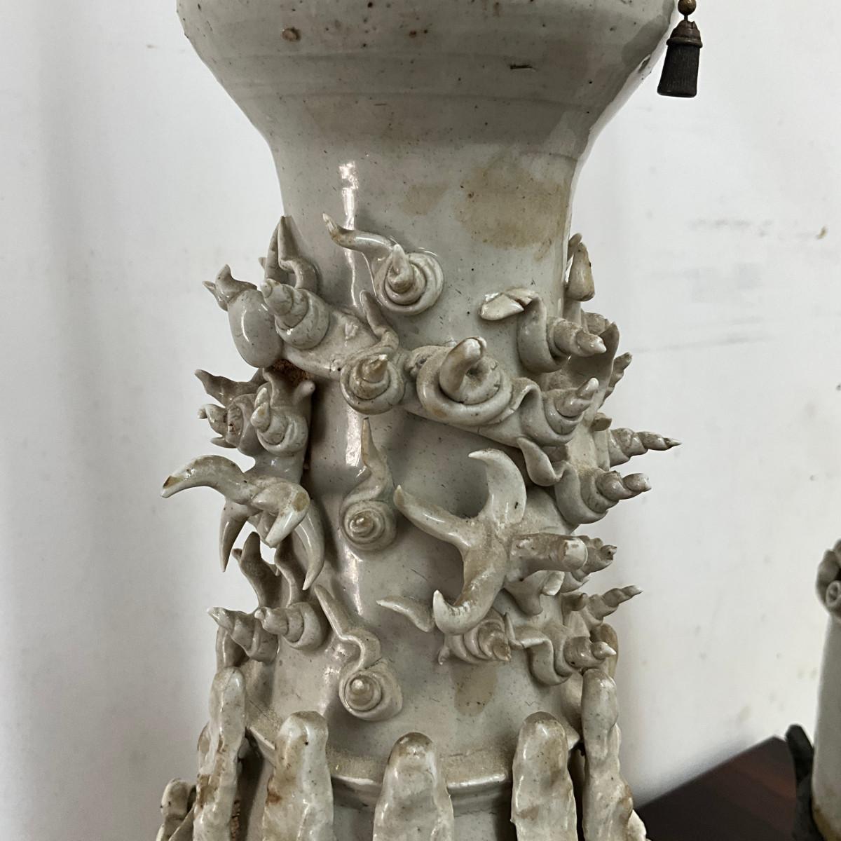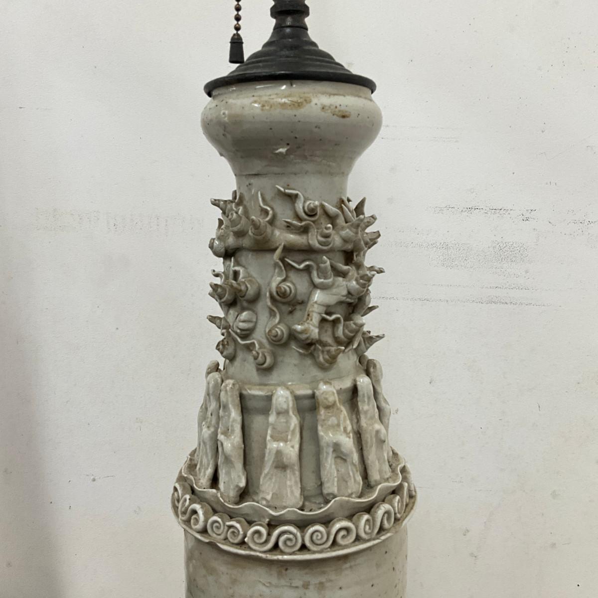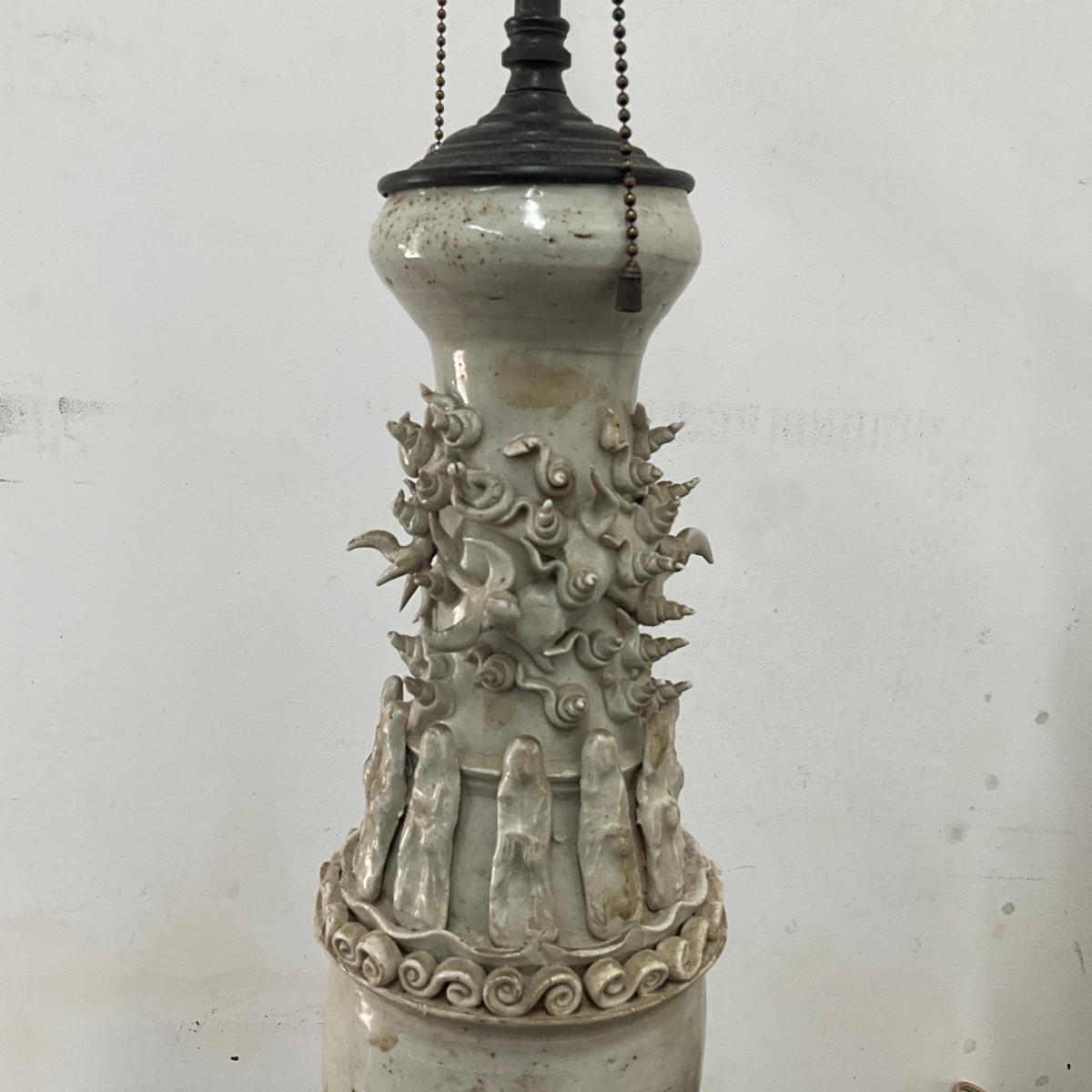 809 Antique Funerary Stoneware & Wrought Iron Table Lamps