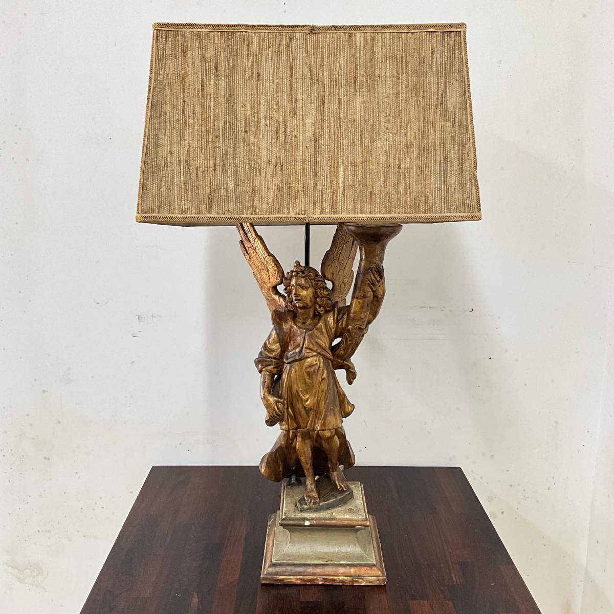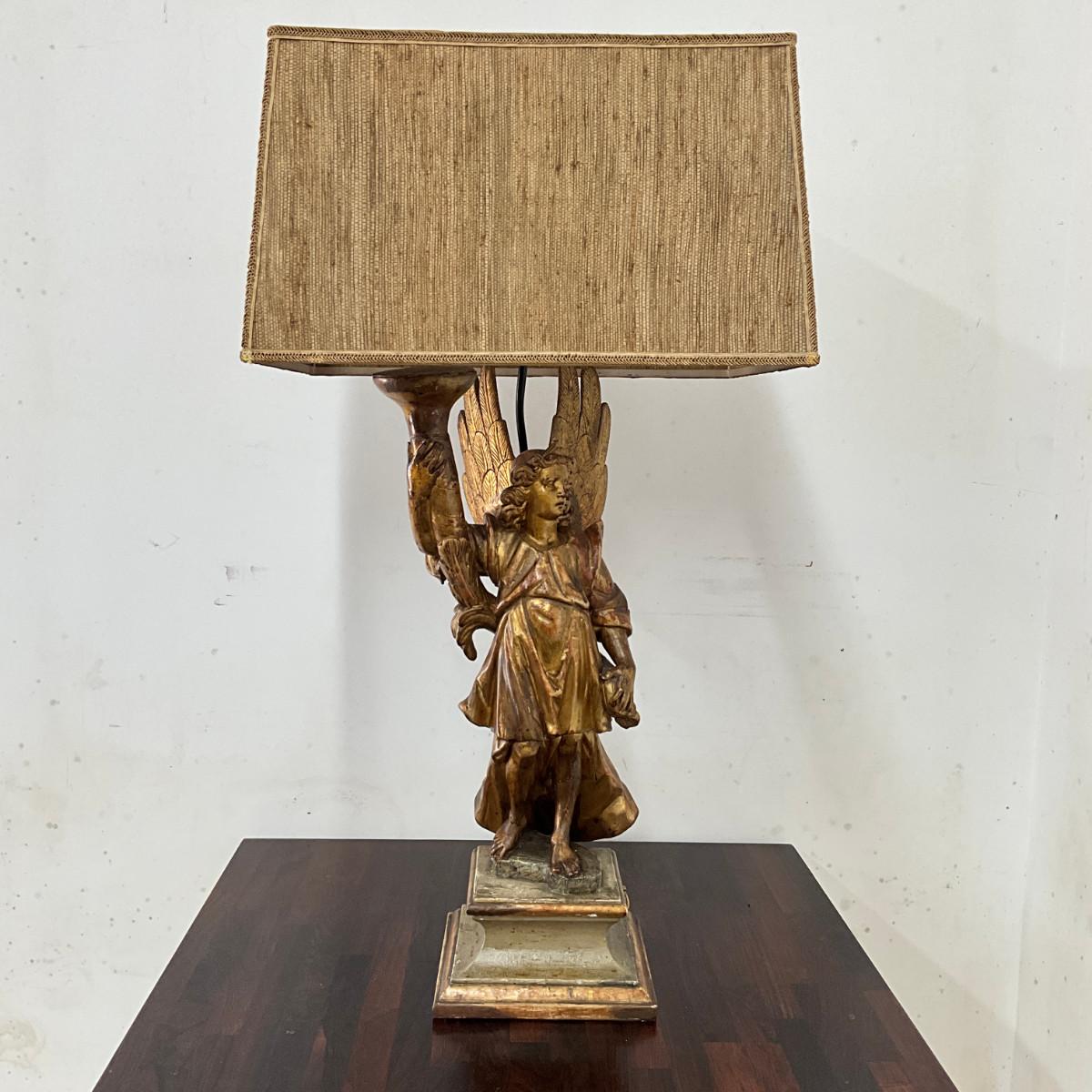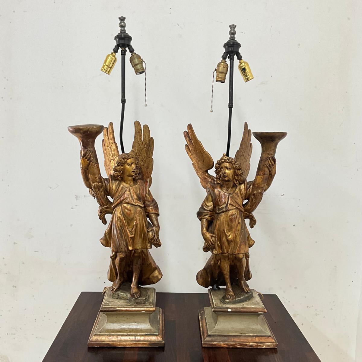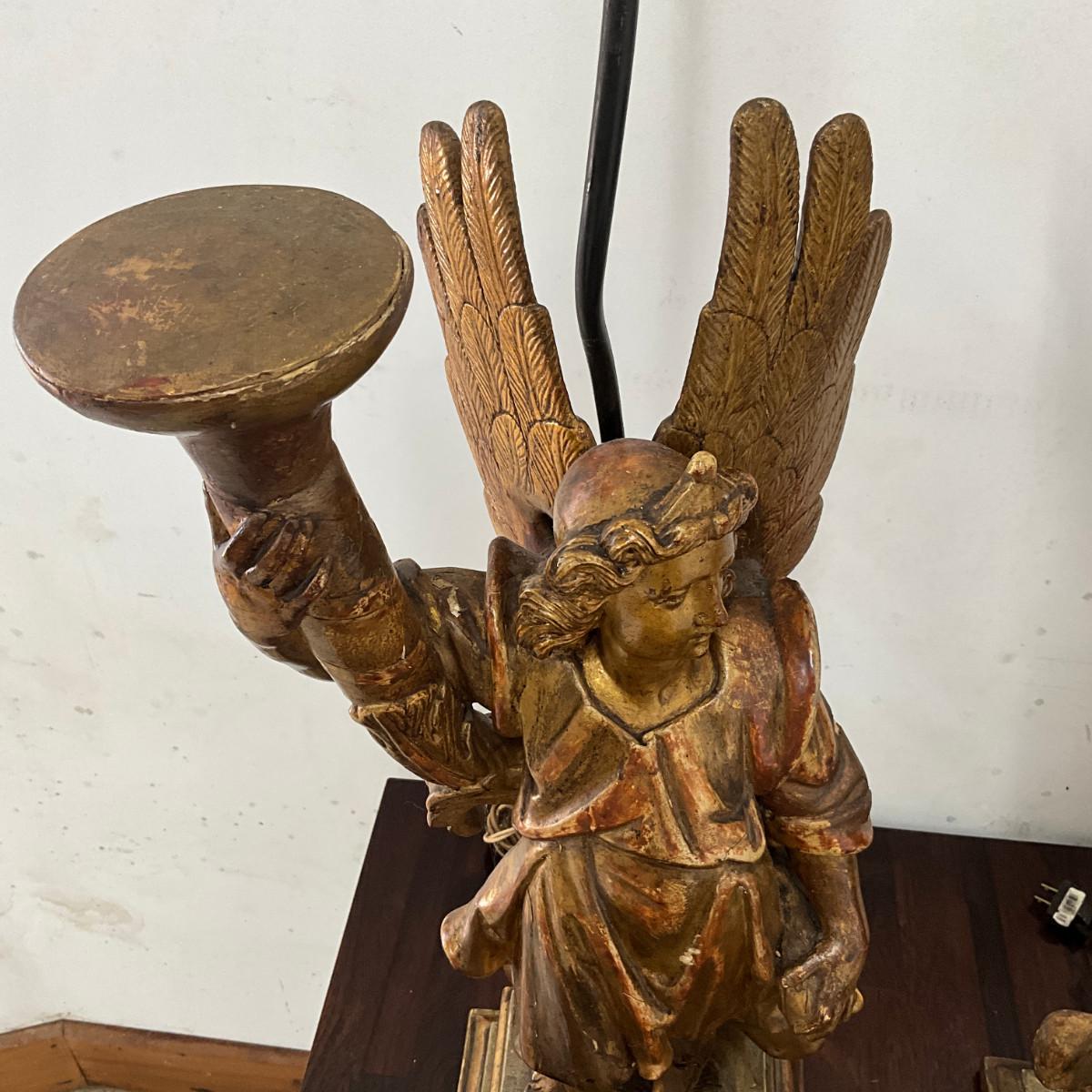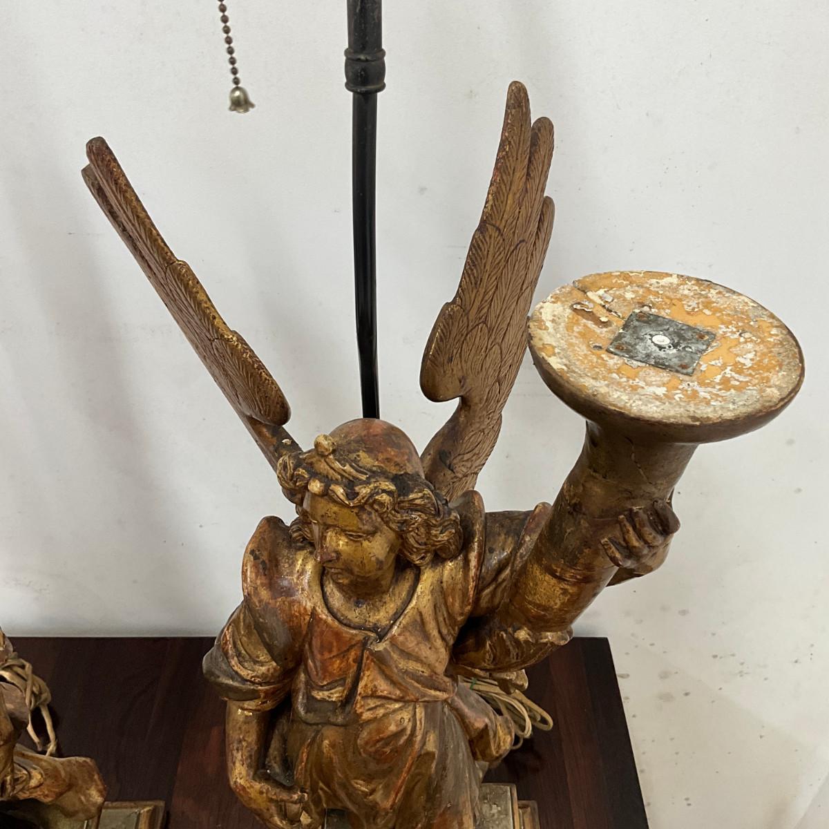 810 18th Century Italian Gold Gilt Carved Wooden Angel Lamps