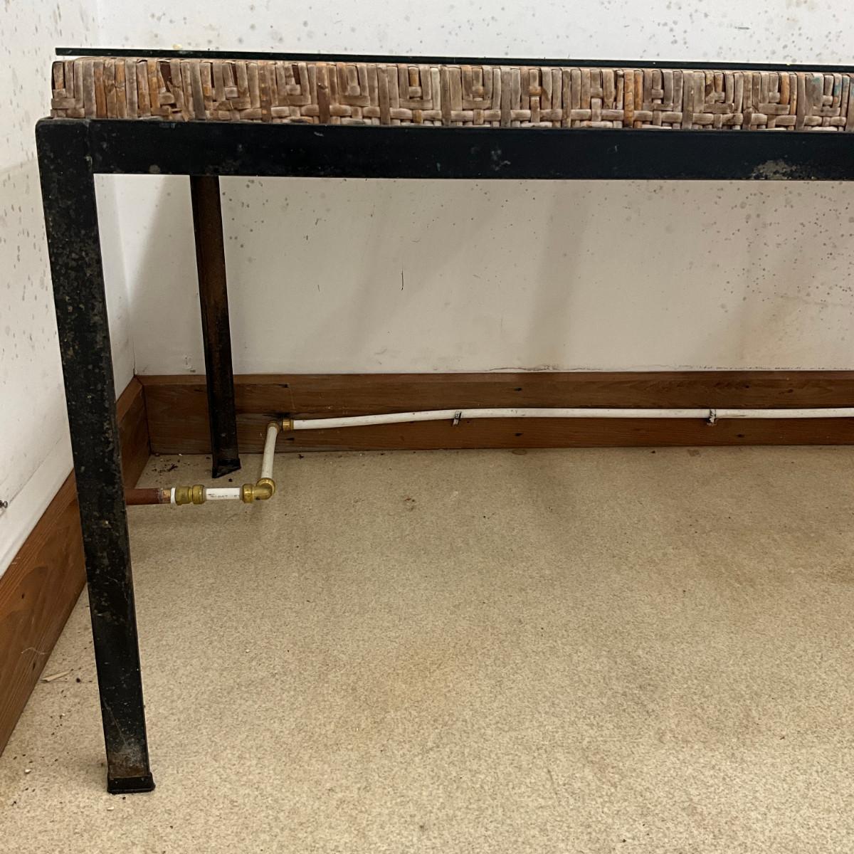 816 Mid Century Iron and Cane Dining Table By Danny Ho Fong