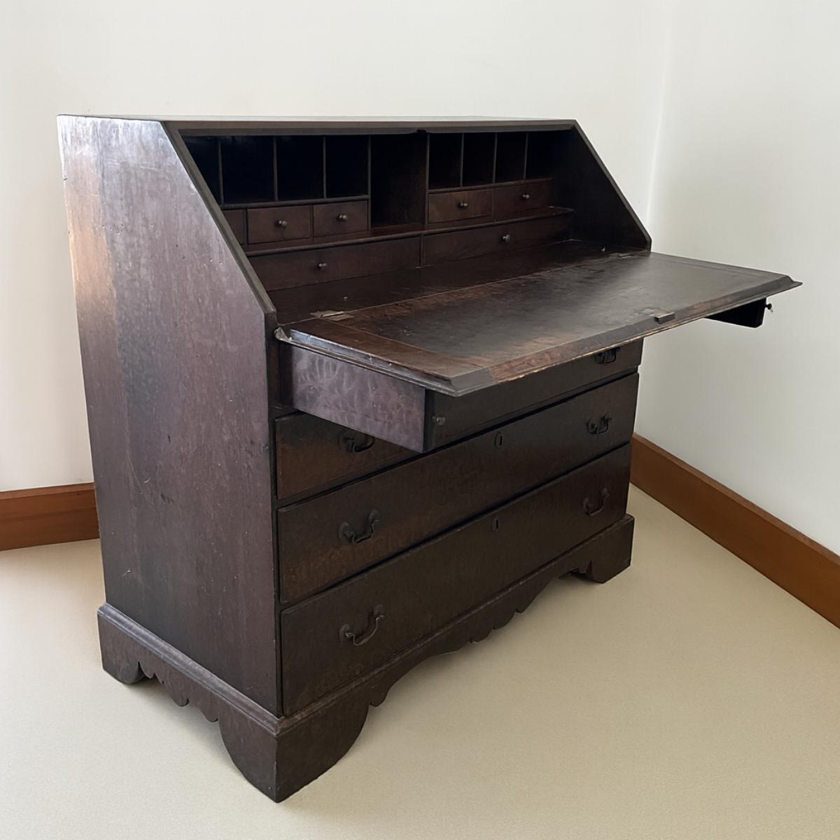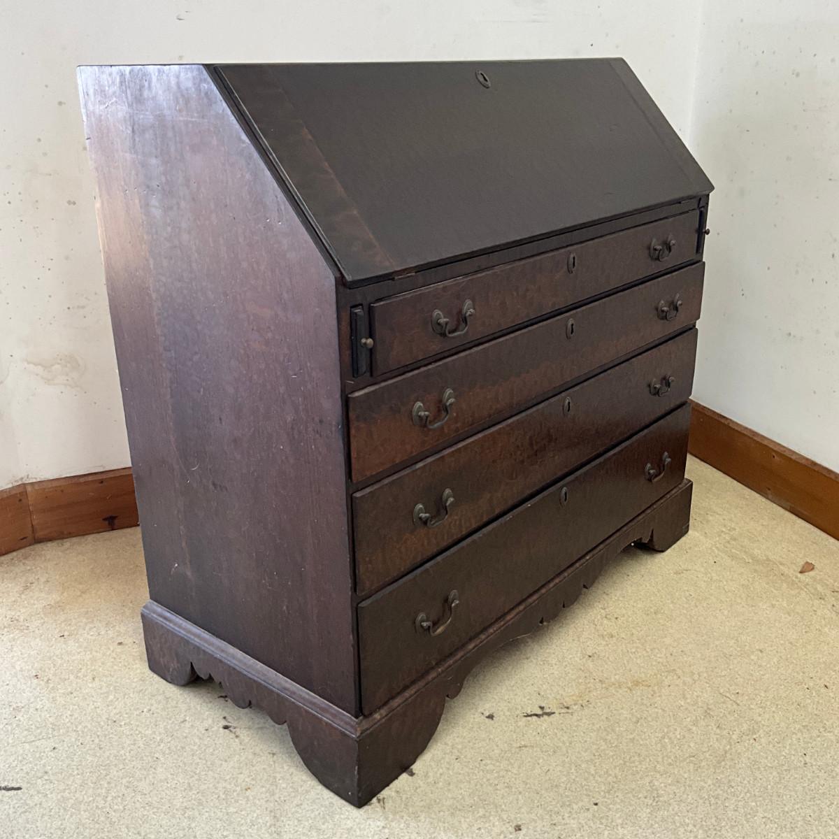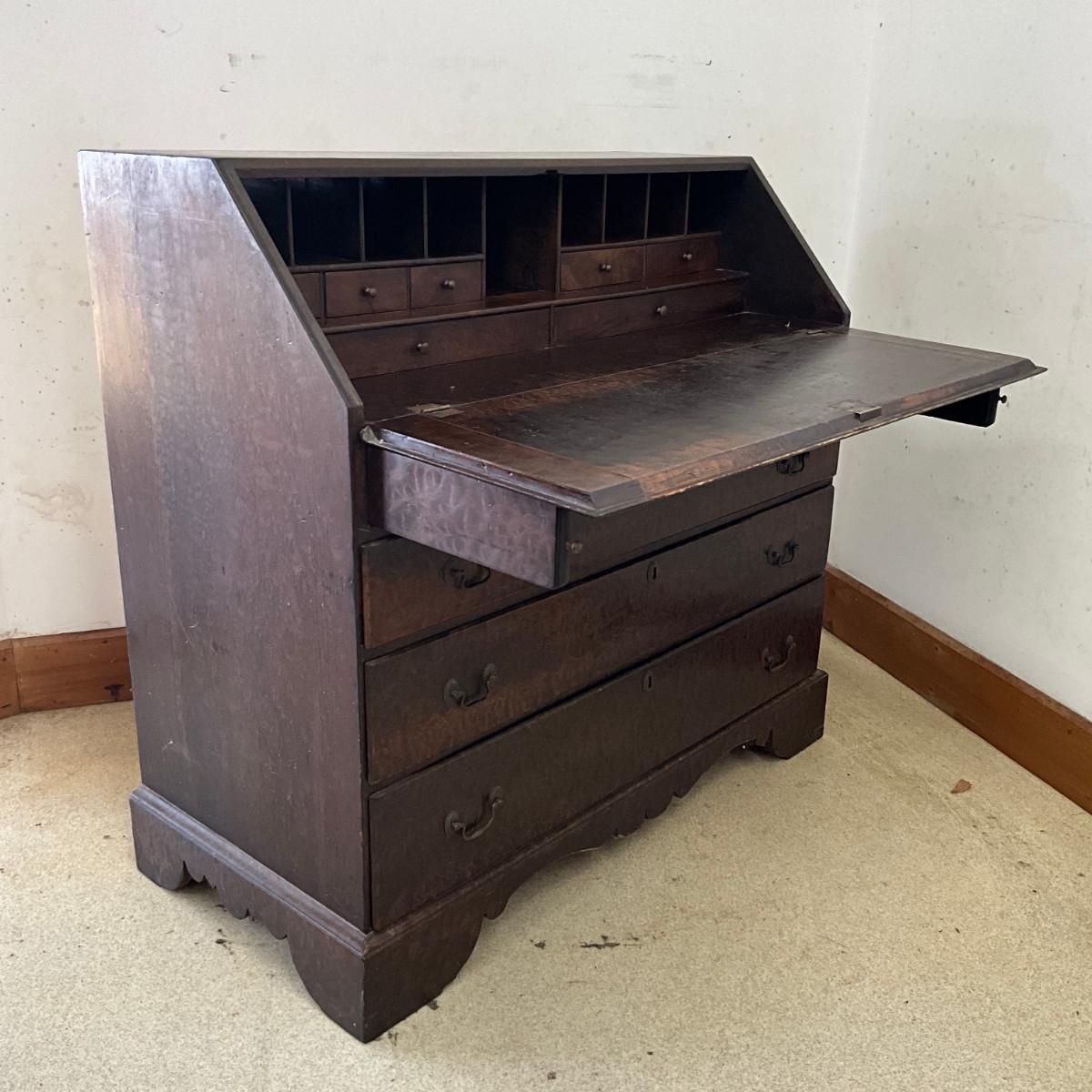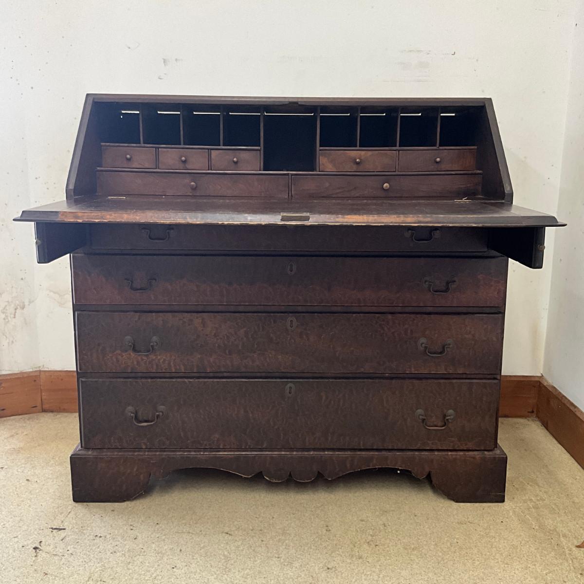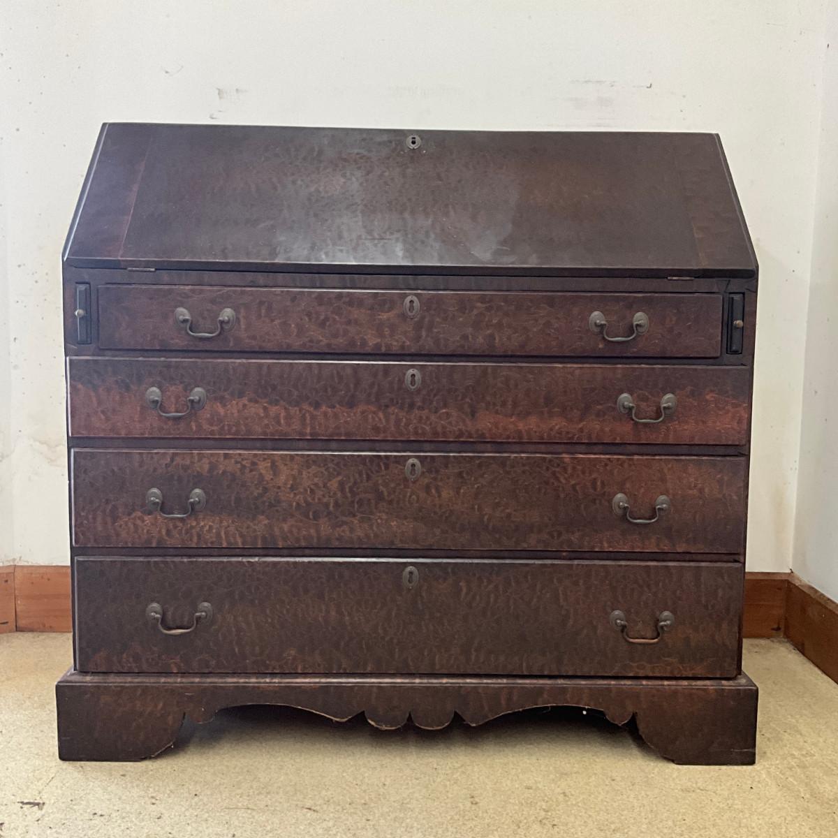 818 Antique Late 19c English Burled Poplar Secretary Desk