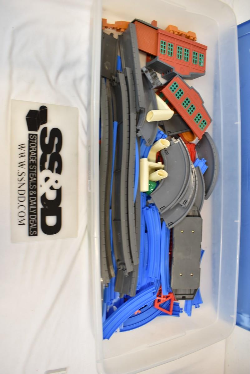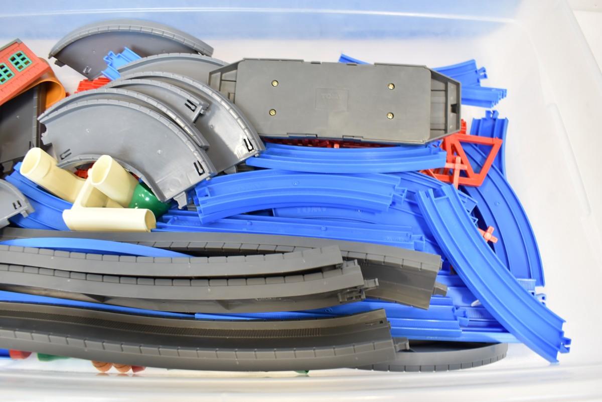 87 Piece Tomy Train Set: Track Pieces, Trees, Buildings, Signs and More
