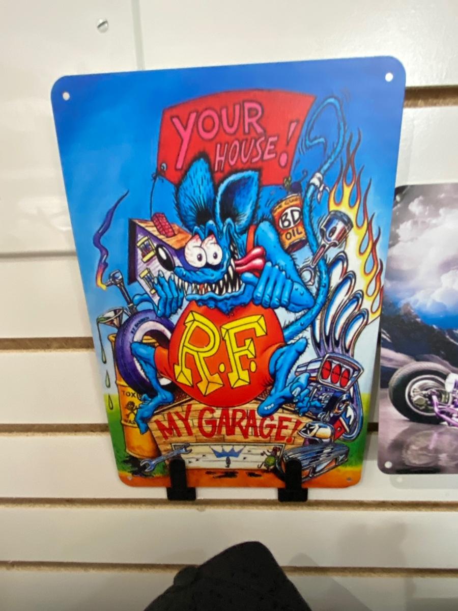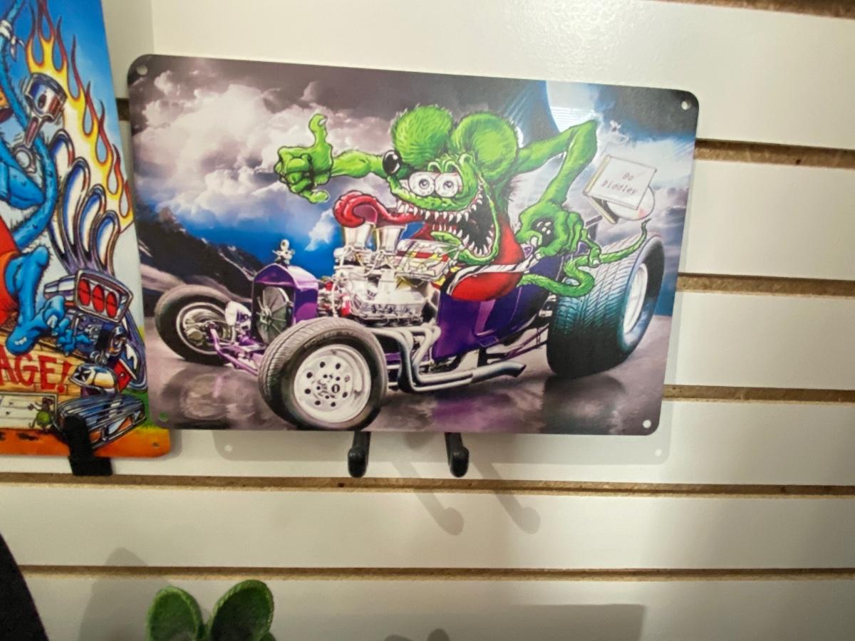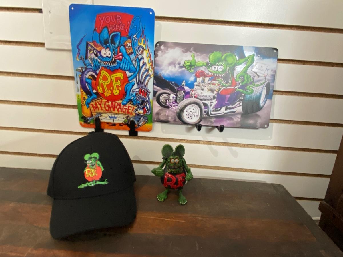 8x12 RAT FINK SIGNS, BALL CAP, AND ACTION FIGURE