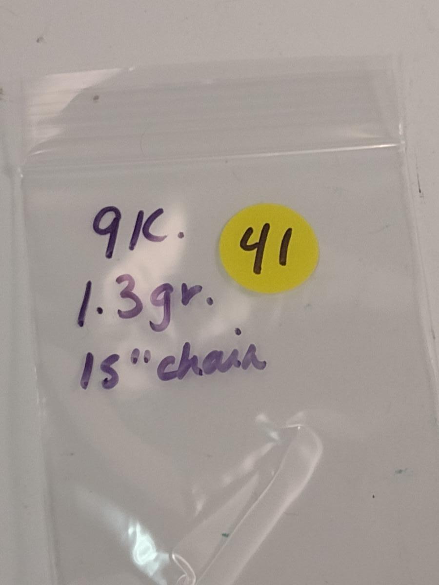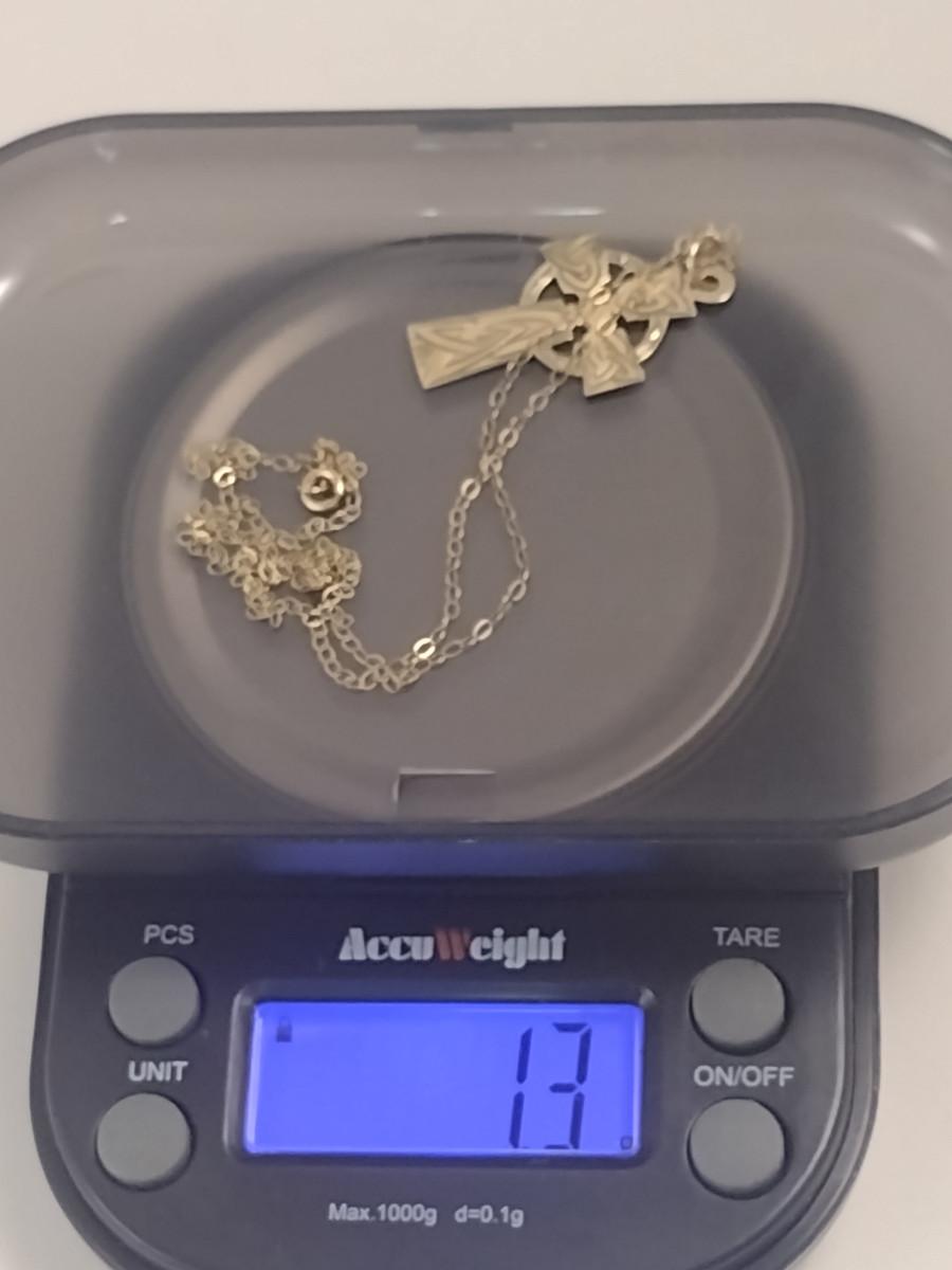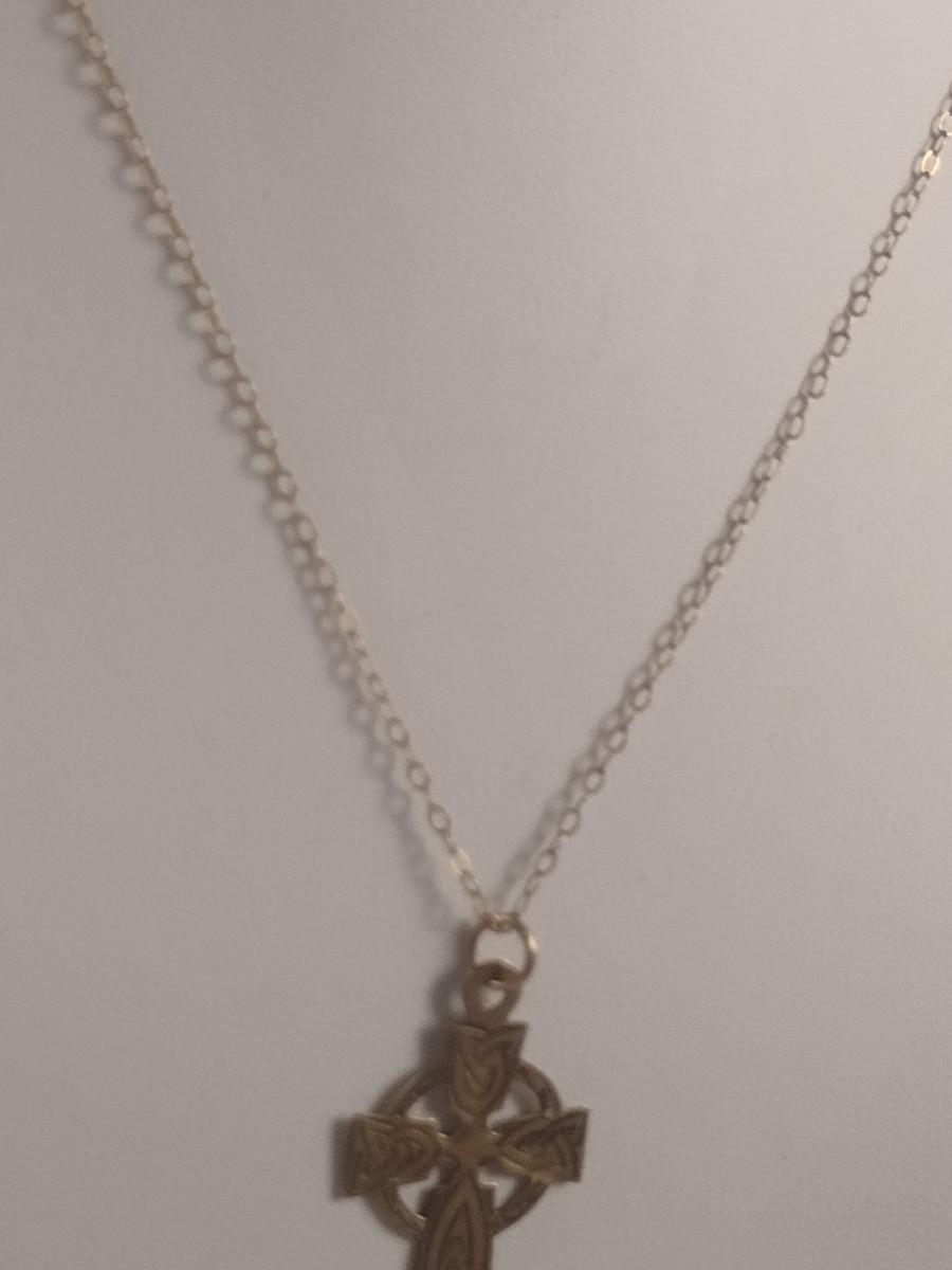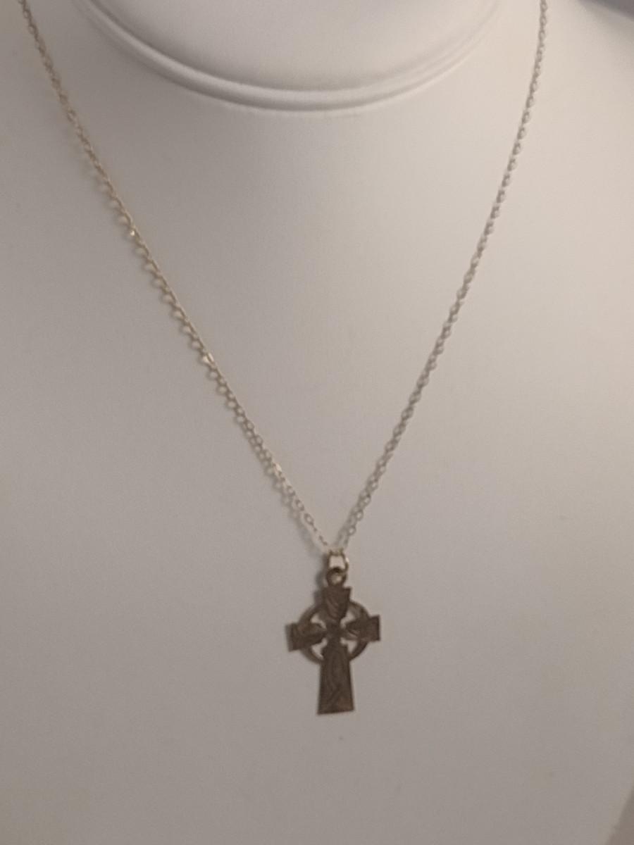 9 Karat Yellow Gold Cross Pendant with 15" Necklace- Approx Total Weight 1.3 Grams (#41)