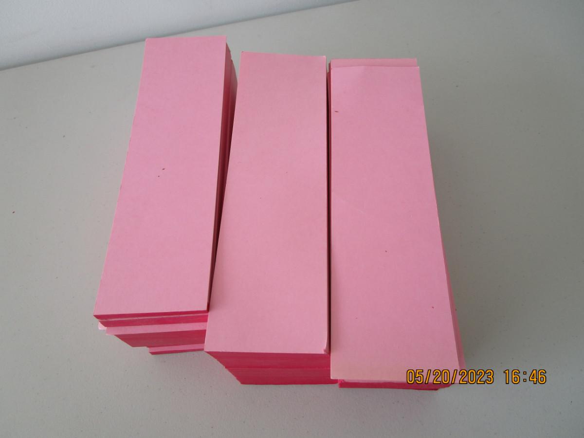 Pink note pads/scratch pads 2.5" x8.5", 8.5" height on all pads together