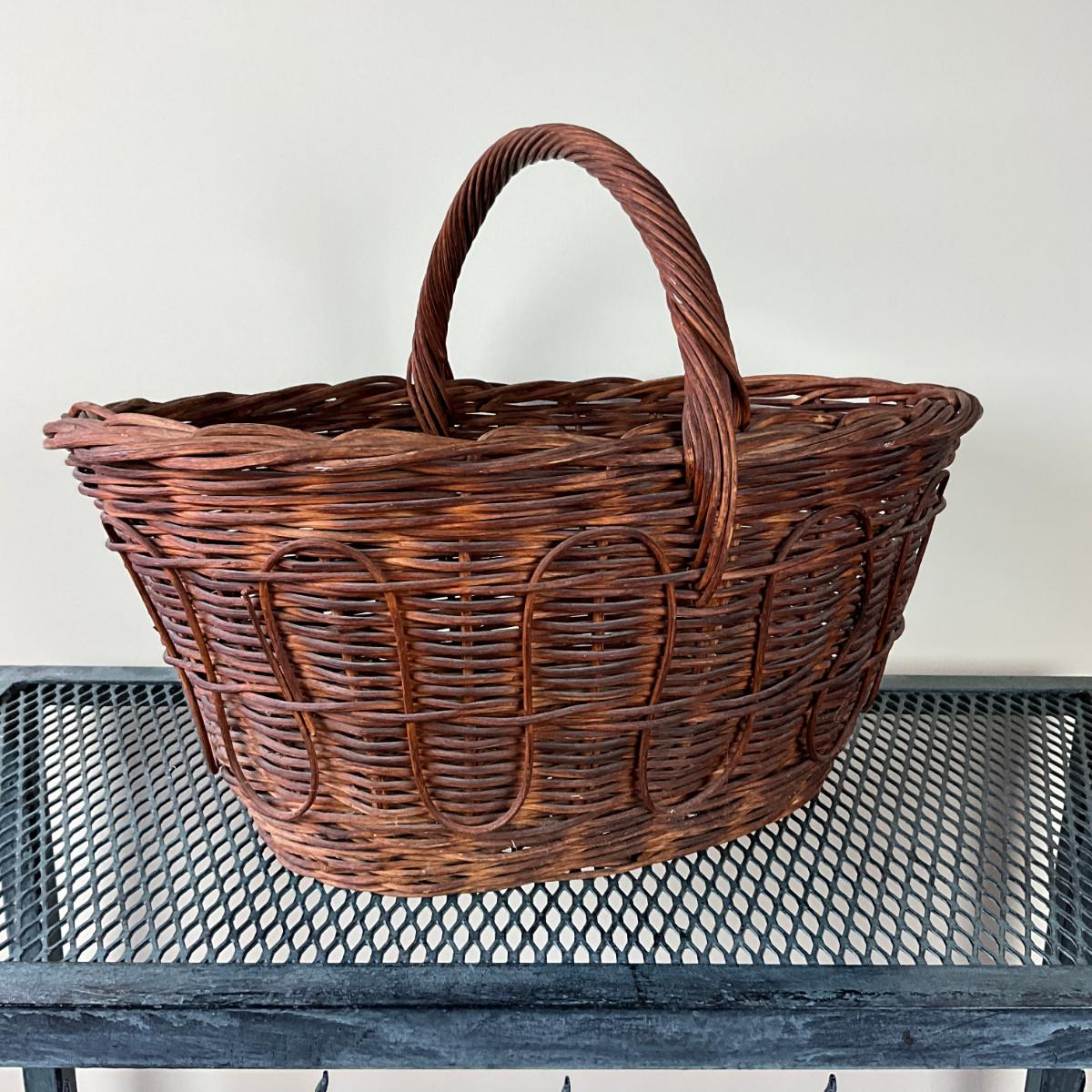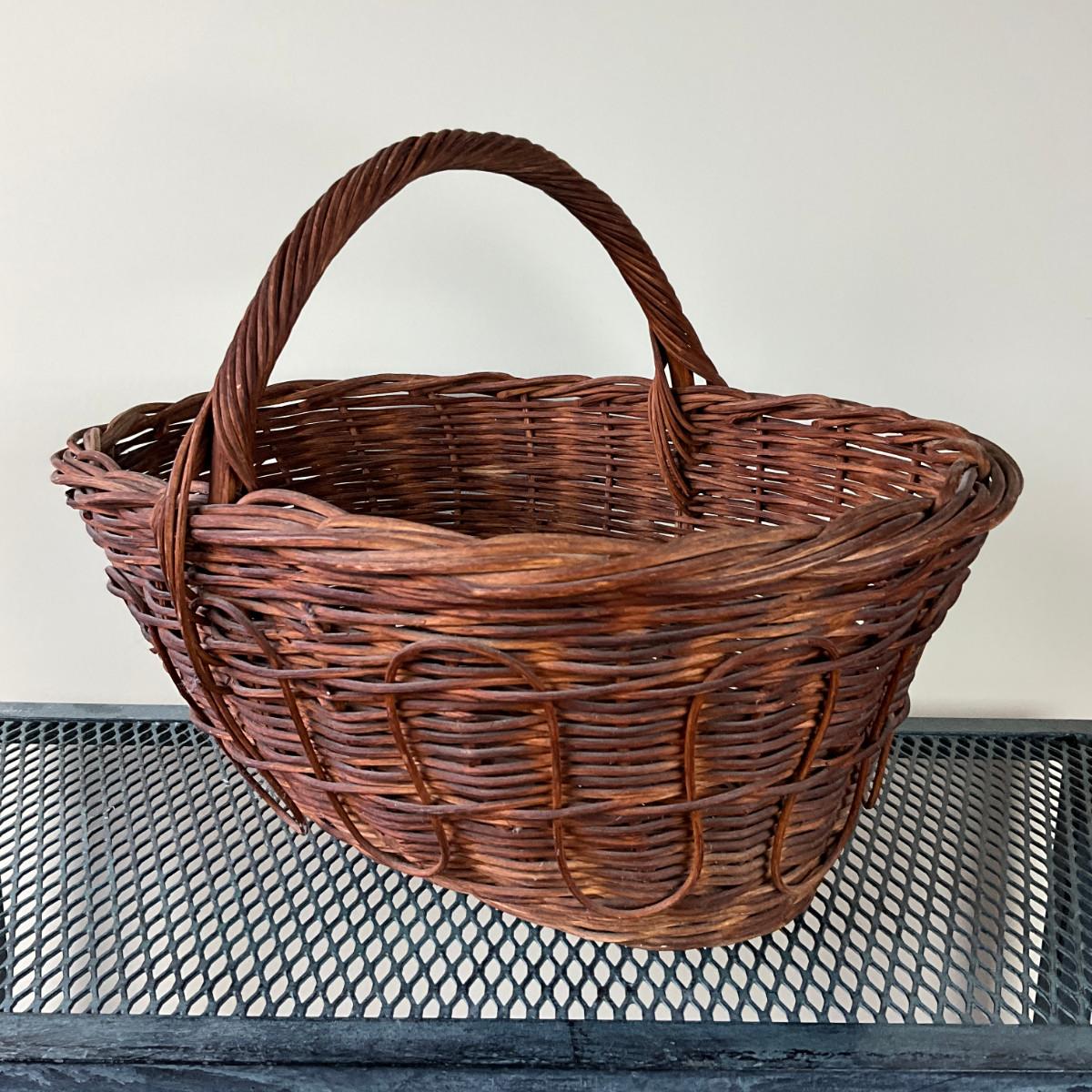 910 Antique Hand-Woven Single Handle Gathering Basket