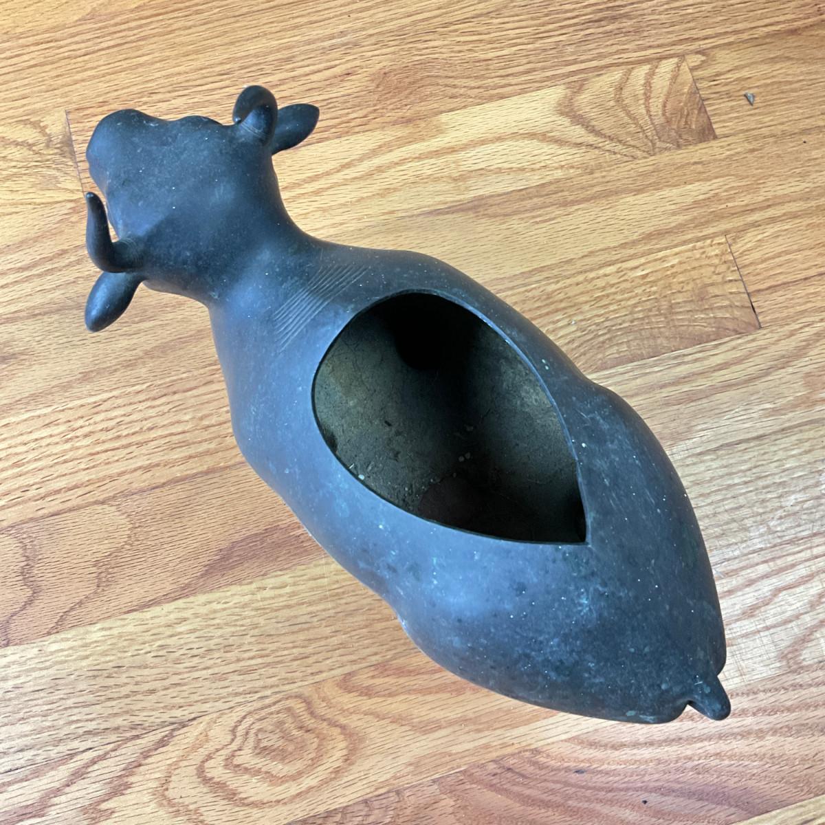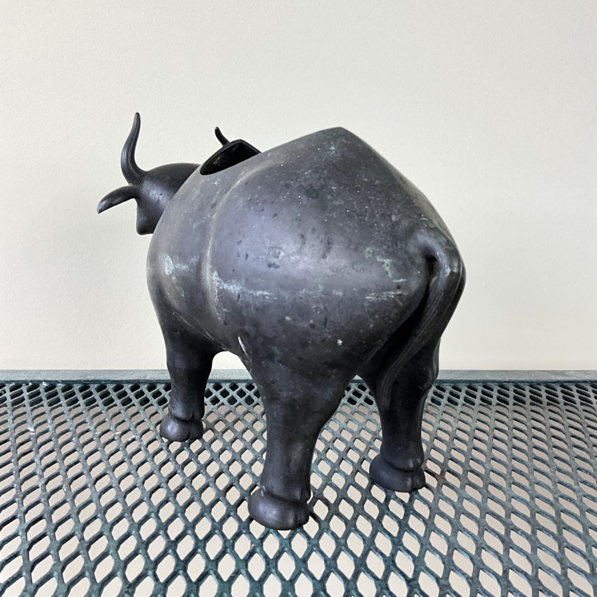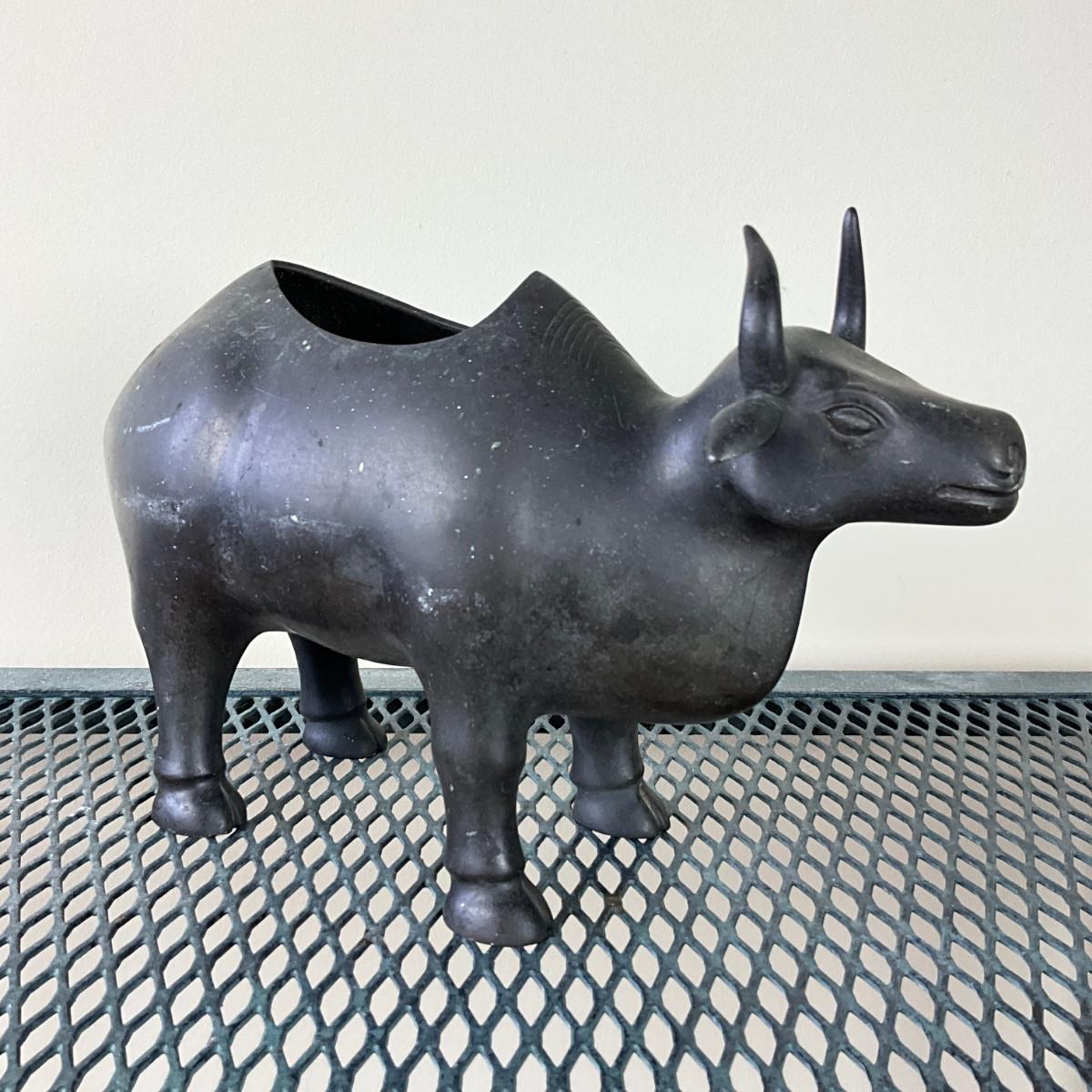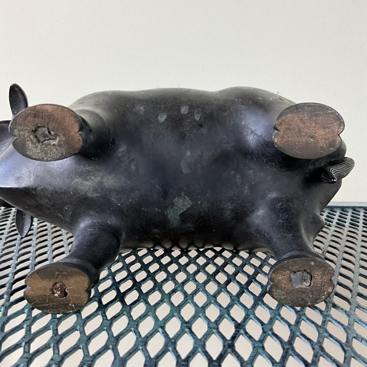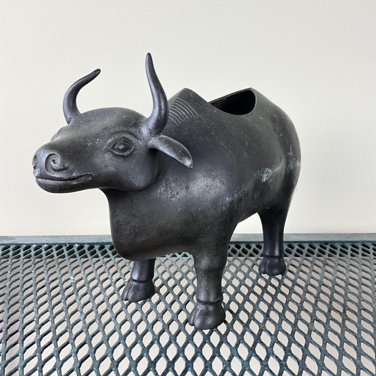 912 Vintage Chinese Bronze Bull Okimono Sculpture / Planter